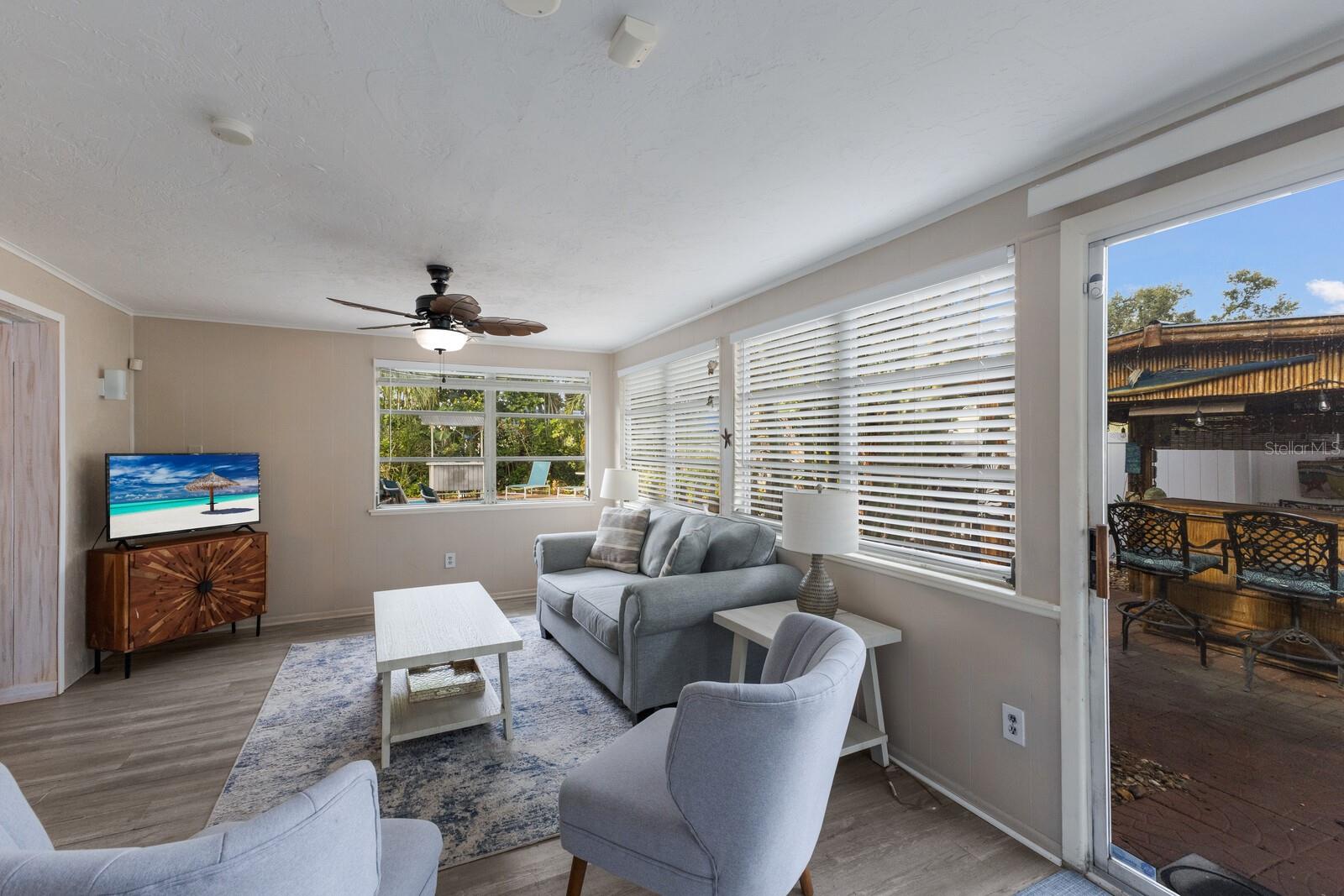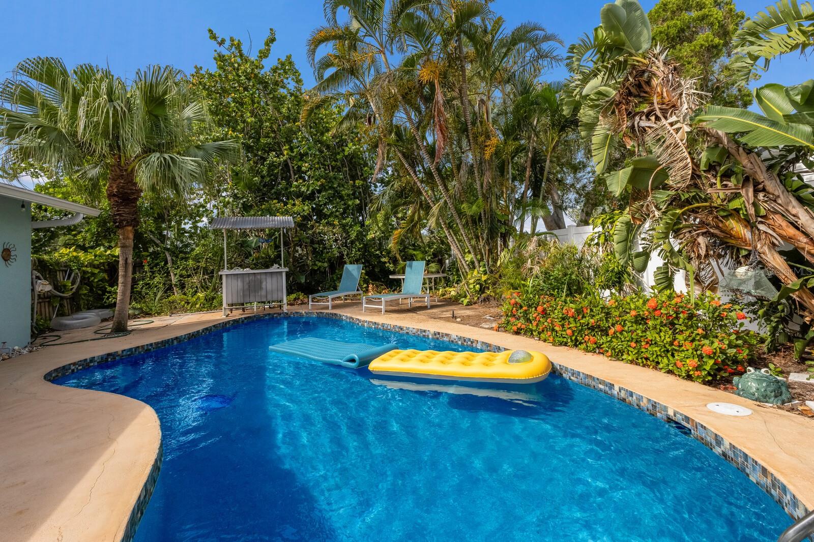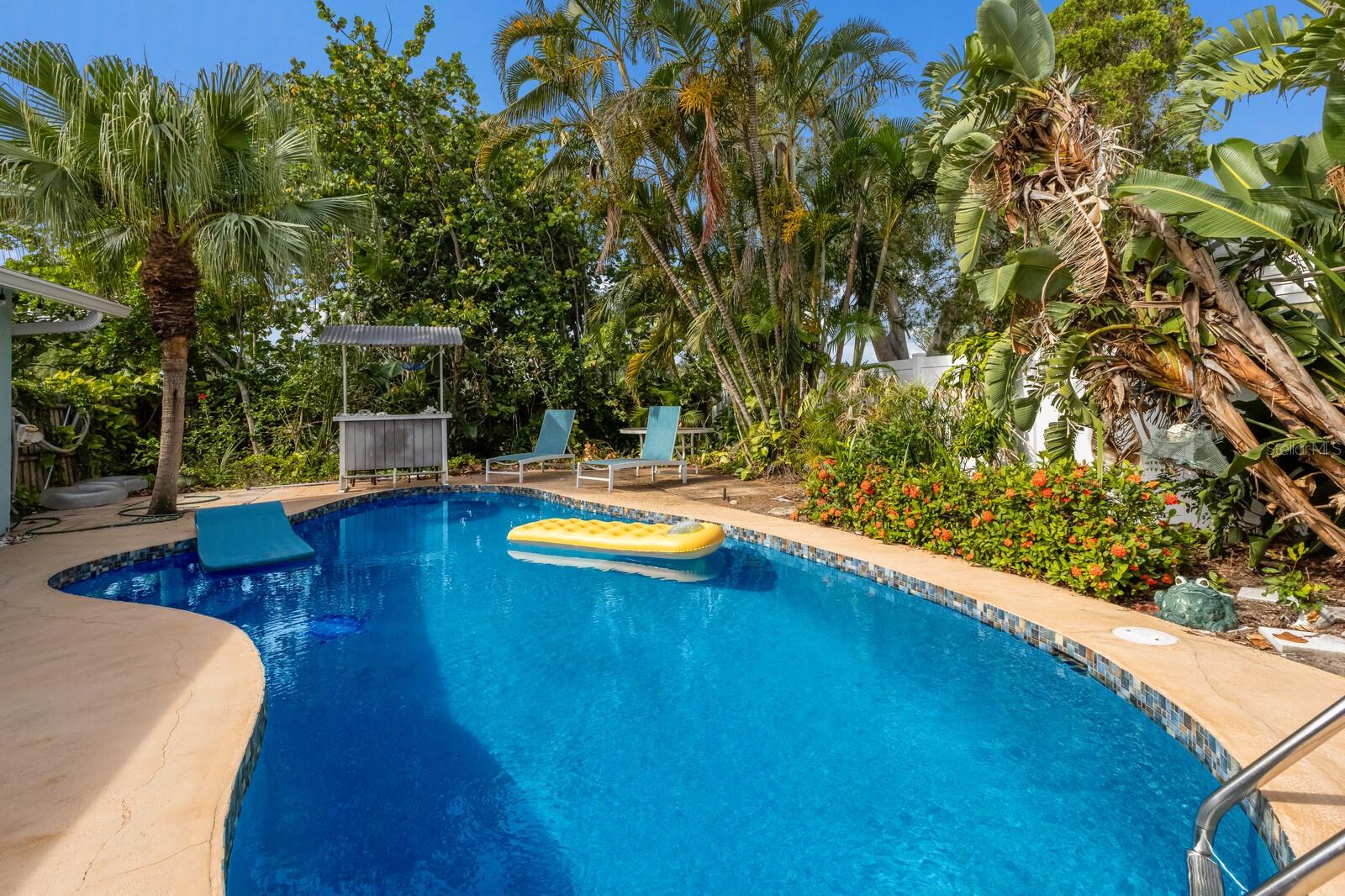 Tropical oasis in West Bradenton. Just around the corner from famous Anna Maria Island, Holmes Beach and only 2.5 miles to the sandy shores of dog-friendly Palma Sola Causeway! Welcome to Serenity by the Sea, an active and successful three-bedroom, two-bath, 1,532-square-foot short-term rental property. Filled with upgrades and coastal charm, it's no wonder this home has been generating rental income annually. Whether you’re seeking a proven investment property or your private Florida escape, this one checks every box. Enter to a bright, coastal-inspired interior, professionally furnished and styled to create a relaxing, vacation-ready atmosphere. Outside, the home transforms into a tropical retreat, featuring a resort-style heated swimming pool with several areas of lounge chairs for soaking up some sun. The pool area is fenced in and surrounded by large mature palm trees, giving you privacy and serenity. Separating the pool area from the separately fenced-in yard is your custom-built tiki bar! The ideal place to get together with friends or family to enjoy the Florida lifestyle all year round. Additionally, the owners have recently completed several large updates to the property for peace of mind as well as long-term value. Some notable recent improvements include a 2024 roof, a 2024 HVAC, a new 2025 electrical panel, recently resurfaced pool with Pebble-Tech, a new pool heater and pump, a new irrigation system, gutters installed around the property, a beautiful new wood privacy fence as well as new flooring in both baths. Around the desirable area of Palma Sola, with no HOA or deed restrictions, you can enjoy complete flexibility, continue operating as a thriving vacation rental or claim it as your sun-soaked getaway. Just minutes from some of Florida's best beaches, shopping, waterfront dining, beachfront horseback riding, historical downtown Bradenton and several world-class hospitals, this home has it all.