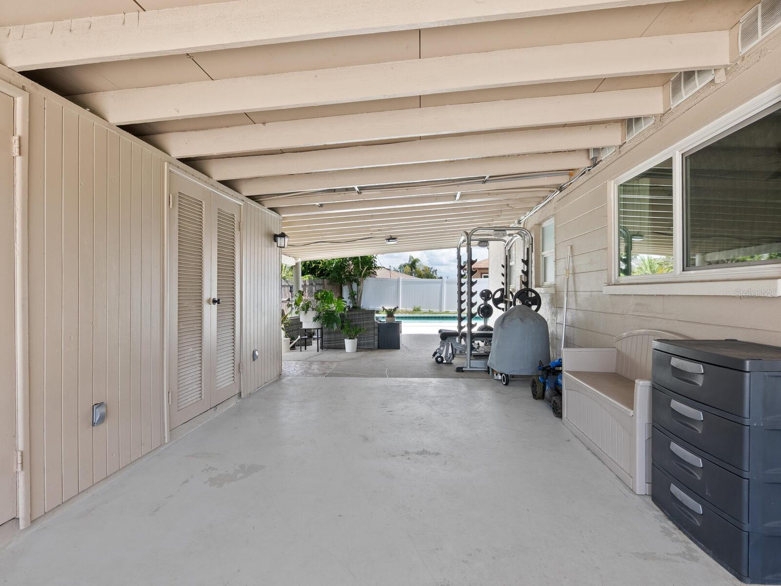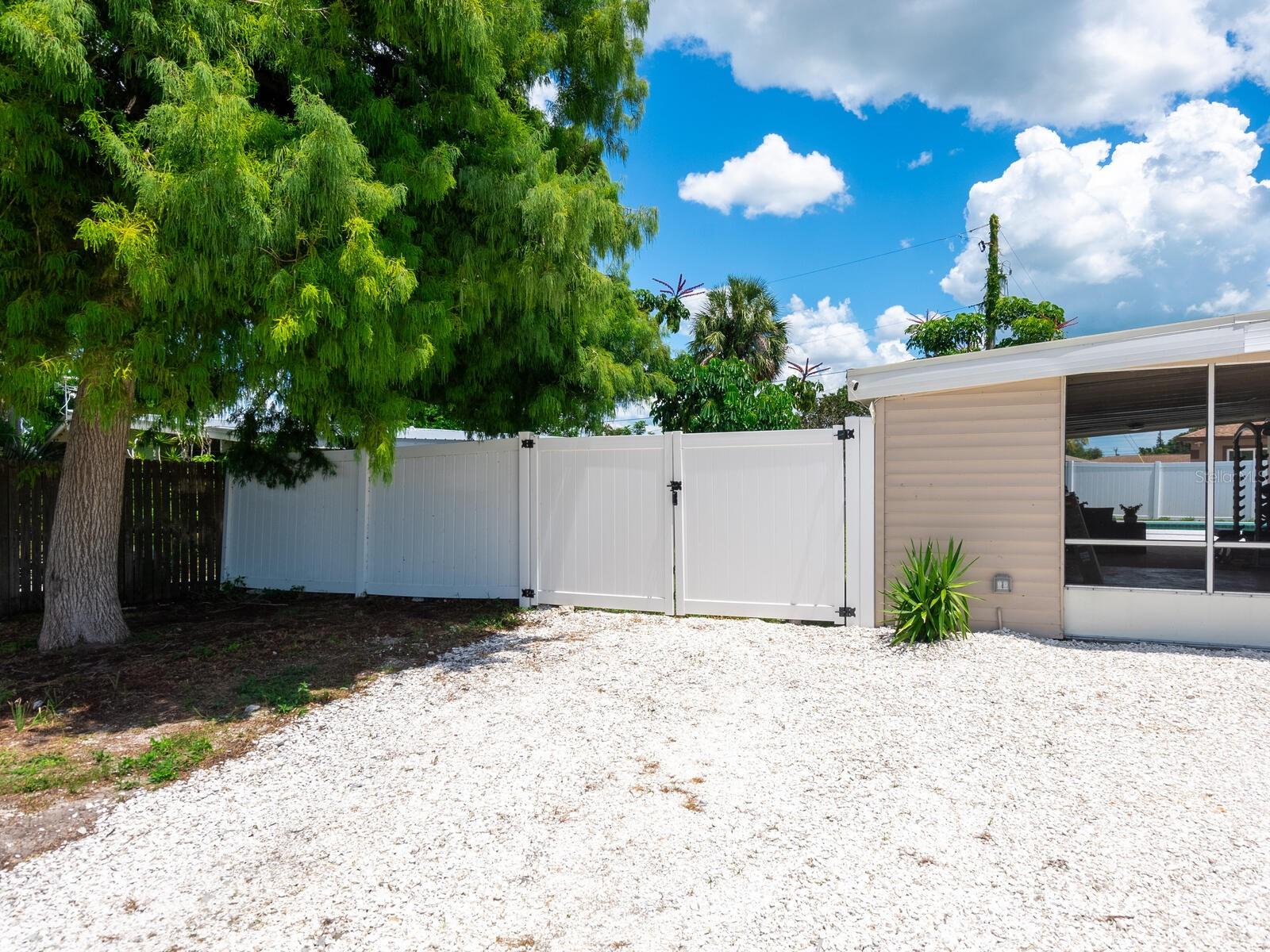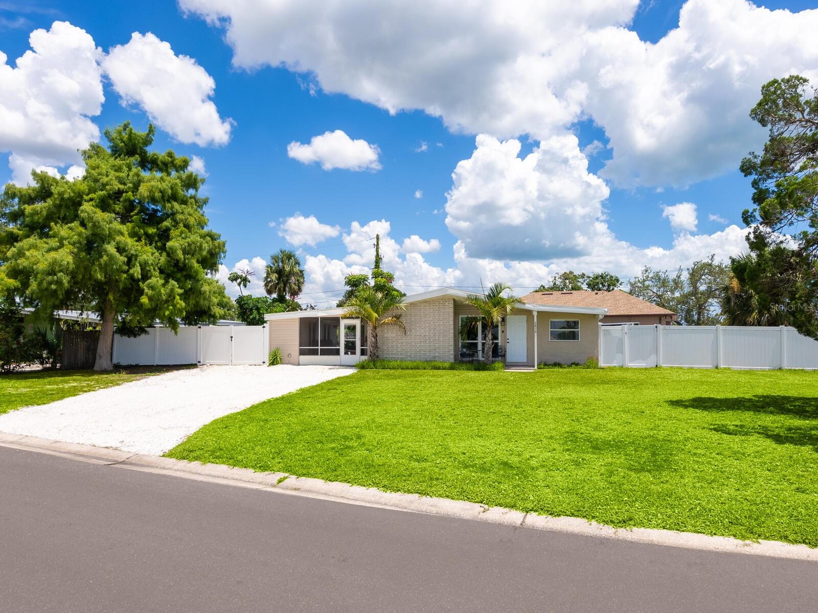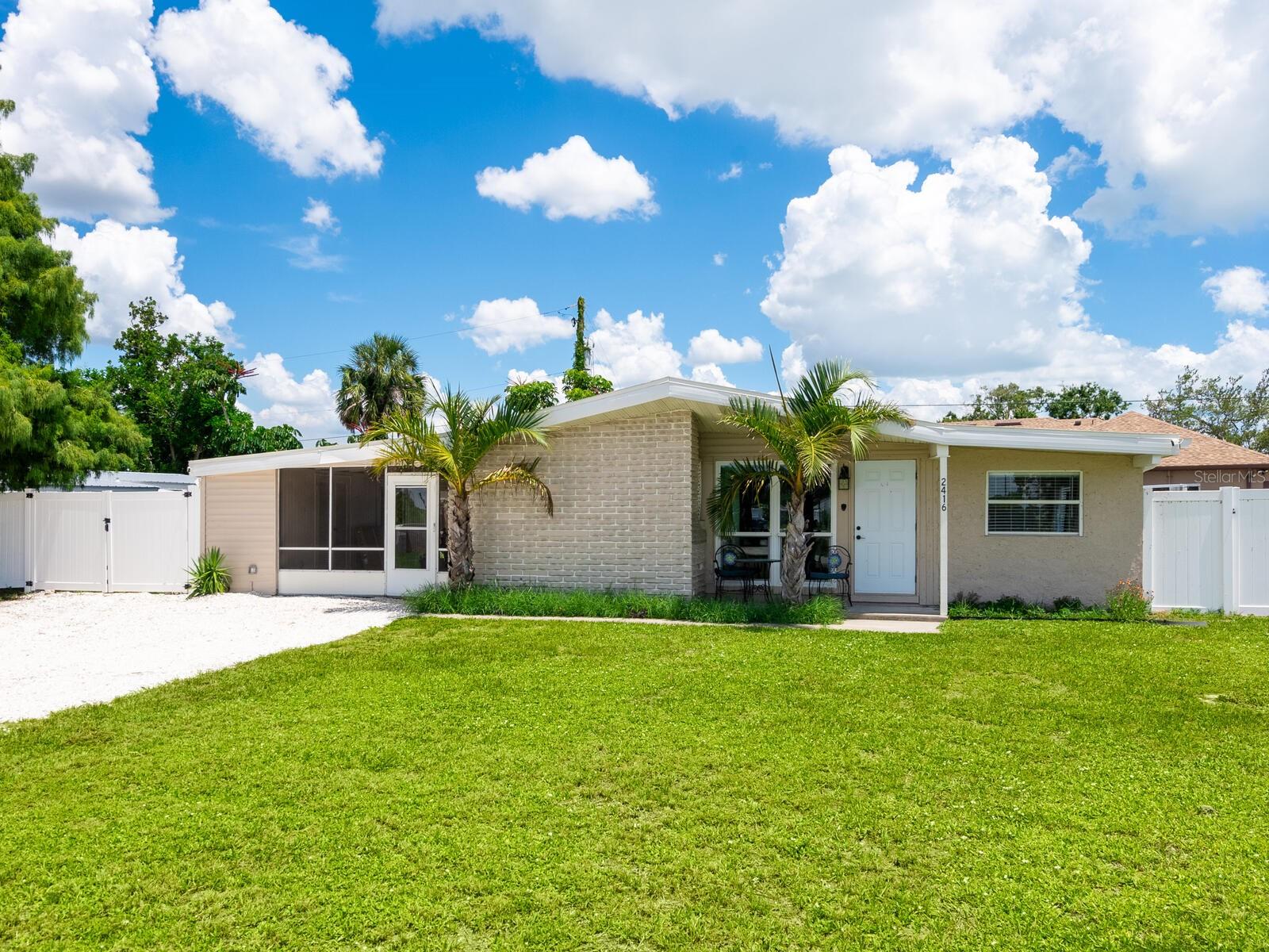 This Beautifully updated 3-bedroom, 1.5-bath saltwater POOL home blends modern aesthetics with classic Bayshore Gardens character and is located on a corner lot. Bring your RV... Bring your Boat... No rules against parking them on your lot! Originally built in 1958, the home has been fully renovated from floor to ceiling while maintaining its solid construction and charm. The sellers have recently installed new windows, freshly painted and prepared the home to be move in ready for the new home owners. Enjoy outdoor living with a covered seating area, outdoor shower, fenced yard, and newly landscaped grounds. Double-gate access makes it easy to park a boat or RV, and there's ample additional parking on a wide shell driveway. The home also features epoxy flooring throughout, hurricane shutters, and multiple outdoor storage areas. An extra bonus room at the back of the home, with its own private entrance, is currently used for storage but offers great potential. It could be converted into a home office, guest suite, or expanded into a full bath and walk-in closet to create a private en suite for the primary bedroom. Bayshore Gardens Residents have access to a wide range of amenities including a Jr. Olympic-size swimming pool, clubhouse, playground, basketball courts, baseball field, pickleball courts, marina, private boat ramp, fishing pier and grilling/picnic area. With NO HOA or NO CDD fees and no requirement for flood insurance, this property is a smart investment. Come see it today
