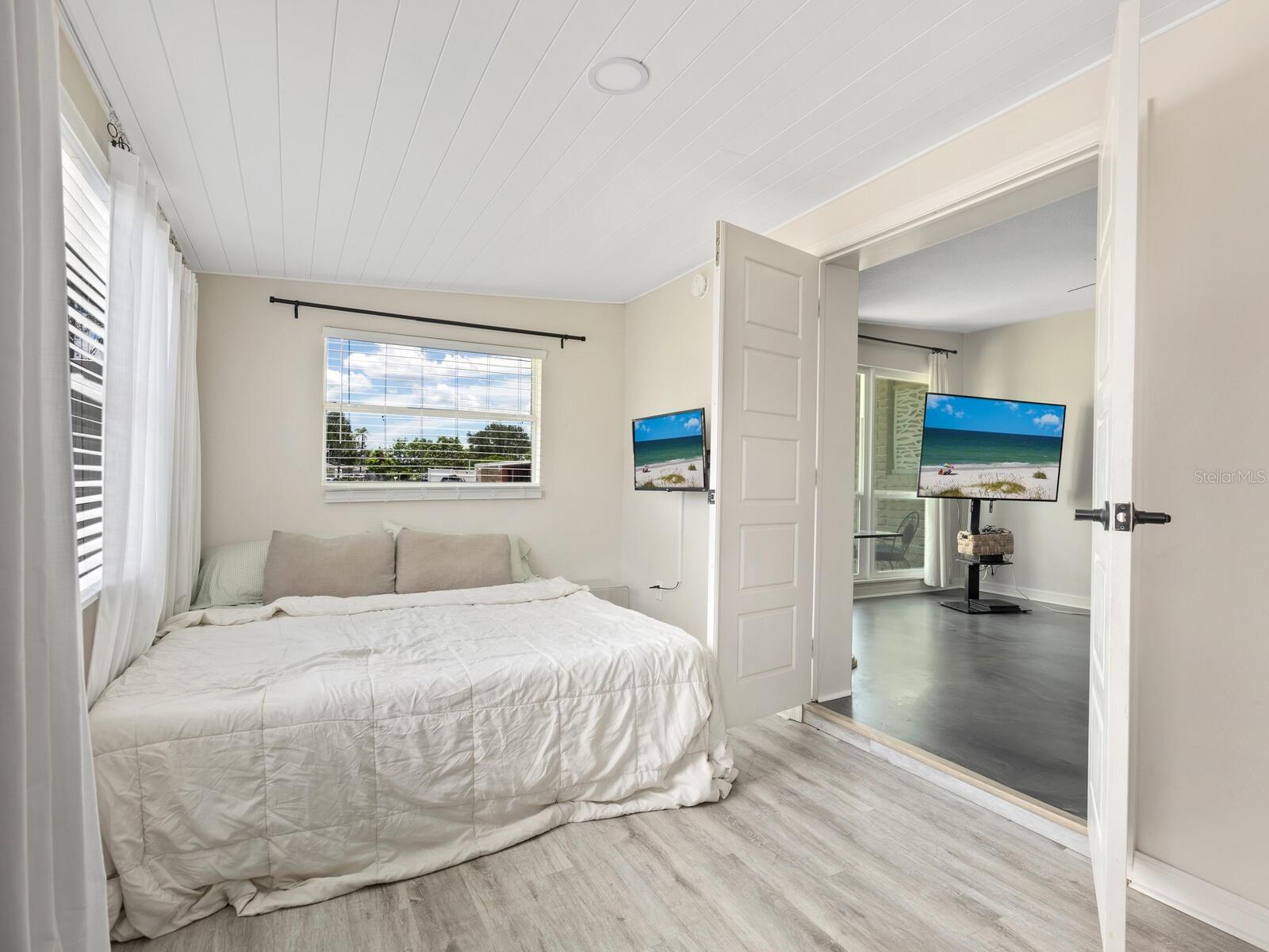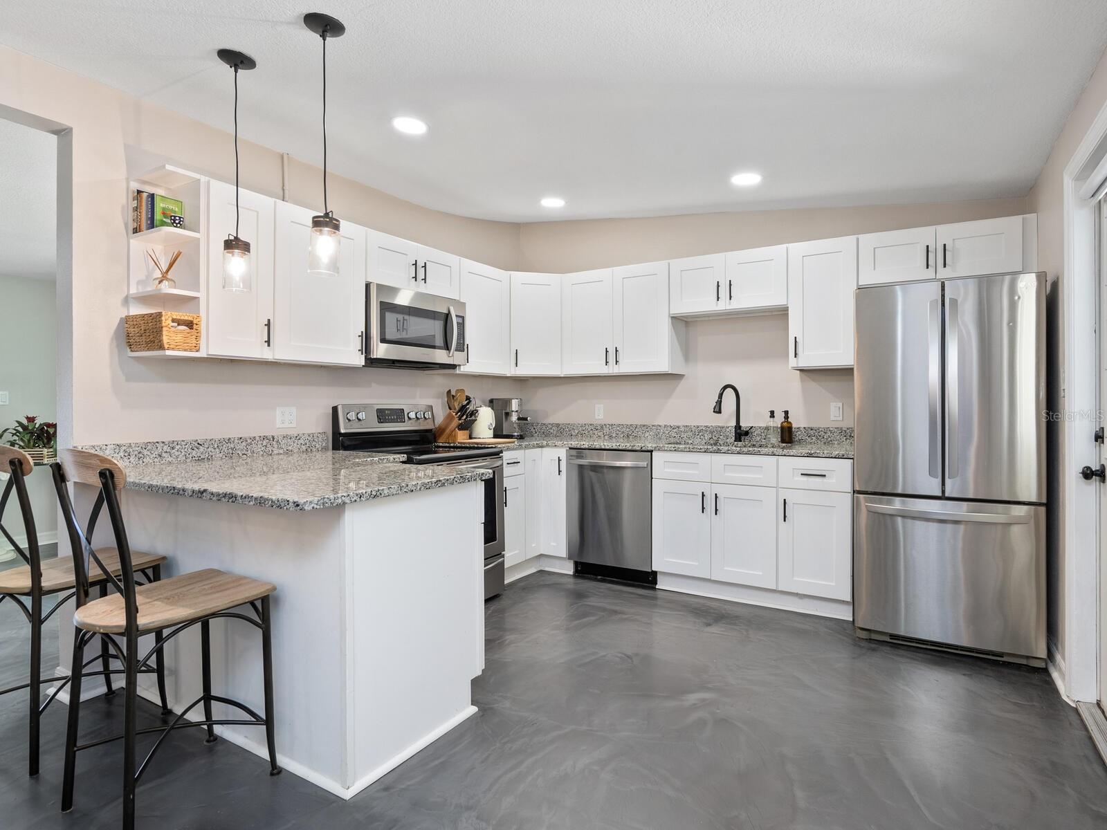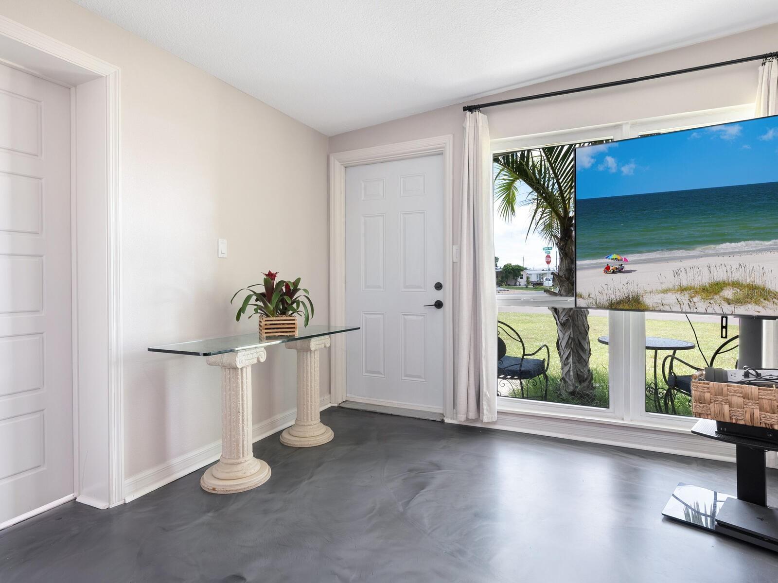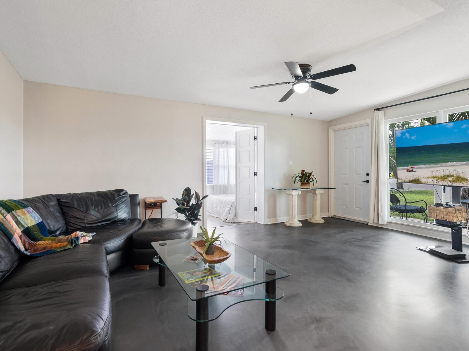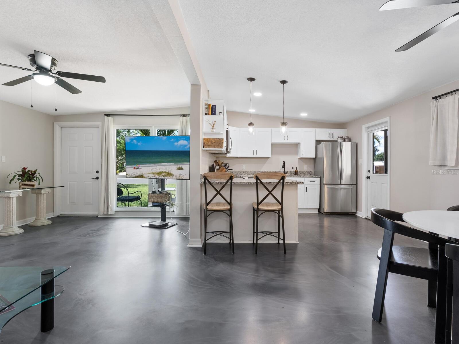 This Beautifully updated 3-bedroom, 1.5-bath saltwater POOL home blends modern aesthetics with classic Bayshore Gardens character and is located on a corner lot. Bring your RV... Bring your Boat... No rules against parking them on your lot! Originally built in 1958, the home has been fully renovated from floor to ceiling while maintaining its solid construction and charm. The sellers have recently installed new windows, freshly painted and prepared the home to be move in ready for the new home owners. Enjoy outdoor living with a covered seating area, outdoor shower, fenced yard, and newly landscaped grounds. Double-gate access makes it easy to park a boat or RV, and there's ample additional parking on a wide shell driveway. The home also features epoxy flooring throughout, hurricane shutters, and multiple outdoor storage areas. An extra bonus room at the back of the home, with its own private entrance, is currently used for storage but offers great potential. It could be converted into a home office, guest suite, or expanded into a full bath and walk-in closet to create a private en suite for the primary bedroom. Bayshore Gardens Residents have access to a wide range of amenities including a Jr. Olympic-size swimming pool, clubhouse, playground, basketball courts, baseball field, pickleball courts, marina, private boat ramp, fishing pier and grilling/picnic area. With NO HOA or NO CDD fees and no requirement for flood insurance, this property is a smart investment. Come see it today