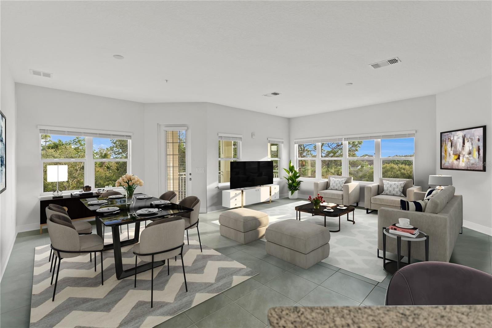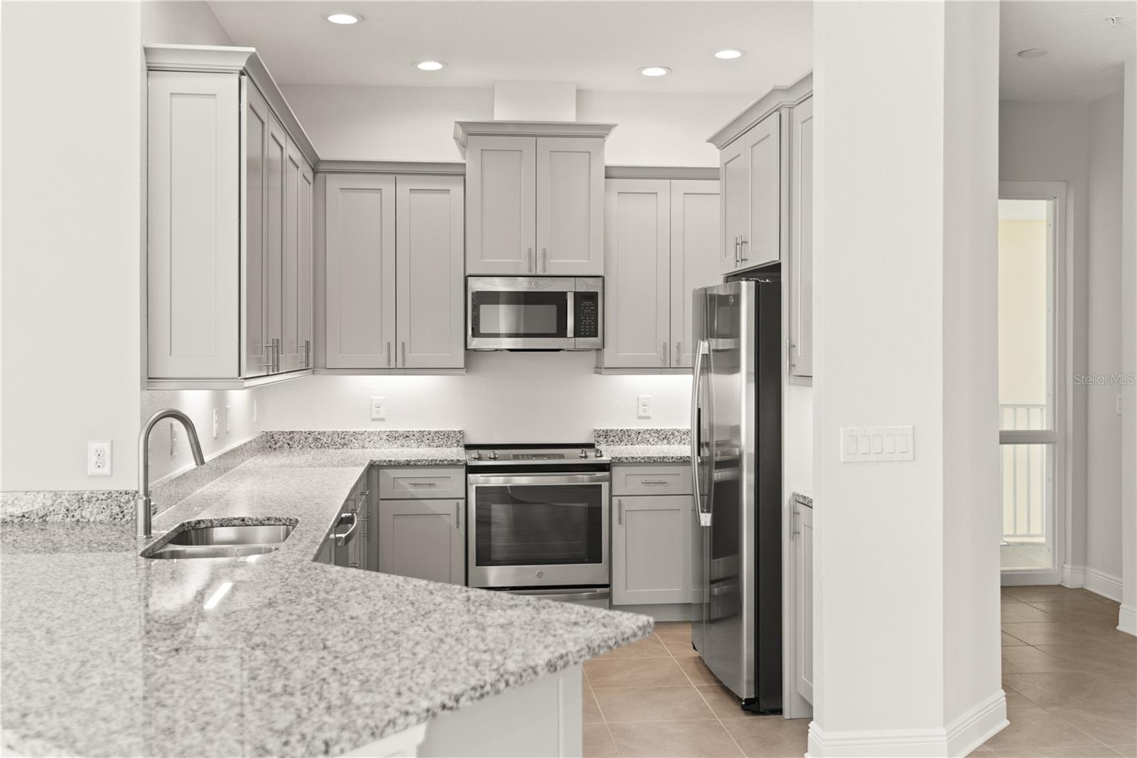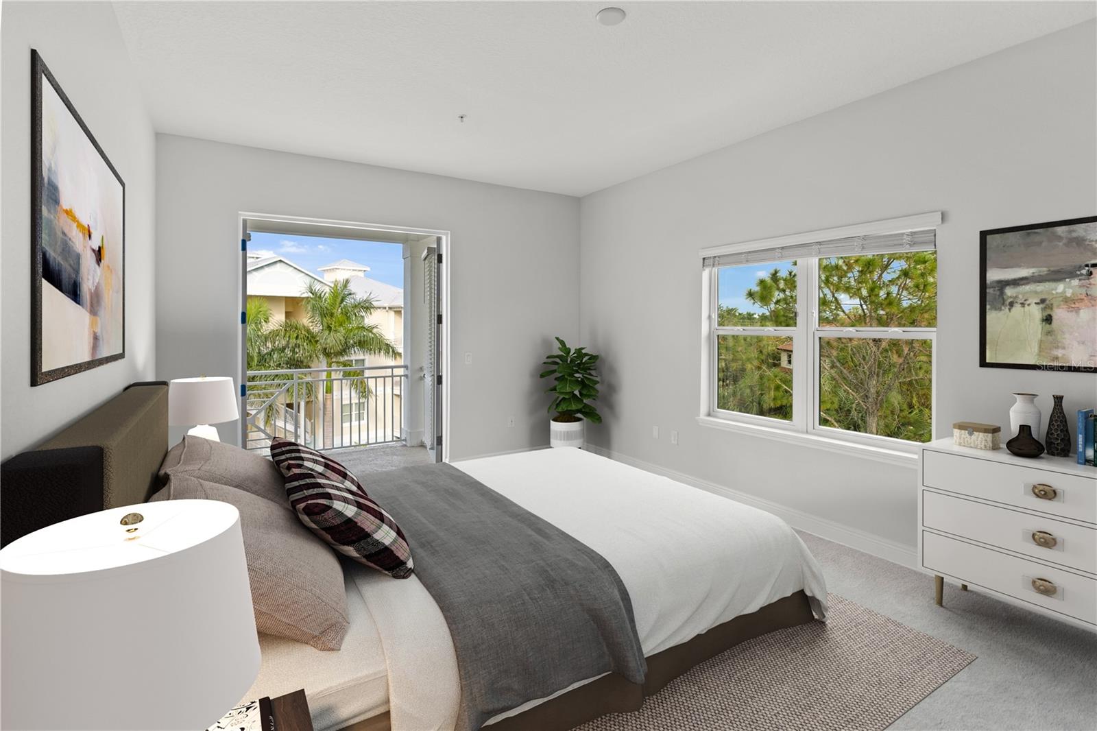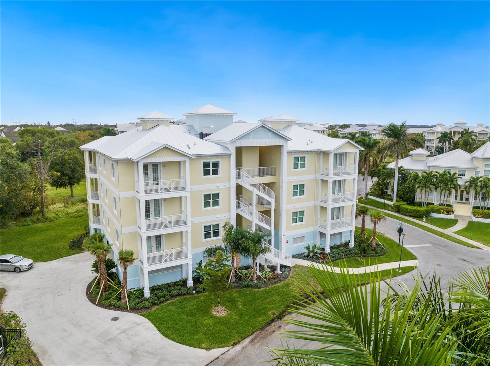 One or more photo(s) was virtually staged. NEW top-floor apartment in gorgeous Palma Sola Bay Club has 3 bedrooms, 2.5 bathrooms, and is full of natural light. 10' ceilings and 8' interior doors, a combination of living and dining rooms with an open kitchen concept, and large windows make the unit spacious and bright. View of the preserve with mature trees from the living room balcony creates a relaxing atmosphere. Primary Suite has a French Door entrance to the balcony to admire southern sunsets or sunrises. Master bathroom with double sinks, bathtub, and shower connected with a walk-in closet. Stainless steel appliances, light grey 42'' cabinets, granite countertops in the kitchen, and a laundry room with a washer and dryer. The building has an elevator and parking under the building with 2 assigned parking spots. The gated Key West-style community offers residents and their guests resort living and is located less than 5 miles from Bradenton Beach and 6.5 miles from famous Anna Maria Beach. Amenities include a heated community pool, fitness center, dog park, clubhouse with a billiard table, social room, and two kitchens. The outside grill area and fire pit are great for enjoying the endless Florida summer. Surrounded by a preserve, Palma Sola Bay Club has a private deck for fishing or kayaking with a breathtaking view of Palma Sola Bay. The West Bradenton area, with multiple dining, shopping, and entertainment options and world-famous sandy beaches, is warmly welcoming new residents!
