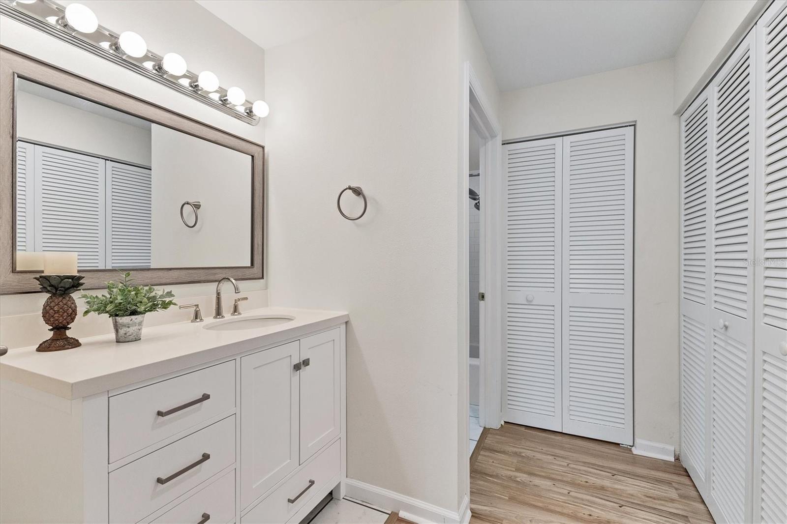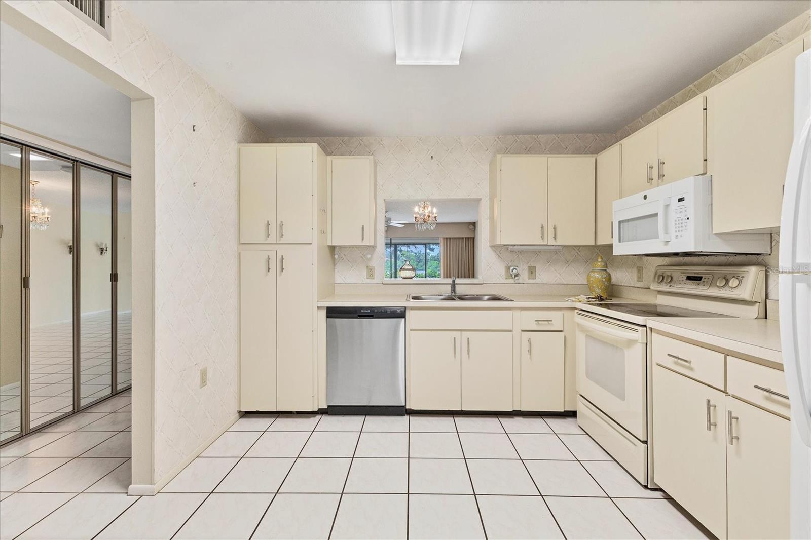 One or more photo(s) has been virtually staged. ITS ALL ABOUT THE VIEW!! Welcome to the beautiful, quiet community of Wildwood Springs and enjoy the lush tropical landscaping of this 88 acre bird and wildlife sanctuary with your own piece of paradise. As you approach the entrance, you'll notice the pretty courtyard with colorful plants. This community offers lifestyle living with resort style amenities including pools, hot tubs, tennis and pickleball courts and great areas for walking or bicycling. This two bedroom, two bath ground floor condo offers a gorgeous view overlooking the lake from the large enclosed lanai. Plenty of storage, tile and laminate flooring throughout, and A/C was installed in Fall 2022. Covered carport parking as well as another assigned parking place and plenty of guest parking for your friends and family. Conveniently located to beaches, restaurants and shopping. Call today for your private showing, you'll be glad you did!