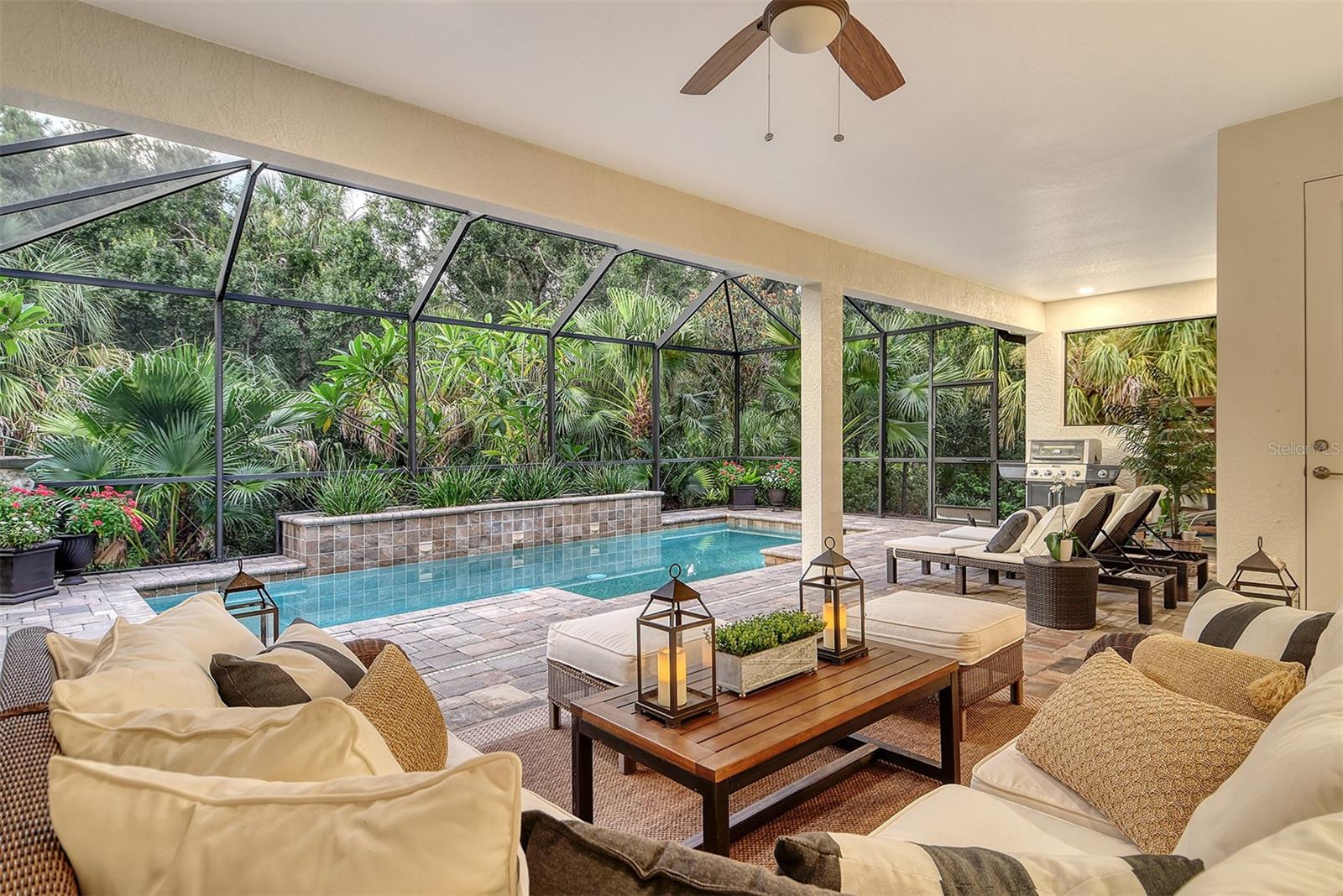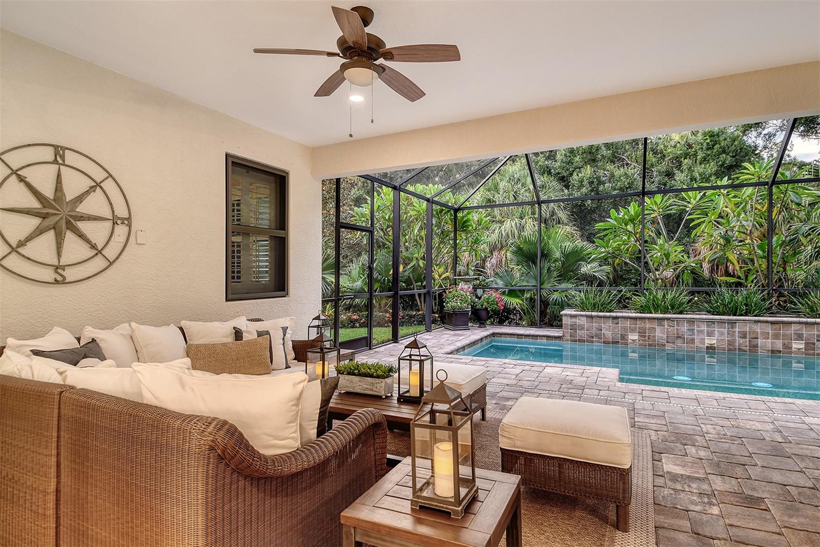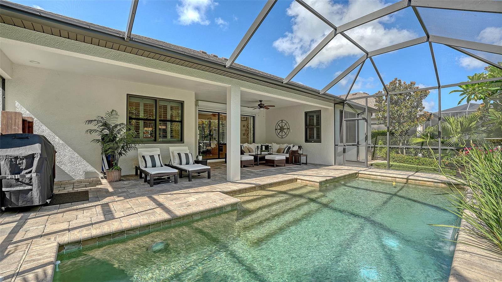 Welcome to perfection in Greyhawk Landing! This breathtaking, meticulously maintained 3-bedroom, 2-bath home with an additional office/den is truly a sanctuary; offering the ultimate in Florida living. From the moment you arrive, you'll be captivated by the lush, upgraded landscaping, elegant curb appeal, and welcoming façade. Step inside, and prepare to be wowed; the open, airy layout, soaring ceilings, and luxurious upgrades create an immediate “wow” factor that only gets better from room to room. Every inch of this home has been thoughtfully designed and lovingly cared for. Featuring tile flooring throughout the main living areas, exquisite light fixtures and fans, stunning coffered ceilings, 8-foot doors, and plantation shutters throughout, no detail has been overlooked. The chef’s kitchen is a true showstopper with GE Café appliances, granite countertops, an enormous center island, expanded cabinetry and storage, a built-in oven, a beautiful gas range, and a wine refrigerator; perfect for entertaining or everyday living. The guest bedrooms are spacious and private, making them ideal for family members or visiting guests. The flexible den/office is a dream space; perfect for working from home, studying, or transforming into a playroom, man cave, or even a cozy she-shed retreat. The oversized laundry room is another fantastic feature, offering plenty of space, storage, and function; a true bonus in a home that already has it all. Retreat to the spa-like primary suite, designed with luxury and serenity in mind. The en-suite bath is simply magnificent, offering high-end finishes and an atmosphere that feels like a private resort. All bathrooms and the kitchen have been remodeled with tasteful, timeless elegance. Step outside into your private outdoor oasis, where a saltwater pool with waterfall feature, full landscape lighting, and peaceful preserve views creates the ideal backdrop for relaxation or entertaining. With no rear neighbors and no neighbors on one side due to the preserve, you’ll enjoy daily wildlife sightings and exceptional privacy. Hurricane protection? Absolutely; with electrical hurricane shutters and hurricane screens, this home provides true peace of mind. Additional highlights include a 3-car garage with epoxy flooring, natural gas appliances, and ample storage throughout. Located in the highly sought-after gated community of Greyhawk Landing, residents enjoy resort-style amenities including two resort-style pools with splash pad, a fitness center, clubhouse with social events, tennis and pickleball courts, basketball courts, two playgrounds, soccer and baseball fields, miles of walking/biking trails, lakes, a fishing dock, and a dog park; all for only $70/year in HOA fees! Just minutes from Lakewood Ranch, downtown Sarasota, SRQ Airport, I-75, and the world-famous beaches of the Gulf Coast, this home offers the perfect blend of luxury, comfort, convenience, and lifestyle. This is more than a home; it’s a lifestyle. A rare opportunity to own a slice of paradise in one of the area’s most desirable communities. Schedule your private tour today before it’s gone!