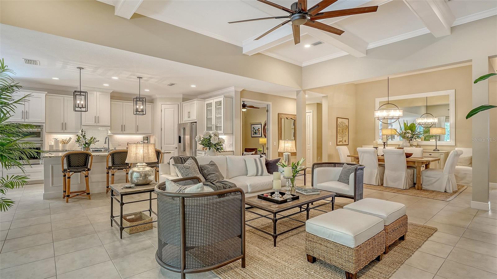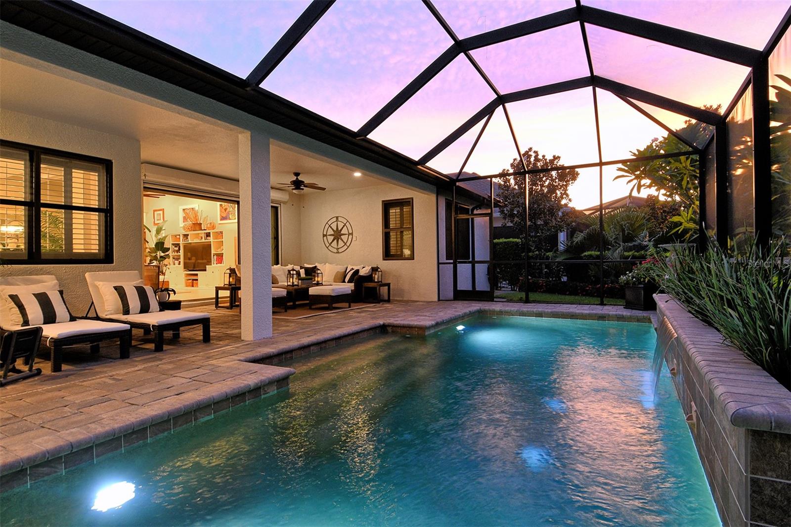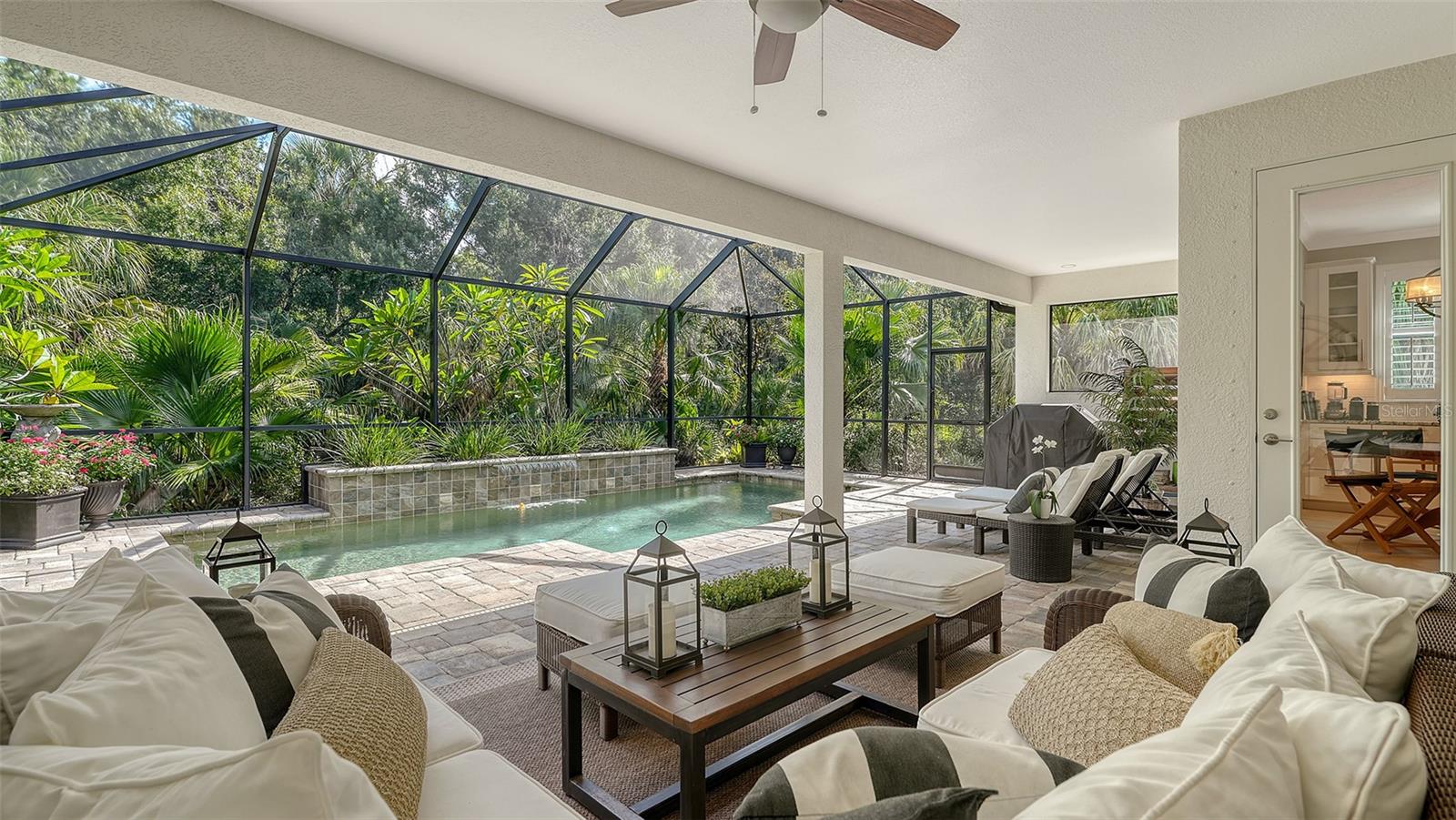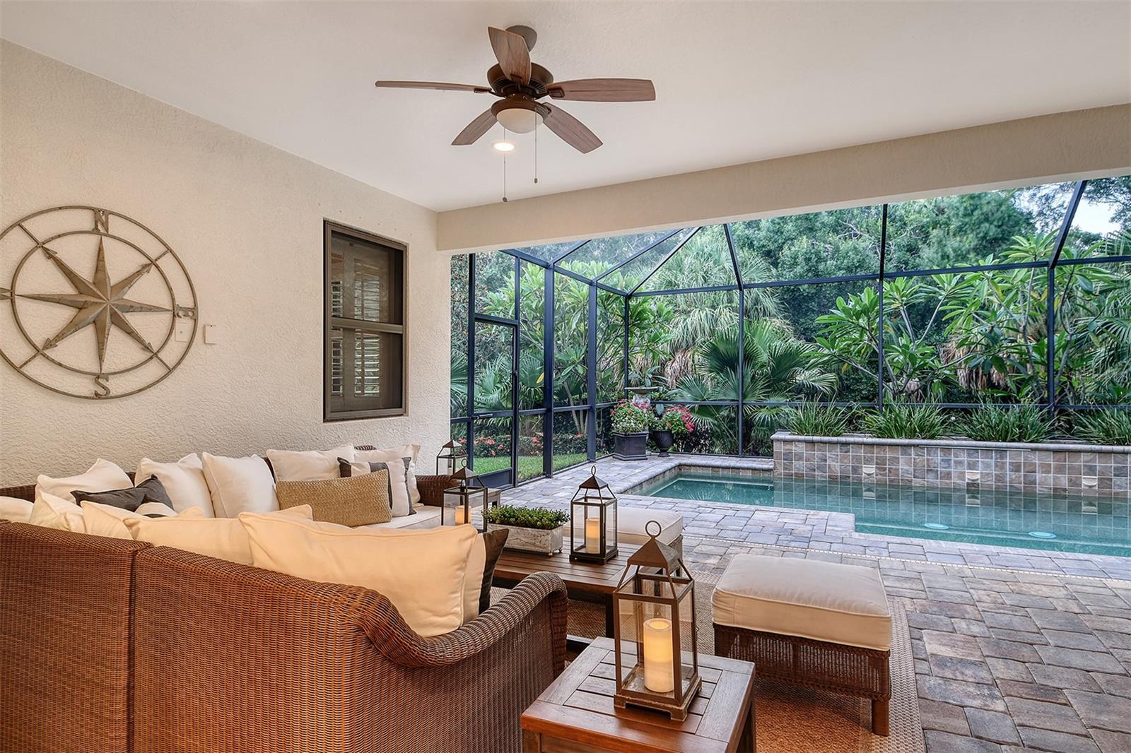 Welcome to perfection in Greyhawk Landing! This breathtaking, meticulously maintained 3-bedroom, 2-bath home with an additional office/den is truly a sanctuary; offering the ultimate in Florida living. From the moment you arrive, you'll be captivated by the lush, upgraded landscaping, elegant curb appeal, and welcoming façade. Step inside, and prepare to be wowed; the open, airy layout, soaring ceilings, and luxurious upgrades create an immediate “wow” factor that only gets better from room to room. Every inch of this home has been thoughtfully designed and lovingly cared for. Featuring tile flooring throughout the main living areas, exquisite light fixtures and fans, stunning coffered ceilings, 8-foot doors, and plantation shutters throughout, no detail has been overlooked. The chef’s kitchen is a true showstopper with GE Café appliances, granite countertops, an enormous center island, expanded cabinetry and storage, a built-in oven, a beautiful gas range, and a wine refrigerator; perfect for entertaining or everyday living. The guest bedrooms are spacious and private, making them ideal for family members or visiting guests. The flexible den/office is a dream space; perfect for working from home, studying, or transforming into a playroom, man cave, or even a cozy she-shed retreat. The oversized laundry room is another fantastic feature, offering plenty of space, storage, and function; a true bonus in a home that already has it all. Retreat to the spa-like primary suite, designed with luxury and serenity in mind. The en-suite bath is simply magnificent, offering high-end finishes and an atmosphere that feels like a private resort. All bathrooms and the kitchen have been remodeled with tasteful, timeless elegance. Step outside into your private outdoor oasis, where a saltwater pool with waterfall feature, full landscape lighting, and peaceful preserve views creates the ideal backdrop for relaxation or entertaining. With no rear neighbors and no neighbors on one side due to the preserve, you’ll enjoy daily wildlife sightings and exceptional privacy. Hurricane protection? Absolutely; with electrical hurricane shutters and hurricane screens, this home provides true peace of mind. Additional highlights include a 3-car garage with epoxy flooring, natural gas appliances, and ample storage throughout. Located in the highly sought-after gated community of Greyhawk Landing, residents enjoy resort-style amenities including two resort-style pools with splash pad, a fitness center, clubhouse with social events, tennis and pickleball courts, basketball courts, two playgrounds, soccer and baseball fields, miles of walking/biking trails, lakes, a fishing dock, and a dog park; all for only $70/year in HOA fees! Just minutes from Lakewood Ranch, downtown Sarasota, SRQ Airport, I-75, and the world-famous beaches of the Gulf Coast, this home offers the perfect blend of luxury, comfort, convenience, and lifestyle. This is more than a home; it’s a lifestyle. A rare opportunity to own a slice of paradise in one of the area’s most desirable communities. Schedule your private tour today before it’s gone!