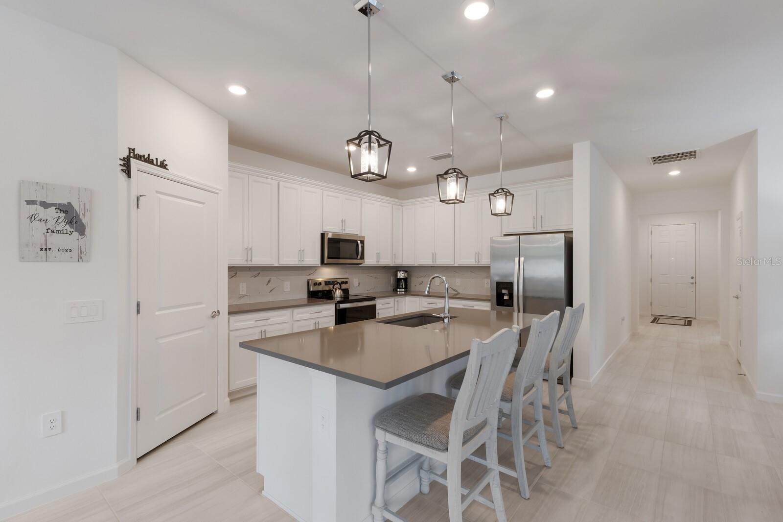 NEW PRICE! And this home offers an assumable VA loan (subject to lender/VA approval). Buyer must qualify. Qualified buyers may benefit from favorable terms compared to today’s market. This beautifully upgraded, move-in ready home is nestled in the desirable gated enclave of Magnolia Ranch, just minutes from Lakewood Ranch and easy access south to Sarasota and north through Parrish to St Pete/Tampa. It will rival any new construction in the area. Meticulously maintained, offering many thoughtful upgrades, including an extended screened paver lanai with a disappearing corner and custom motorized window treatments and three-car tandem garage with epoxy floors. Step inside to find a modern and airy interior featuring light cabinetry, quartz countertops, tile backsplash, stainless steel appliances, and 42" upper cabinets in the kitchen—perfectly designed for both casual dining and entertaining. The large center island provides ample prep space and additional seating, while the adjacent eat-in dining area invites cozy meals with family and friends. Modern tile throughout the main living area, upgraded lighting fixtures, ceiling fans, and window blinds. The recessed walk-in shower and frameless glass door in the primary bath offer a spa-like experience, while the home’s smart features—including a Ring doorbell and programmable lighting—add security and convenience. The floor plan is smart and no wasted space, with an oversized laundry room complete with sink and cabinetry. Tucked beyond the laundry room right outside the garage entry is extra space perfect for a drop zone for bags and shoes. Magnolia Ranch is a low-maintenance, NO CDD community with low HOA fees, and is perfectly positioned for year-round residents, snowbirds, or investors. Enjoy close proximity to world-class beaches, golf, dining, shopping, nature preserves, and vibrant downtown areas.