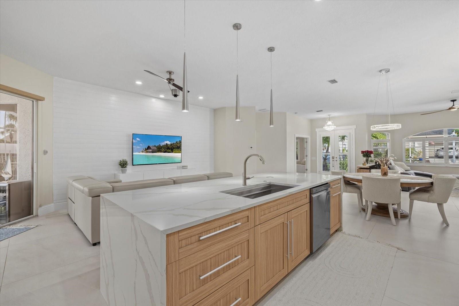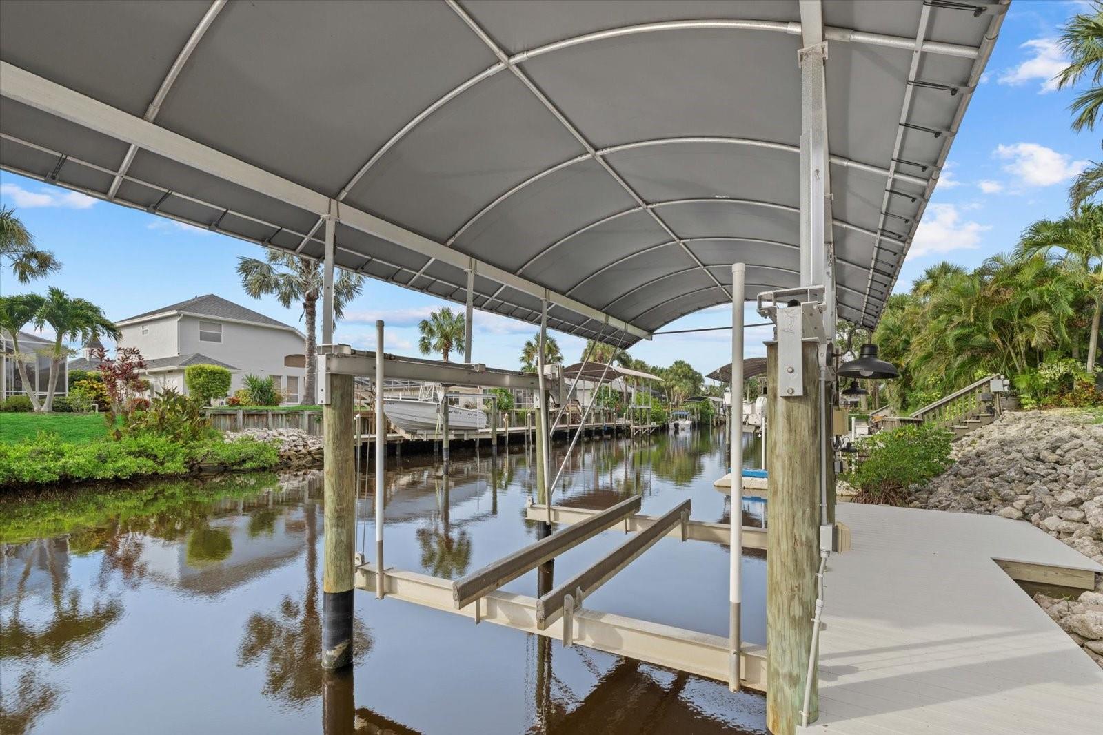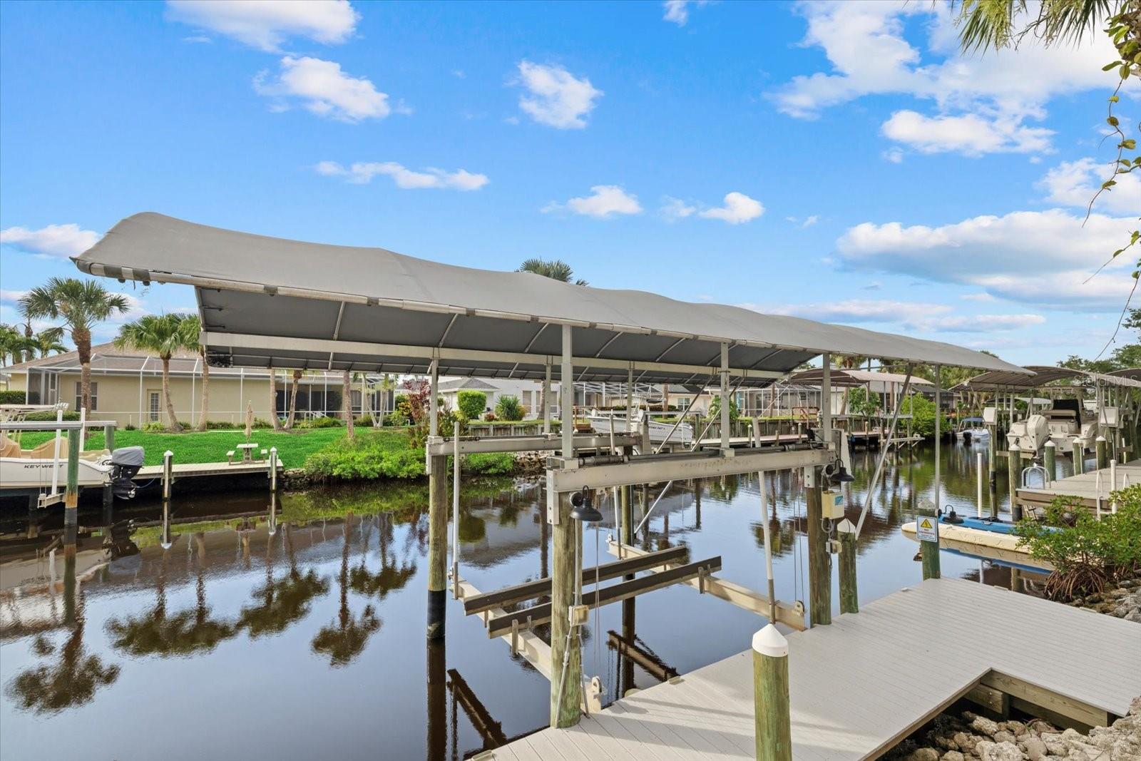 Fully updated waterfront home in Bradenton offering direct Gulf access with no lifts and no locks. Situated on a wide saltwater canal with 75 feet of frontage, this four-bedroom, three-bath pool home features a 2024 chef’s kitchen with quartz countertops, dual-sided island, and walk-in pantry. Interior upgrades include 4’ x 4’ ceramic tile flooring, custom cabinetry, modern bath renovations with quartz surfaces and TOTO bidet toilets, plus California Closets for optimized storage. Outdoor living is highlighted by a new composite dock (2024) with cable handrails, a 10,000-pound covered boat lift with 36x13 canopy, and a screen-enclosed pool and lanai. Additional enhancements include a new HVAC system (2023), pool pump and filter (2024), and roof (2017). Exterior improvements such as widened paver driveway and walkways complete this move-in ready coastal residence. With modern finishes, updated systems, and seamless boating access to the Manatee River and Gulf of Mexico, 4611 Shark Drive is a rare opportunity for buyers seeking a waterfront lifestyle in one of Bradenton’s premier boating communities.