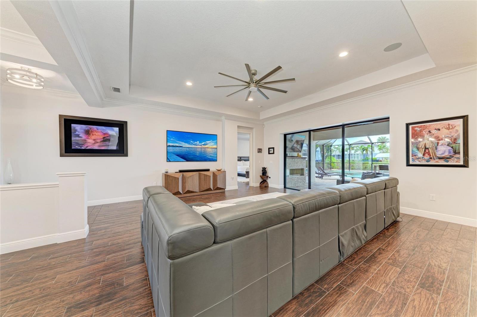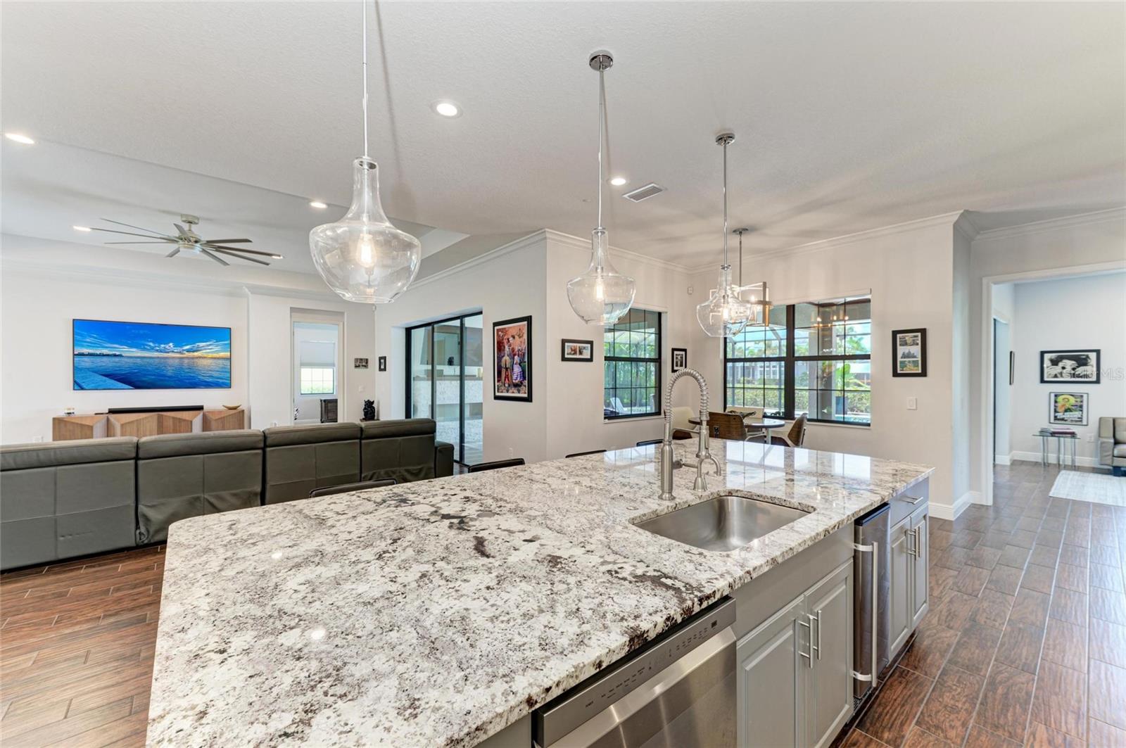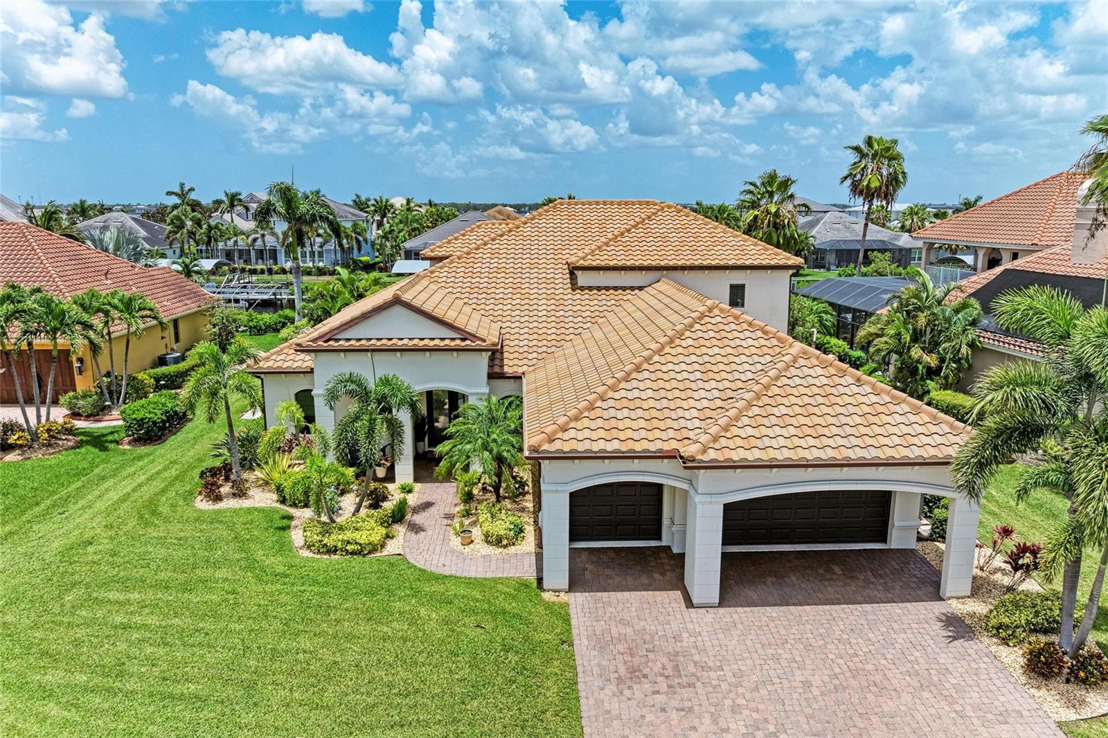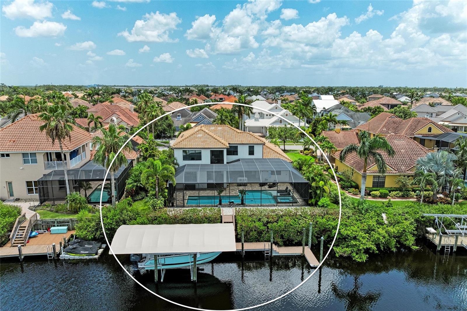 Welcome to this coastal contemporary masterpiece in the gated waterfront community of Harbour Walk at The Inlets. This meticulously maintained and extensively upgraded home offers the ultimate in Florida luxury living. The deep saltwater canal has direct (no-lock) access to the Manatee River, Tampa Bay, and the Gulf. Spanning nearly 3,900 sq ft, this custom-designed residence boasts extensive remodeling, including a stunning primary ensuite bathroom and a chef-inspired kitchen with updated appliances, built-in refrigerator, double ovens, an oversized island, and a generous walk-in pantry ideal for entertaining and everyday living. The open-concept layout features a spacious great room and dining area with breathtaking views of the water. The first floor includes the serene primary suite, a den, and a versatile bonus room, offering flexible living spaces. Upstairs, you’ll find three additional bedrooms, including one ensuite, another full bath, and a large bonus room perfect for guests, media, or recreation. Step out onto the private balcony for sweeping views of the canal and the tranquil Florida landscape. Enjoy year-round outdoor living on the expansive covered lanai, featuring a summer kitchen, an oversized heated saltwater pool with a eight-person hot tub, and a no-see-um screened enclosure. Boaters will appreciate the covered boat lift, complete with a composite dock and shore power leading to your next adventure. Watch manatees and fish right from your dock. This home offers the utmost in waterfront living. Additional upgrades and features are available on the feature sheet.