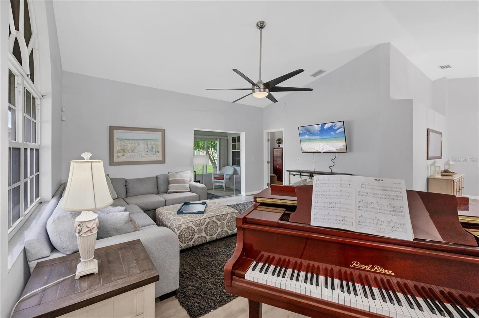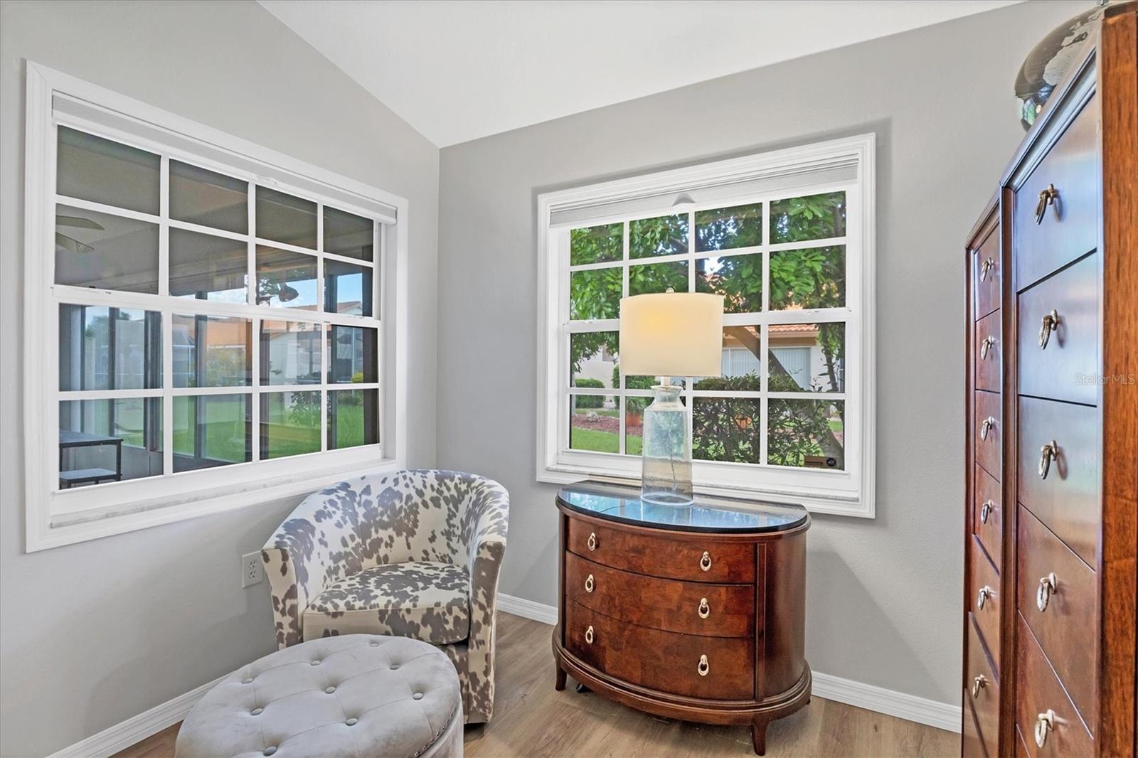 Discover this spacious 1,866 sq ft residence nestled within the highly desirable Peridia Golf & Country Club community. This 2-bedroom, 2-bathroom home features a versatile den/bonus room and an open floor plan designed for comfortable living and effortless entertaining. The dining area seamlessly connects to the living room and bonus space, perfect for hosting gatherings. Bright and inviting, the unit boasts new window treatments and abundant natural light. Expand your living space by opening the sliding glass door to the enclosed patio, or enjoy outdoor grilling on the second patio. Additional highlights include a two-car garage, an eat-in kitchen with ample cabinetry, and convenient access to cable, internet, and lawn maintenance—all included in the HOA fees. Importantly, there are no CDD fees. As part of the community, residents enjoy a golf membership that grants access to tennis, pickleball, a clubhouse for social events, a heated pool, and a tiki bar. The location offers easy proximity to shopping, dining, beautiful sandy beaches, and airports, making this an ideal place to call home.
