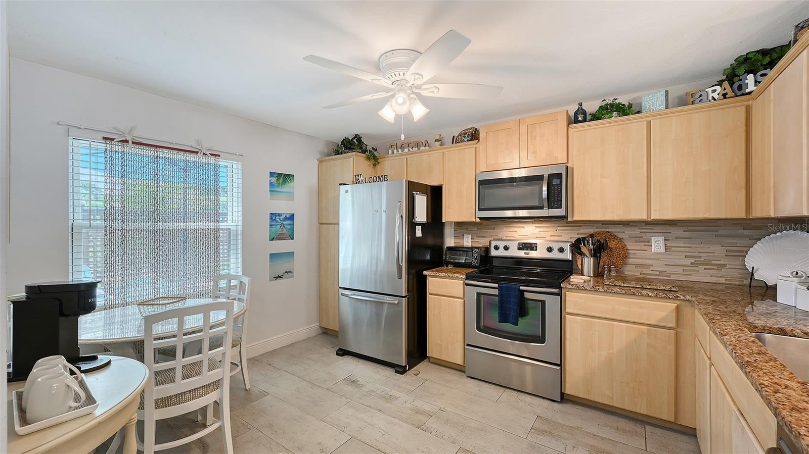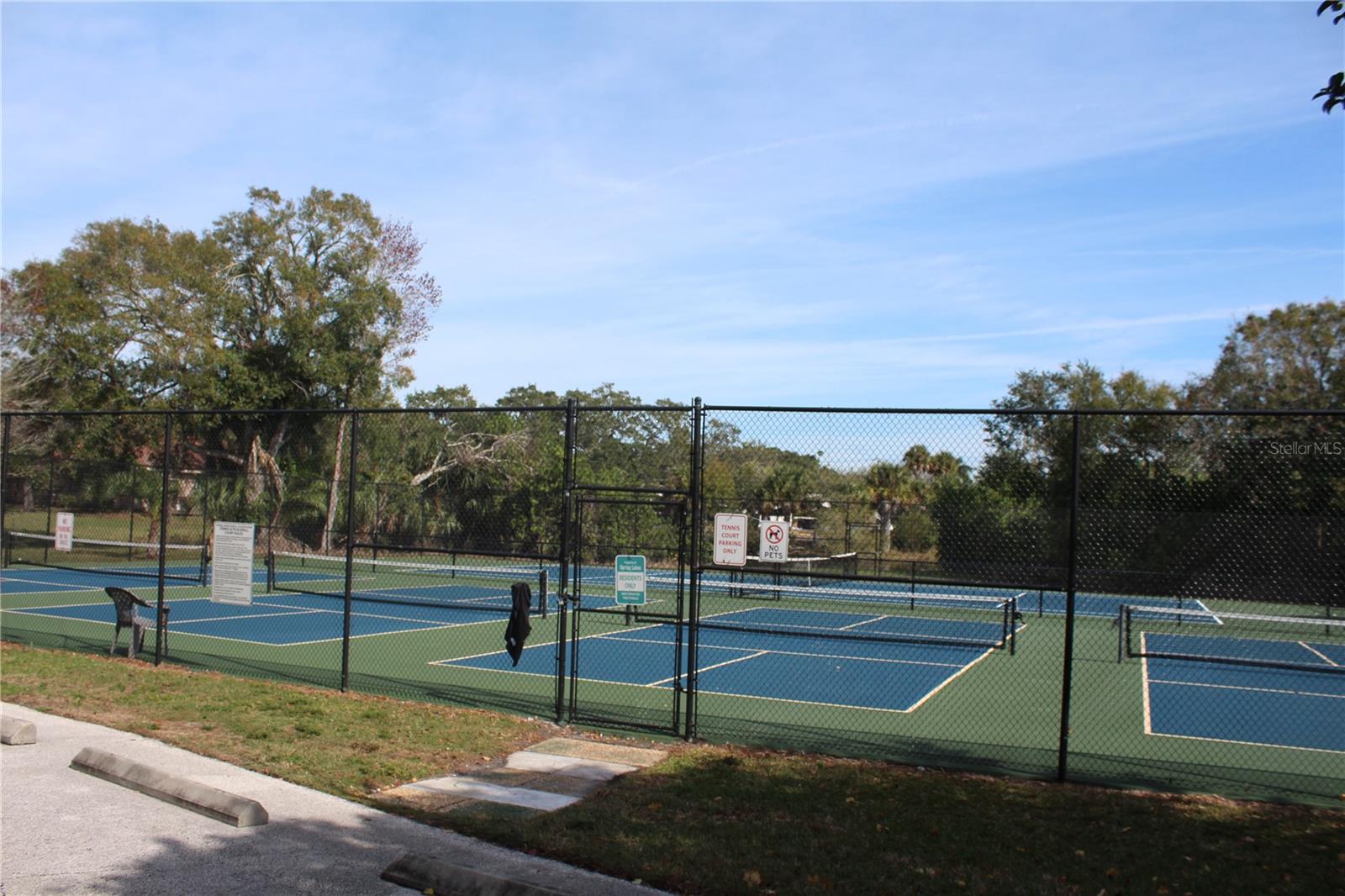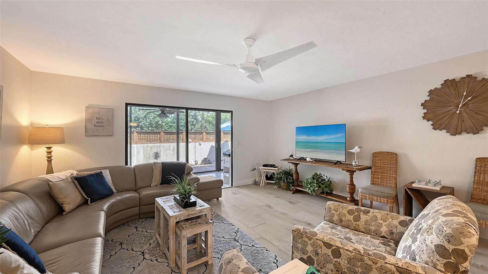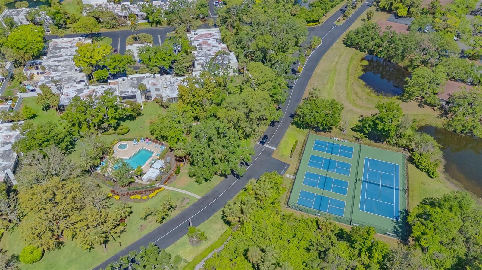 Convenience of a 1st floor corner unit is just the beginning of all the positives this home has to deliver. First, open floor plan with spaciousness, relaxing colors, neutral plank tile flooring throughout, granite counters, stainless steel appliances & location is what Florida comfort living is all about! Starting with the large open eat in kitchen, complete with a new hurricane window, which looks out to your front walkway & private front patio. Large floor to ceiling pantry & numerous cabinets for the gourmets' essentials, in addition to a generous amount of counter space for food prep & entertaining. Right off the kitchen, is a large laundry closet with storage cabinets up above & a newer full-size washer & dryer. Within the open kitchen is counter area for bar stool gatherings & meals, then onto the dining area & living room. The large, enclosed lanai is directly off of the living room. This area has a wall of sliders with screens to enjoy the fall/winter breezes. There is also a large storage closet, right within the lanai. Perfect spot for your bicycles, beach gear, holiday items & general storage, yes, it's that big! Beyond the lanai is an enclosed 3/4 wall, just high enough for privacy but low enough to see over. There's also a door for easy access for a quick walk to the tennis/pickle ball courts. Once back inside, there is also a slider to your sizeable primary bedroom. The elation that comes with this room is the dual sink vanity with the commode & tub area just beyond & separated by a pocket door for privacy. Also within this area is a generous size walk in closet. Once you leave the primary you enter into a short hallway before entering back into the main areas. Within this hallway, you have a double wide closet, use it for extra storage, coats/jackets, paper supplies, kitchen appliances, the sky is the limit. Then, back into the main area, head towards the front, here you will find the guest bathroom along with a fully tiled walk-in shower. Adjacent to the guest bathroom is relaxing guest bedroom along with a very large walk-in closet. The guest room has a full slider which allows natural light to permeate in through the very decorative steel security door. The neutral design & the warm color palate is very inviting & tranquil. Numerous ceiling fans throughout add to the ambiance. the barstool foot wall also has the tile running up it to prevent your guests from leaving their footprints behind. The wall is completely maintenance free & beautiful. Two pools along with hot tubs are close by to enjoy. Each pool area also has restrooms for convenience. This court had a new roof installed & completed in September along with new gutters. The air conditioners were put on platforms & anchored down. The Spring Lakes/Wildewood Spring Community is a beautiful place to call home or choose as your seasonal retreat. It spans 88 acres of meandering roads, several ponds, numerous species of birds for the enthusiast to put the binoculars & camera to use. Enjoy walks catching up with friends & letting fido make some new friends as well. It's also 5 minutes to the Campus of IMG, close proximity to airports, the closest, just 15 minutes away, beaches are a straight run just 15 minutes away, restaurants galore, from quick serve to 5 star gourmet dining. Other fun things to do are: playing a round of golf, fishing boating, theater, spring training, museums, shopping & boutiques. Water Heater 5/25, A/C 2019, Roof 10/24