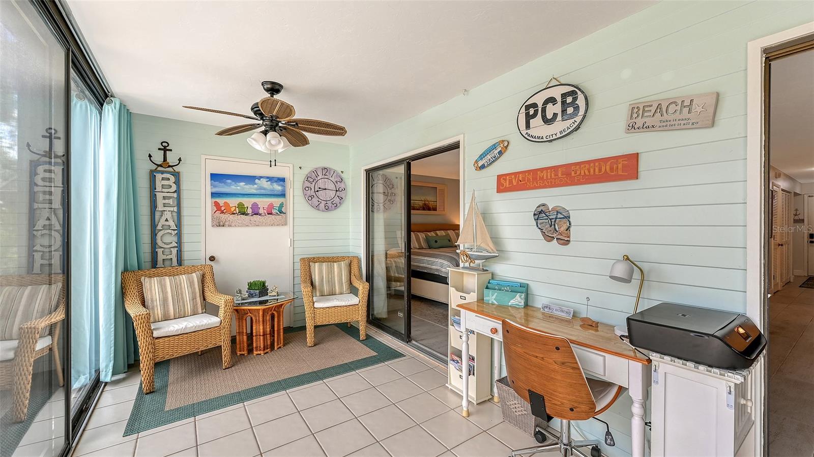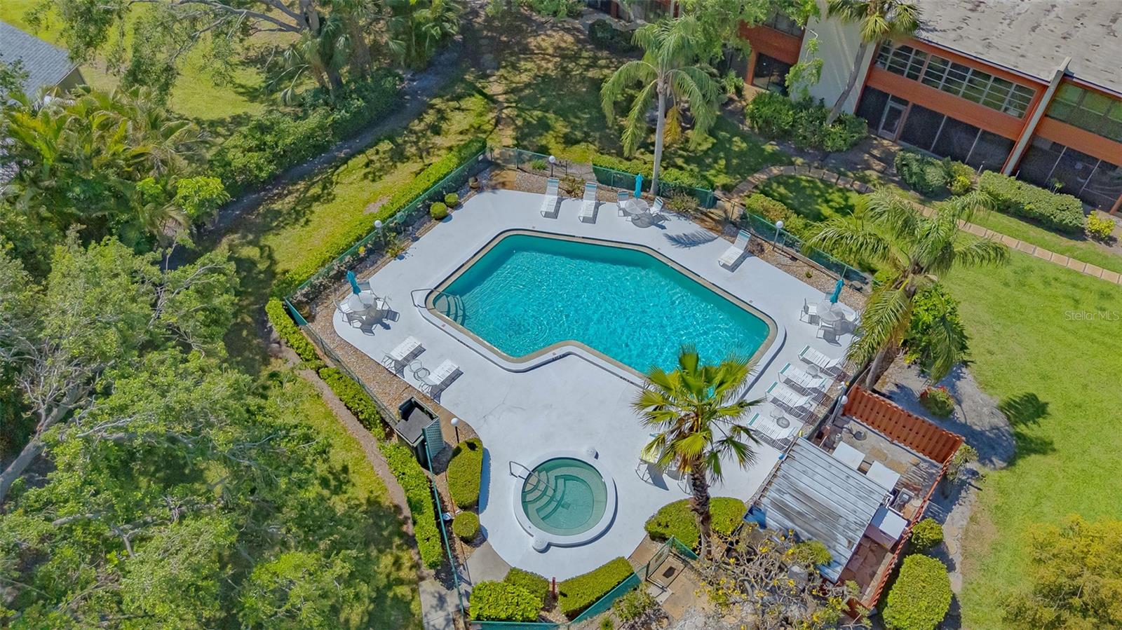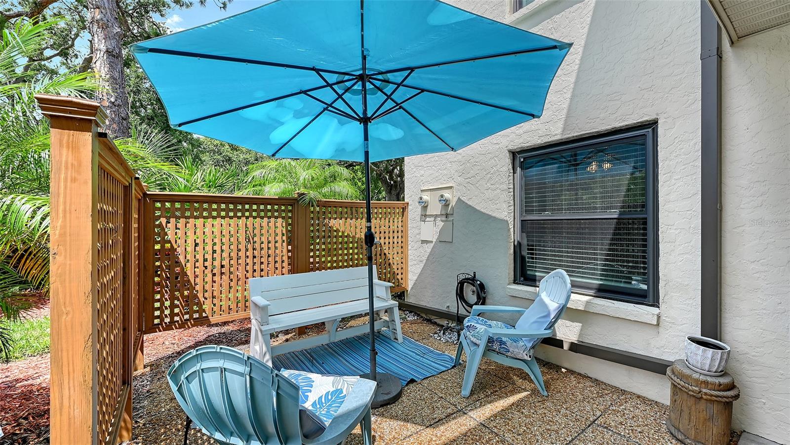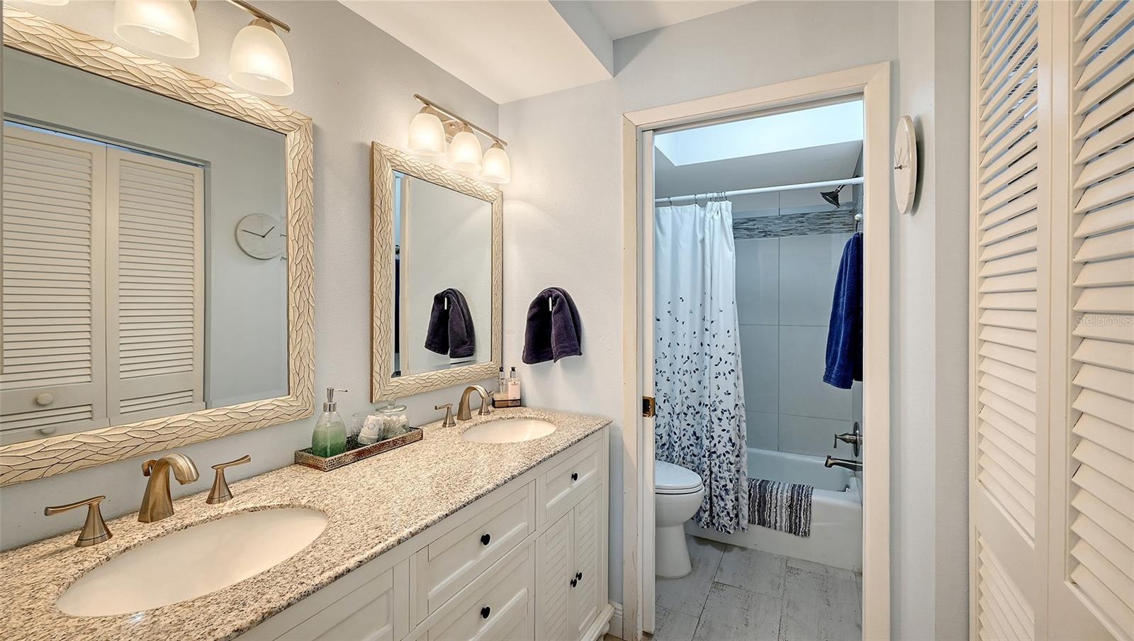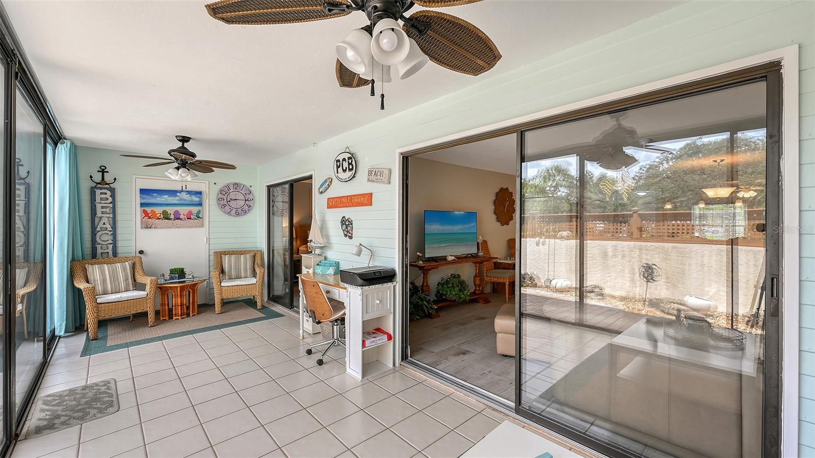 Convenience of a 1st floor corner unit is just the beginning of all the positives this home has to deliver. First, open floor plan with spaciousness, relaxing colors, neutral plank tile flooring throughout, granite counters, stainless steel appliances & location is what Florida comfort living is all about! Starting with the large open eat in kitchen, complete with a new hurricane window, which looks out to your front walkway & private front patio. Large floor to ceiling pantry & numerous cabinets for the gourmets' essentials, in addition to a generous amount of counter space for food prep & entertaining. Right off the kitchen, is a large laundry closet with storage cabinets up above & a newer full-size washer & dryer. Within the open kitchen is counter area for bar stool gatherings & meals, then onto the dining area & living room. The large, enclosed lanai is directly off of the living room. This area has a wall of sliders with screens to enjoy the fall/winter breezes. There is also a large storage closet, right within the lanai. Perfect spot for your bicycles, beach gear, holiday items & general storage, yes, it's that big! Beyond the lanai is an enclosed 3/4 wall, just high enough for privacy but low enough to see over. There's also a door for easy access for a quick walk to the tennis/pickle ball courts. Once back inside, there is also a slider to your sizeable primary bedroom. The elation that comes with this room is the dual sink vanity with the commode & tub area just beyond & separated by a pocket door for privacy. Also within this area is a generous size walk in closet. Once you leave the primary you enter into a short hallway before entering back into the main areas. Within this hallway, you have a double wide closet, use it for extra storage, coats/jackets, paper supplies, kitchen appliances, the sky is the limit. Then, back into the main area, head towards the front, here you will find the guest bathroom along with a fully tiled walk-in shower. Adjacent to the guest bathroom is relaxing guest bedroom along with a very large walk-in closet. The guest room has a full slider which allows natural light to permeate in through the very decorative steel security door. The neutral design & the warm color palate is very inviting & tranquil. Numerous ceiling fans throughout add to the ambiance. the barstool foot wall also has the tile running up it to prevent your guests from leaving their footprints behind. The wall is completely maintenance free & beautiful. Two pools along with hot tubs are close by to enjoy. Each pool area also has restrooms for convenience. This court had a new roof installed & completed in September along with new gutters. The air conditioners were put on platforms & anchored down. The Spring Lakes/Wildewood Spring Community is a beautiful place to call home or choose as your seasonal retreat. It spans 88 acres of meandering roads, several ponds, numerous species of birds for the enthusiast to put the binoculars & camera to use. Enjoy walks catching up with friends & letting fido make some new friends as well. It's also 5 minutes to the Campus of IMG, close proximity to airports, the closest, just 15 minutes away, beaches are a straight run just 15 minutes away, restaurants galore, from quick serve to 5 star gourmet dining. Other fun things to do are: playing a round of golf, fishing boating, theater, spring training, museums, shopping & boutiques. Water Heater 5/25, A/C 2019, Roof 10/24