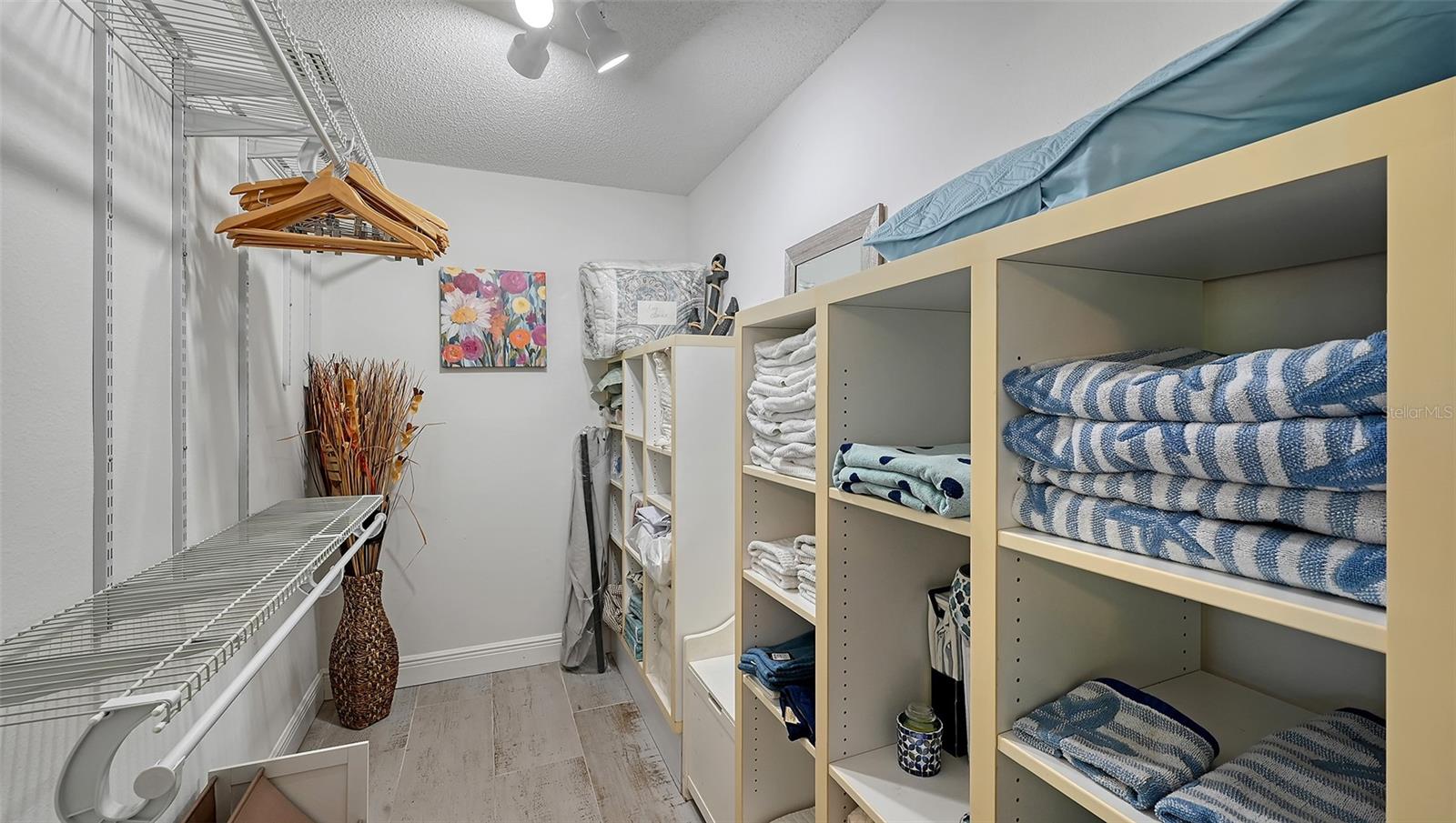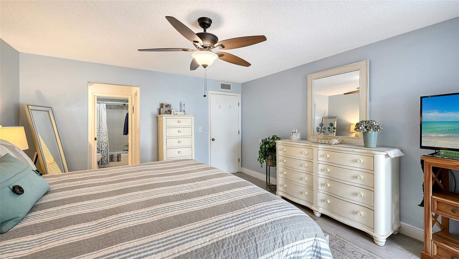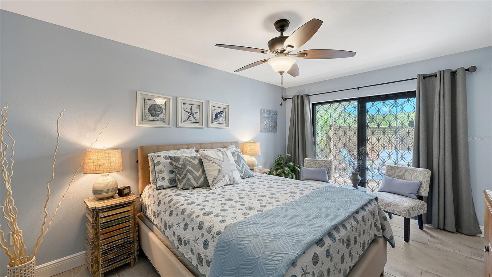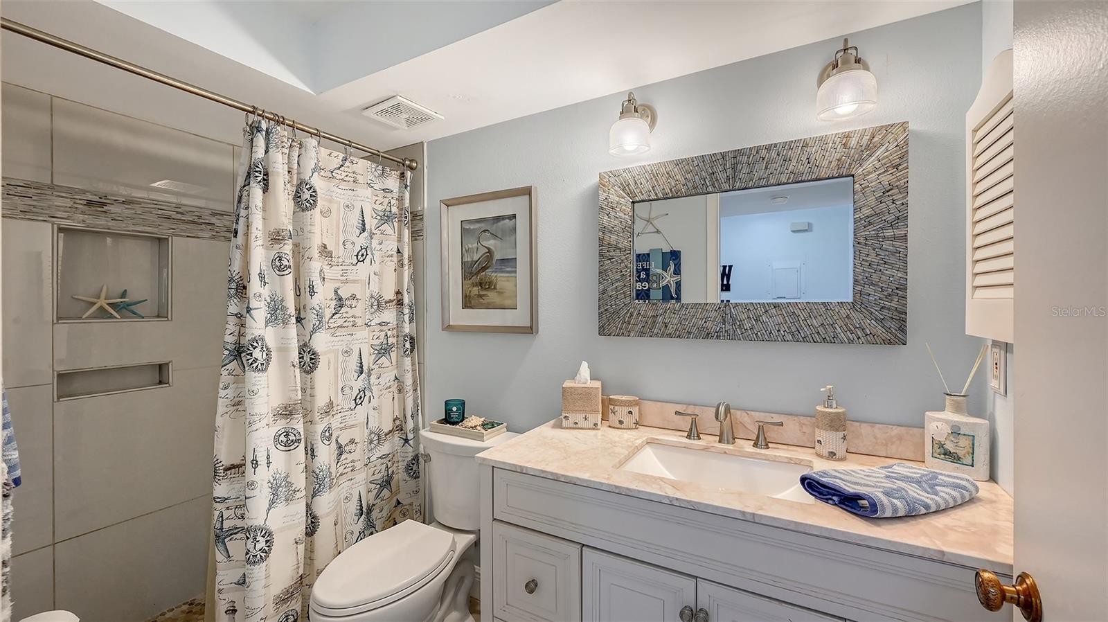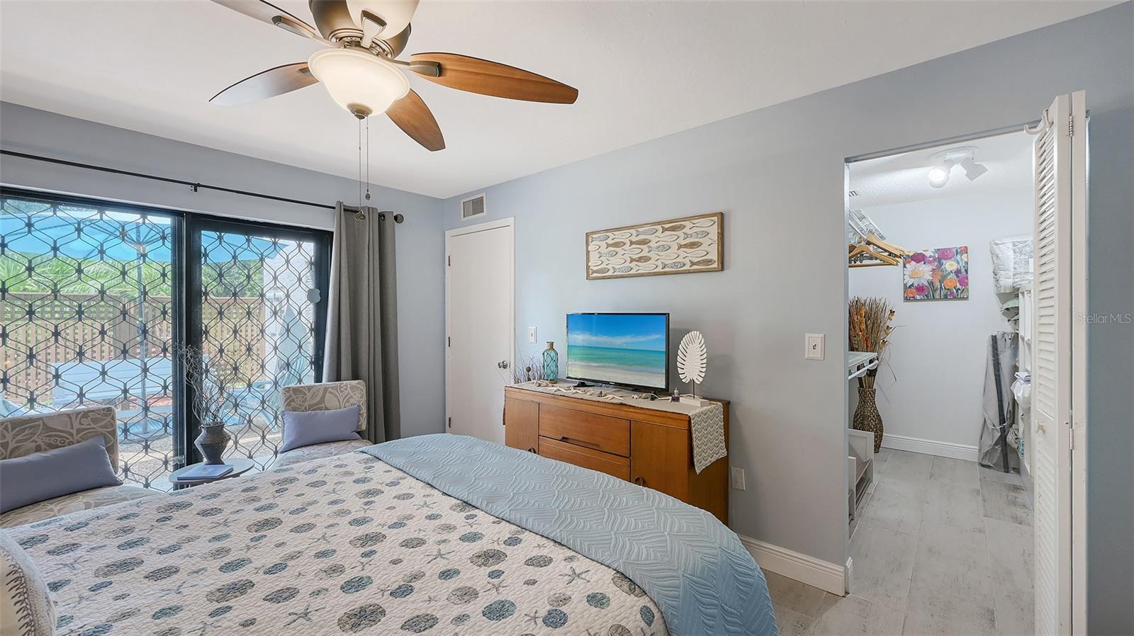 Convenience of a 1st floor corner unit is just the beginning of all the positives this home has to deliver. First, open floor plan with spaciousness, relaxing colors, neutral plank tile flooring throughout, granite counters, stainless steel appliances & location is what Florida comfort living is all about! Starting with the large open eat in kitchen, complete with a new hurricane window, which looks out to your front walkway & private front patio. Large floor to ceiling pantry & numerous cabinets for the gourmets' essentials, in addition to a generous amount of counter space for food prep & entertaining. Right off the kitchen, is a large laundry closet with storage cabinets up above & a newer full-size washer & dryer. Within the open kitchen is counter area for bar stool gatherings & meals, then onto the dining area & living room. The large, enclosed lanai is directly off of the living room. This area has a wall of sliders with screens to enjoy the fall/winter breezes. There is also a large storage closet, right within the lanai. Perfect spot for your bicycles, beach gear, holiday items & general storage, yes, it's that big! Beyond the lanai is an enclosed 3/4 wall, just high enough for privacy but low enough to see over. There's also a door for easy access for a quick walk to the tennis/pickle ball courts. Once back inside, there is also a slider to your sizeable primary bedroom. The elation that comes with this room is the dual sink vanity with the commode & tub area just beyond & separated by a pocket door for privacy. Also within this area is a generous size walk in closet. Once you leave the primary you enter into a short hallway before entering back into the main areas. Within this hallway, you have a double wide closet, use it for extra storage, coats/jackets, paper supplies, kitchen appliances, the sky is the limit. Then, back into the main area, head towards the front, here you will find the guest bathroom along with a fully tiled walk-in shower. Adjacent to the guest bathroom is relaxing guest bedroom along with a very large walk-in closet. The guest room has a full slider which allows natural light to permeate in through the very decorative steel security door. The neutral design & the warm color palate is very inviting & tranquil. Numerous ceiling fans throughout add to the ambiance. the barstool foot wall also has the tile running up it to prevent your guests from leaving their footprints behind. The wall is completely maintenance free & beautiful. Two pools along with hot tubs are close by to enjoy. Each pool area also has restrooms for convenience. This court had a new roof installed & completed in September along with new gutters. The air conditioners were put on platforms & anchored down. The Spring Lakes/Wildewood Spring Community is a beautiful place to call home or choose as your seasonal retreat. It spans 88 acres of meandering roads, several ponds, numerous species of birds for the enthusiast to put the binoculars & camera to use. Enjoy walks catching up with friends & letting fido make some new friends as well. It's also 5 minutes to the Campus of IMG, close proximity to airports, the closest, just 15 minutes away, beaches are a straight run just 15 minutes away, restaurants galore, from quick serve to 5 star gourmet dining. Other fun things to do are: playing a round of golf, fishing boating, theater, spring training, museums, shopping & boutiques. Water Heater 5/25, A/C 2019, Roof 10/24