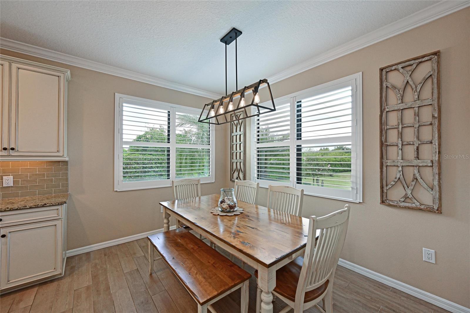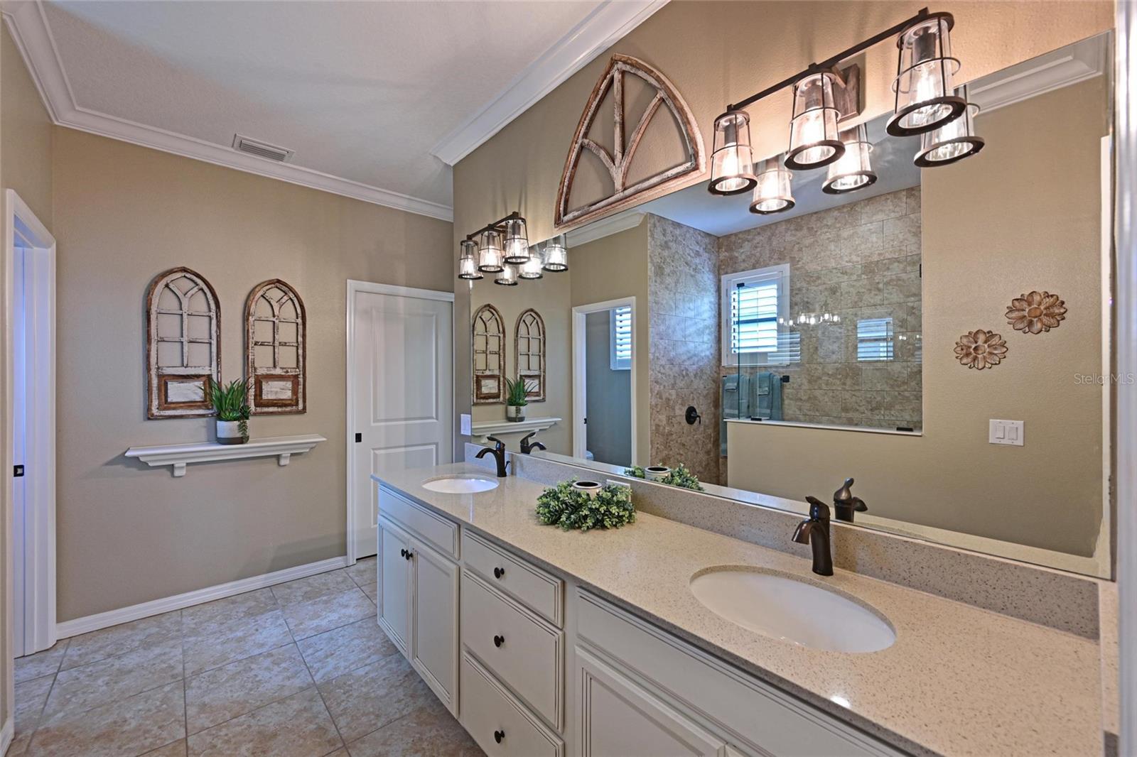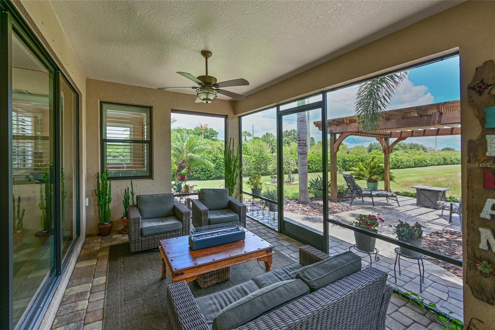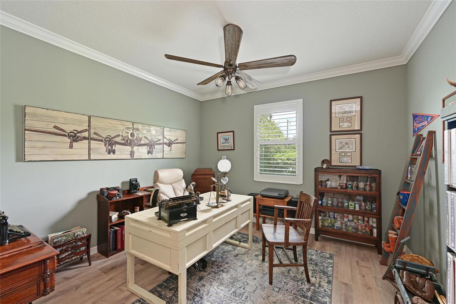 Impeccably Maintained Home in the Gated Community of Greyhawk Landing. Enjoy serene lake views and a lifestyle of comfort in this beautifully cared-for home, set on a premium lot with manicured landscaping and a paver driveway. Inside, a welcoming foyer greets you with warm wood-look plank tile flooring and 8’ doors, setting the tone for the stylish touches found throughout. This thoughtfully designed 2-bedroom, 2-bath home includes a versatile den or home office, perfect for today’s flexible living needs. The popular great room floor plan features a spacious living area with a tray ceiling accented by decorative wood beams and crown molding throughout the entire home, creating an elegant ambiance. The chef’s kitchen is both functional and modern, equipped with stainless steel appliances, granite countertops, gas stove, under-cabinet lighting, a double garbage pull-out, tile backsplash and a stylish Café refrigerator. Upper and lower cabinet crown molding and a closet pantry complete the space with efficiency and style. The spacious primary suite features luxury vinyl flooring, a tray ceiling, plantation shutters, and a generous walk-in closet. The ensuite bath is beautifully upgraded with quartz countertops, dual sinks, modern lighting and faucets, a tiled-to-ceiling walk-in shower, and plantation shutters. Enjoy the Florida lifestyle on the covered screened, paver lanai or relax under the modern pergola overlooking the tranquil lake. The split floor plan offers privacy for guests or family members, with a secondary bedroom and bath located at the front of the home. Additional highlights include: Whole-house water filtration system, Plantation shutters throughout, dedicated laundry room with front-load washer and dryer, sink, and cabinetry, mudroom entry from the garage with barn wood bench and storage, gutters, curbed landscaping, two-car garage with overhead hanging storage and included hurricane shutters. Residents have access to exceptional community amenities. Featuring 2 resort-style pools, 2 Community centers, Playgrounds, fitness center, Tennis, pickleball and basketball courts, soccer and baseball fields, bass-stocked lakes, and miles of nature trails. Situated in the heart of Sarasota/Bradenton with close proximity to world-renowned Beaches, and great shopping and dining at UTC Mall. Easy commute to Sarasota and Tampa airports. This home combines elegant upgrades with practical features in one of the area’s most desirable gated communities.