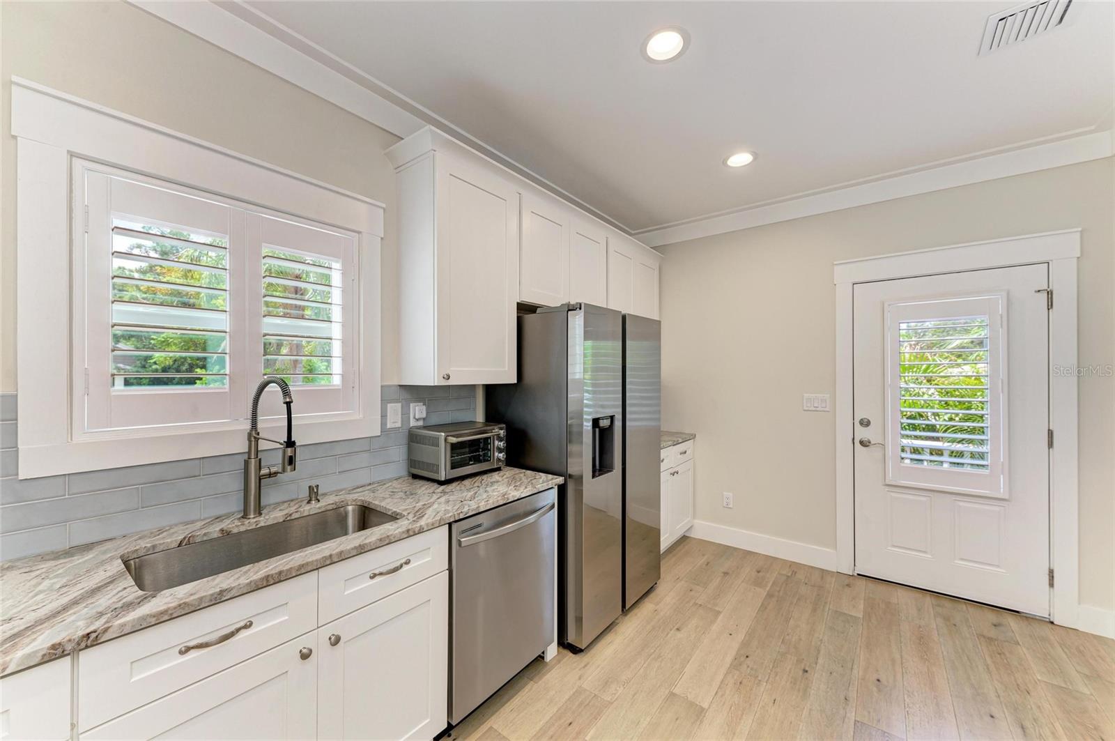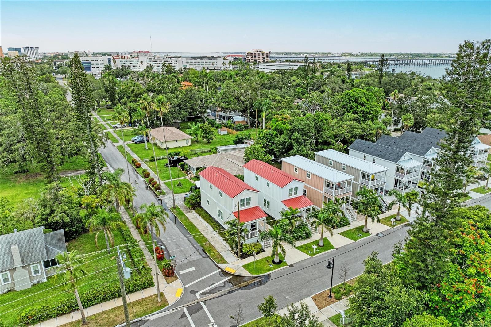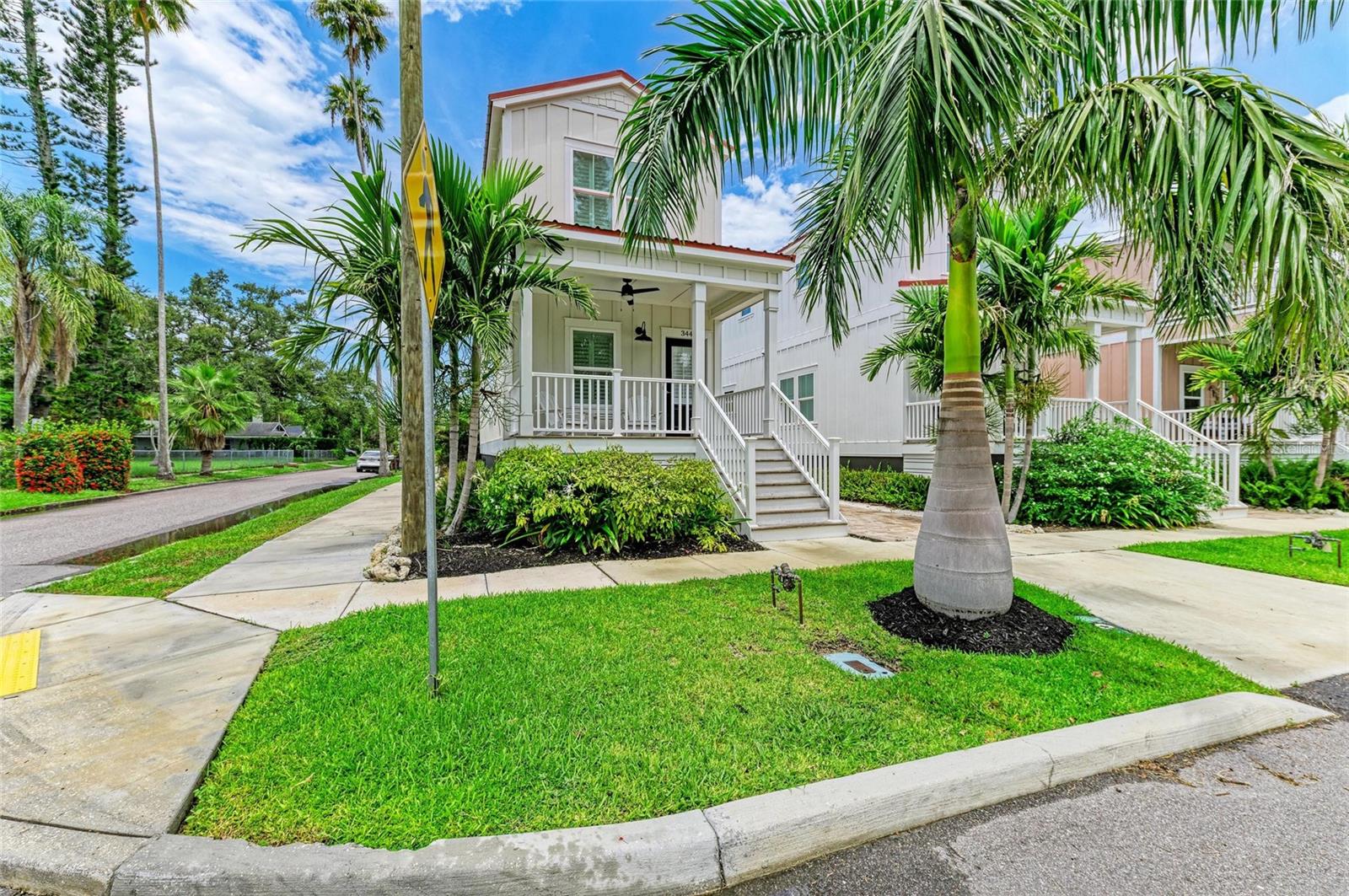 Welcome to your gorgeous 2 year old corner cottage nestled in the sought-after Castaway Cottages community—your slice of Caribbean-inspired charm right across from Bradenton’s scenic River Walk. Immerse yourself daily in waterfront views, leisurely evening strolls, and nearby dining. This land condo is one of only eight tailor-made cottages, built in 2023 by Hamilton Constructors, offering stylish coastal-living with modern finishes and minimal maintenance. Monthly dues are a low $35 for those opting out of lawn service and $85 for those opting in to lawn service. 2 bedrooms with ensuite baths upstairs + ½ bath on the ground level for guests. 1,244 sq ft of breezy, open living space built for Florida living: metal roof, impact-insulated windows, cement siding with lush, low-care landscaping, and two dedicated parking spots. Relax on the 8-ft deep front porch, perfect for watching the world go by in your quaint downtown setting. No lease restrictions — ideal for full-time residence, seasonal living, or vacation rental flexibility. This neighborhood is buzzing with artistic energy and local hotspots. Less than 10 miles to gorgeous Anna Maria Island and the gulf beaches. Conveniently located between St. Pete and Sarasota and all the gulf coast has to offer.