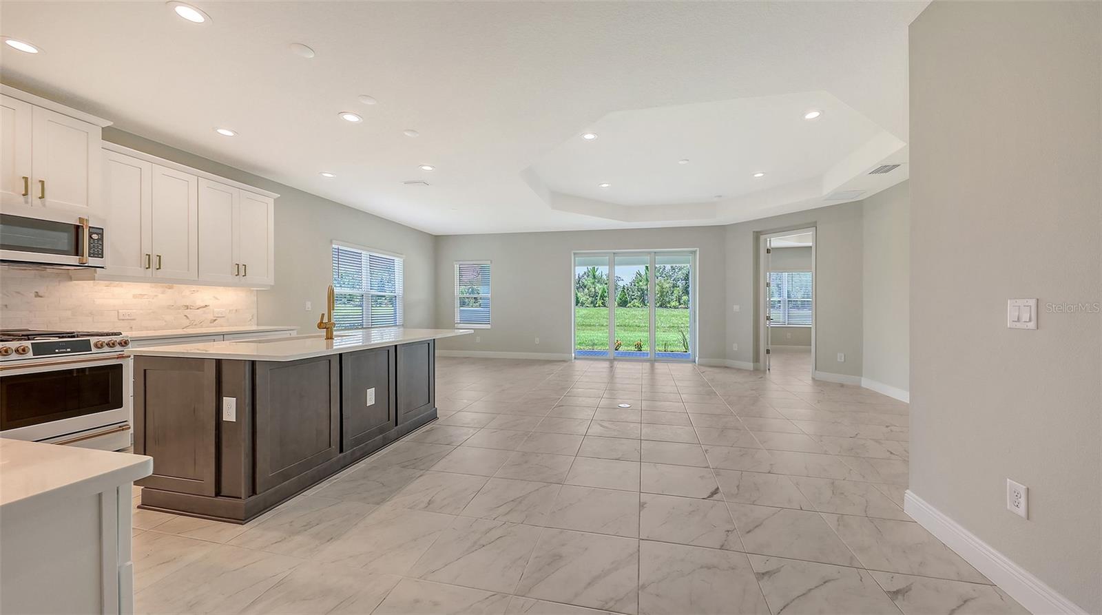 Sophistication meets comfort in this beautifully designed home. From the elegant foyer and gallery-style entry to the open-concept layout, every detail is thoughtfully crafted. The gourmet kitchen includes a large island and walk-in pantry—perfect for entertaining. Enjoy seamless indoor-outdoor living in the great room with an octagonal recessed ceiling and pocket sliding glass doors leading to the covered lanai. The spacious master suite offers two walk-in closets and a luxurious bath with dual vanities, a walk-in shower, and a private water closet. Three additional bedrooms include a guest suite with a private ensuite bath, ideal for visitors or multigenerational living. Don't miss this stunning home that blends style, functionality, and comfort in every space.