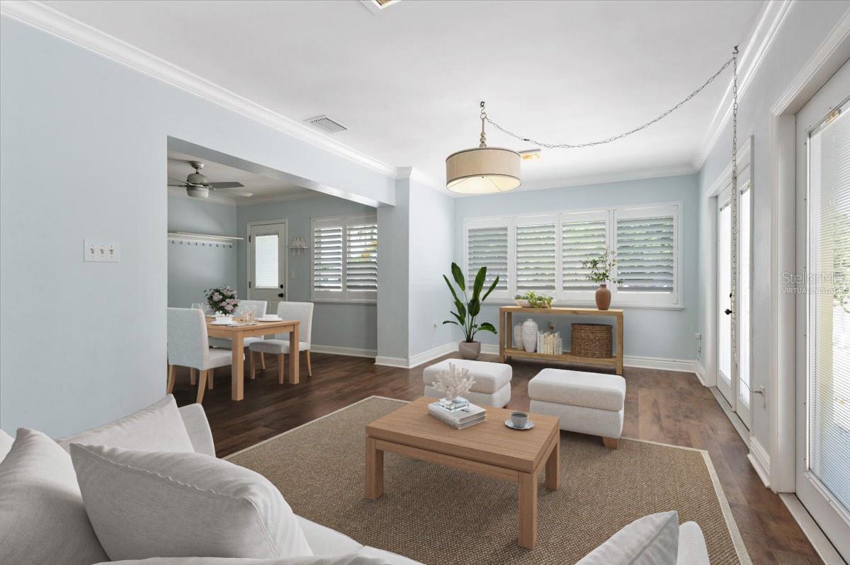 One or more photo(s) has been virtually staged. PRICE REDUCTION......Discover the rare blend of size, flexibility, and location in this spacious 5-bedroom, 2-bath home, perfectly positioned on a double corner lot in the heart of West Bradenton. Whether you're seeking extra bedrooms for a growing household or looking to maximize income potential through short-term rentals, this home delivers. New metal roof (2023) adds peace of mind and long-term value. Inside, the layout offers exceptional versatility. One of the bedrooms includes a private exterior entrance—ideal for a guest suite, home office, or separate rental space. Three bedrooms feature mini-split A/C units, enhancing energy efficiency and providing customized comfort for every occupant. The interior includes a large family room offering endless potential—use it as a formal dining area, game room, or media lounge. The huge, fully fenced front yard is ready to welcome your pets, while the 10x20 freestanding workshop and storage shed (2020) provides ample space for hobbies, tools, or extra storage. Located just minutes from the Gulf beaches, hospitals, and local shopping, and one block from Manatee High School, this home offers an unbeatable combination of convenience, comfort, and opportunity.