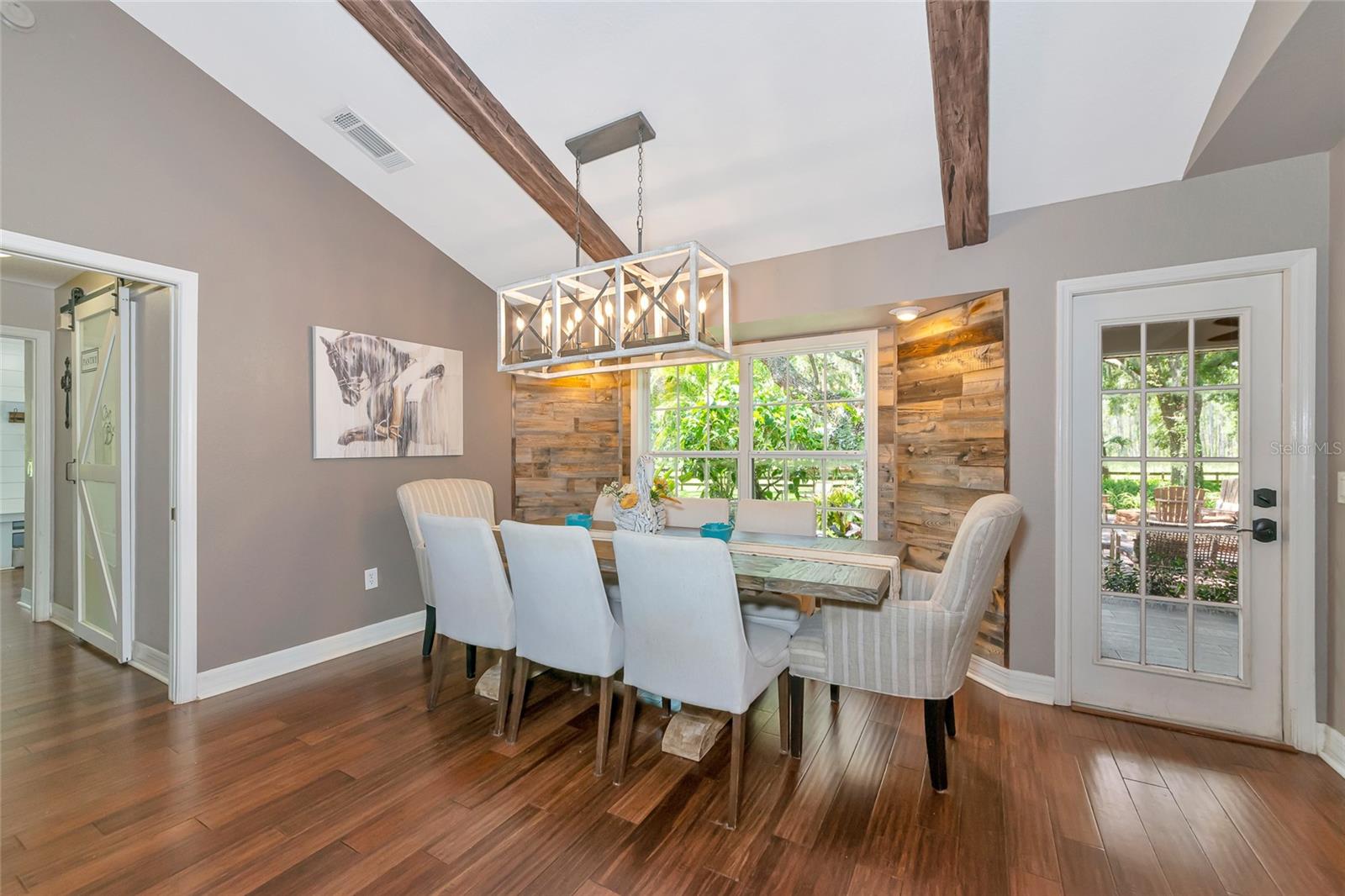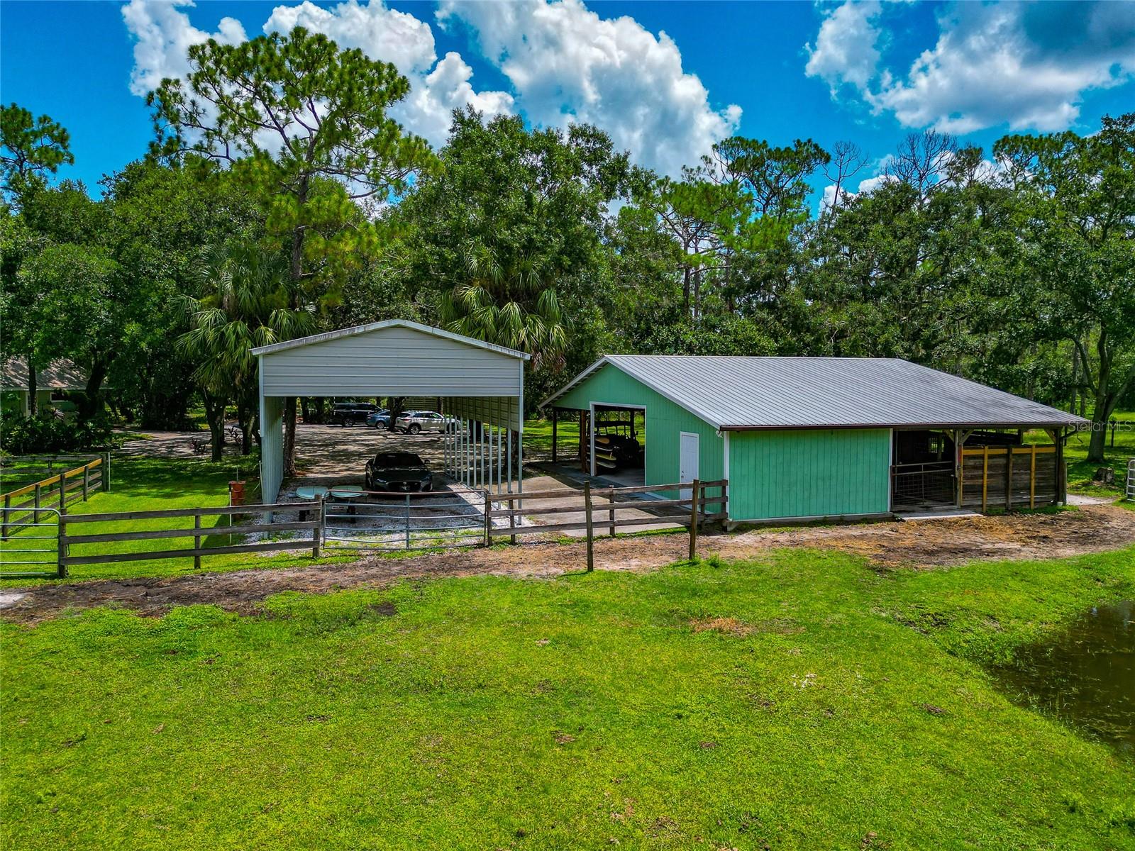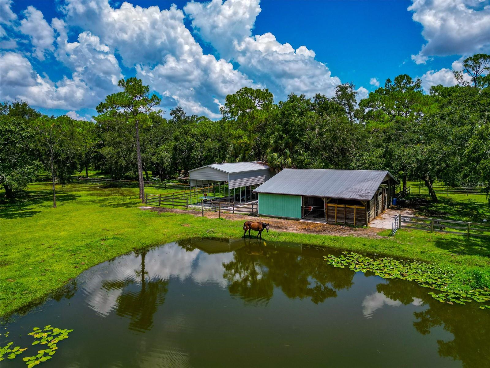 Discover a truly rare opportunity to own 5 private acres with no HOA and or deed restrictions, that is just 5 minutes away from all that our area has to offer, is a hard-to-find combination in today’s market. Tucked away in a serene and secluded setting, this property offers all the peace and privacy of country living, while being just minutes from everyday conveniences like Target, Costco, and fine dining at Seasons 52, along with all the amenities of Lakewood Ranch. Families will appreciate access to top-rated schools, and commuters will love the easy interstate access that places Sarasota, St. Pete, Tampa and surrounding areas. A private asphalt driveway leads you through a lush, shaded landscape, setting the tone for the tranquil private setting that awaits. Inside the home, enjoy bamboo flooring downstairs and tile upstairs. The heart of the home is a renovated 2020 kitchen that features custom hardwood cabinets, granite countertops, and stainless-steel appliances, perfect for hosting all your gatherings. Step outside into a true outdoor retreat, where a natural lagoon style pool, covered outdoor kitchen, paver patio, Sonos surround sound, lighting, and fire pit come together to create a dream space for both relaxation and celebration. Tucked beneath a canopy of 100+ year-old grandfather oaks, this 4 bedroom, 3 bath, dual office (one could be a 5th bedroom) home spans over 3,104 sq ft and is ideal for multi-use living and remote work with room to roam. The property features agricultural zoning and generous space which includes an outbuilding currently used for horses and storage, making it an excellent choice for a small business owner who wants to operate from home without sacrificing proximity to town. There is also an additional covered area for your boat, RV or whatever toys you want to keep shaded. Whether you envision keeping animals, building a workshop, storing equipment, or simply enjoying wide open space, this property provides the freedom and flexibility most neighborhoods can’t offer.