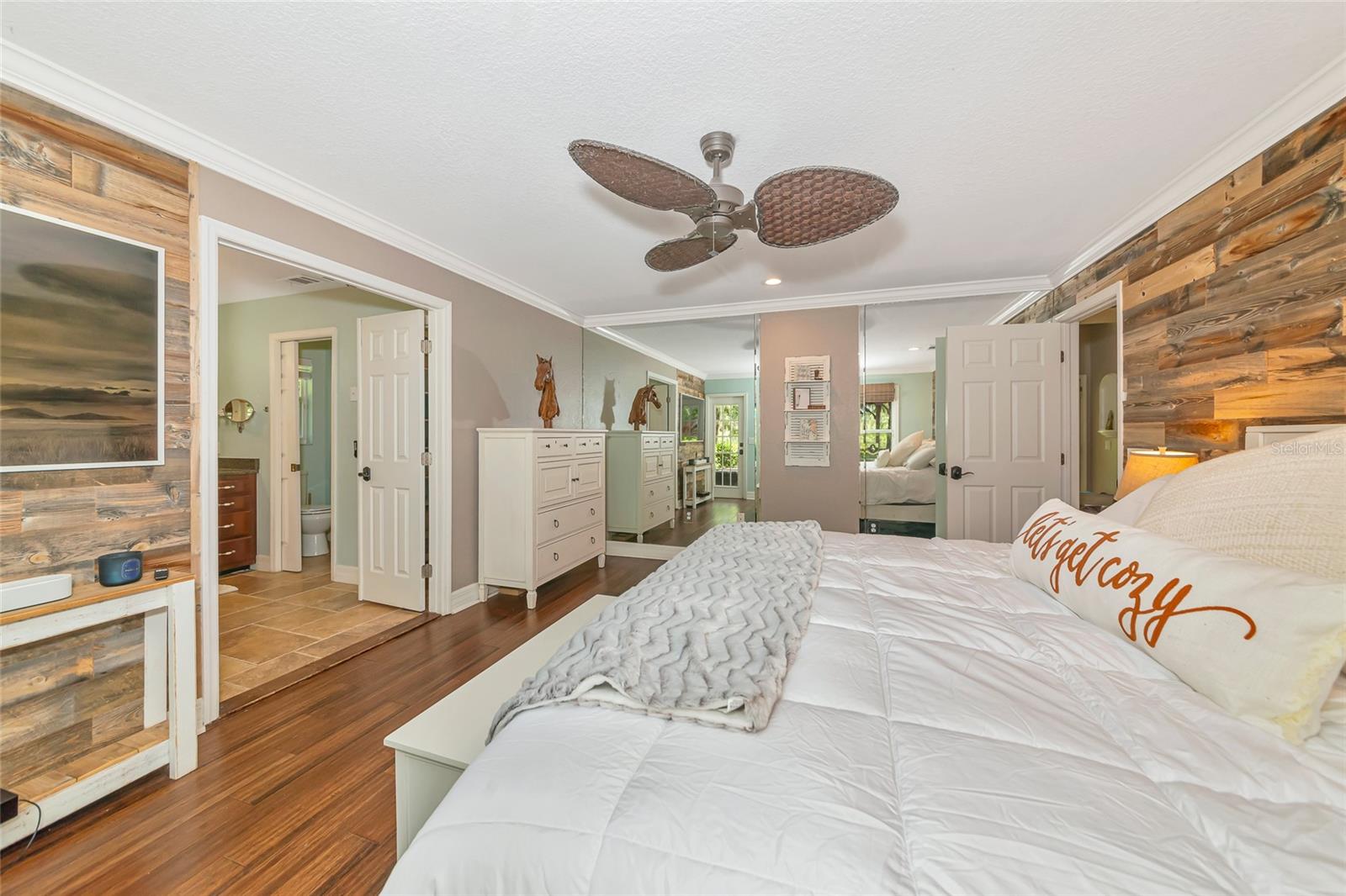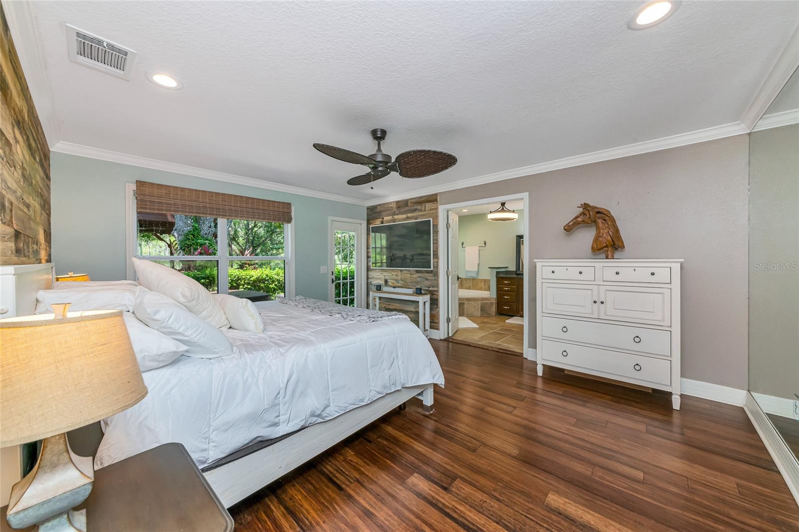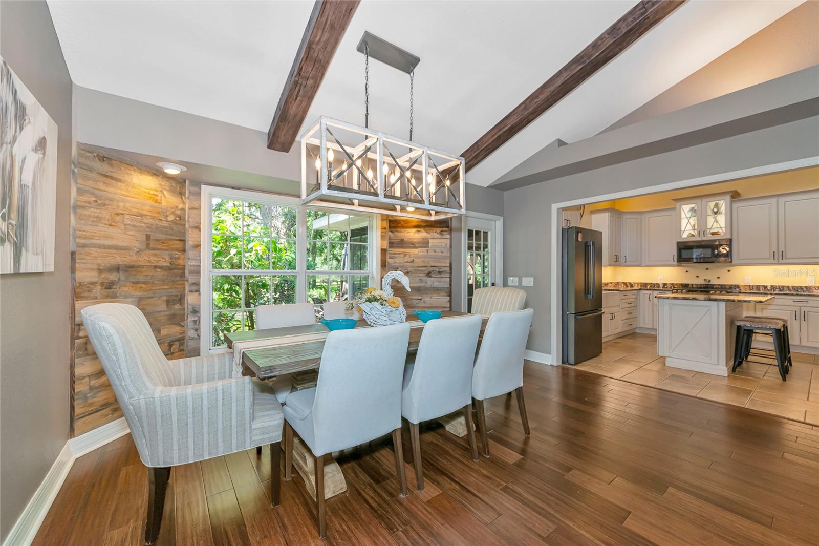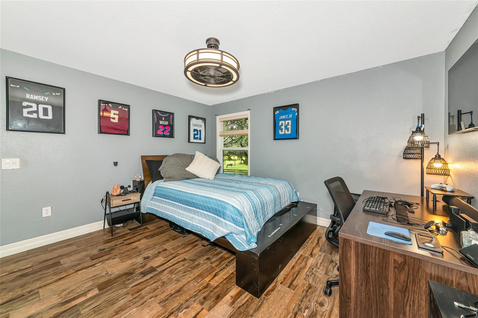 Discover a truly rare opportunity to own 5 private acres with no HOA and or deed restrictions, that is just 5 minutes away from all that our area has to offer, is a hard-to-find combination in today’s market. Tucked away in a serene and secluded setting, this property offers all the peace and privacy of country living, while being just minutes from everyday conveniences like Target, Costco, and fine dining at Seasons 52, along with all the amenities of Lakewood Ranch. Families will appreciate access to top-rated schools, and commuters will love the easy interstate access that places Sarasota, St. Pete, Tampa and surrounding areas. A private asphalt driveway leads you through a lush, shaded landscape, setting the tone for the tranquil private setting that awaits. Inside the home, enjoy bamboo flooring downstairs and tile upstairs. The heart of the home is a renovated 2020 kitchen that features custom hardwood cabinets, granite countertops, and stainless-steel appliances, perfect for hosting all your gatherings. Step outside into a true outdoor retreat, where a natural lagoon style pool, covered outdoor kitchen, paver patio, Sonos surround sound, lighting, and fire pit come together to create a dream space for both relaxation and celebration. Tucked beneath a canopy of 100+ year-old grandfather oaks, this 4 bedroom, 3 bath, dual office (one could be a 5th bedroom) home spans over 3,104 sq ft and is ideal for multi-use living and remote work with room to roam. The property features agricultural zoning and generous space which includes an outbuilding currently used for horses and storage, making it an excellent choice for a small business owner who wants to operate from home without sacrificing proximity to town. There is also an additional covered area for your boat, RV or whatever toys you want to keep shaded. Whether you envision keeping animals, building a workshop, storing equipment, or simply enjoying wide open space, this property provides the freedom and flexibility most neighborhoods can’t offer.