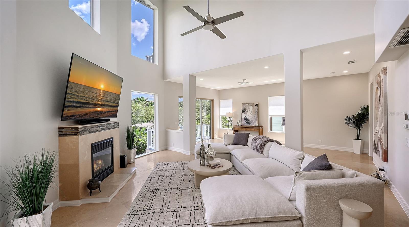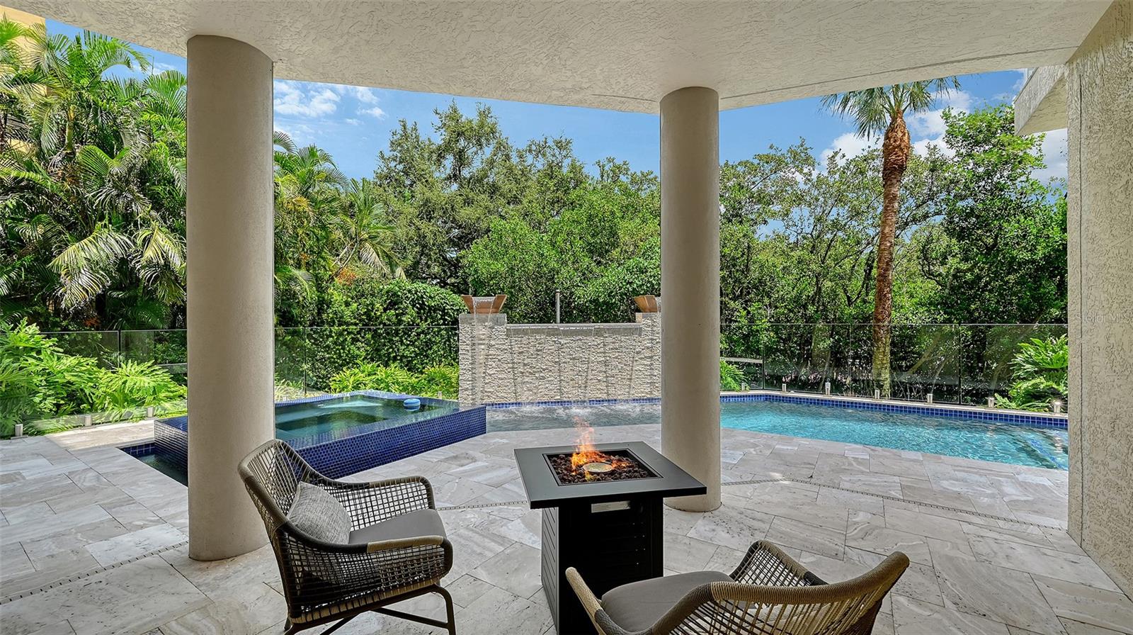 Welcome to an exceptional coastal residence that blends luxury, comfort, and lifestyle. This stunning single family home is ON THE CANAL and features 3 bedrooms, all with ensuite bathrooms and walk-in closets, an office, a loft perfect for a second office, a heated salt-water pool, and a 7,000 lb boat lift with direct access to the Gulf of Mexico. Designed for both relaxed living and elegant entertaining, the property offers a collection of thoughtful upgrades and designer details that set it apart. For the car enthusiast, this property boasts a rare 5-car garage with A/C, and ample space not only for your collection but also for a dedicated workshop, home gym, or creative project area. The interior elevator is perfect for moving furniture, groceries, and anyone needing additional accessibility! Elevated with all living spaces and AC systems starting on the 2nd level, ensuring comfort and protection in a coastal setting. The Gourmet Kitchen features Stainless Thermador appliances incl 2 Dishwashers, Wall-Mounted Electric Oven & Microwave, 6-Burner Gas Range with Stainless Range Hood and second oven. In addition to this already luxurious kitchen is a Prep Sink, Glass Tile Backsplash, Upgraded Kitchen Faucet, Walk-In Pantry, Granite Countertops, Aquarium Glass Window, Glass Open-Framed Cabinets, Island and Breakfast Bar, Under & Upper Cabinet Lighting, Storage Cabinets in Island. Interior Upgrades: Travertine & Engineered Hardwood Flooring, Wine Room with Display Window & Built-In Ladder, Upgraded LED Light Fixtures Throughout, Floor-to-Ceiling Windows, Elevated Ceilings, Elevator, 4th Floor Observation Room with breathtaking views of Sarasota Bay and downtown Sarasota, Fireplace, Wet Bar and Built-Ins in 2nd Floor Loft Space. Exterior Upgrades: Heated Salt-Water Pool with Water Bowls, Waterfall Stone Accent Wall, Heated Spa, Iridescent Glass Mosaic Pool Tiles, Sandblasted Marble Pool Decking, Landscape Lighting, Updated Landscaping and Curbing, Sprinkler System, Glass Pool Fence, Updated Dock with 7,000 lb boat lift (22–26 ft capacity), new motor, updated electrical and lift control box with remote control, Newly Installed Bench on Dock, 9 Balconies for ultimate views all around, CB Block Construction, Concrete Stairs. This home was designed to maximize both indoor and outdoor living. Entertain effortlessly in the chef’s kitchen, enjoy a glass of wine in the custom wine room, or take in the incredible views from one of the nine balconies. Relax poolside beside the iridescent glass mosaic tiles that shimmer under the Florida sun, or step onto your dock and launch your boat directly into the waters that lead to the Gulf. Beyond the property, the location offers unmatched convenience. Just minutes away are the powder-soft beaches of Anna Maria Island, the dining and shopping of Longboat Key and St. Armands Circle, and the ease of SRQ International Airport for travel. The gated community ensures privacy and security while providing a serene waterfront setting. For evenings out, you’re only a short drive from both downtown Bradenton and the vibrant nightlife of downtown Sarasota. You’ll also enjoy the laid-back coastal dining of Anna Maria, where beachfront restaurants and charming cafes capture the essence of Florida’s island lifestyle. This is more than a home — it’s a lifestyle. With unmatched upgrades, spectacular water access, and an unbeatable location, this residence delivers the ultimate Florida living experience.