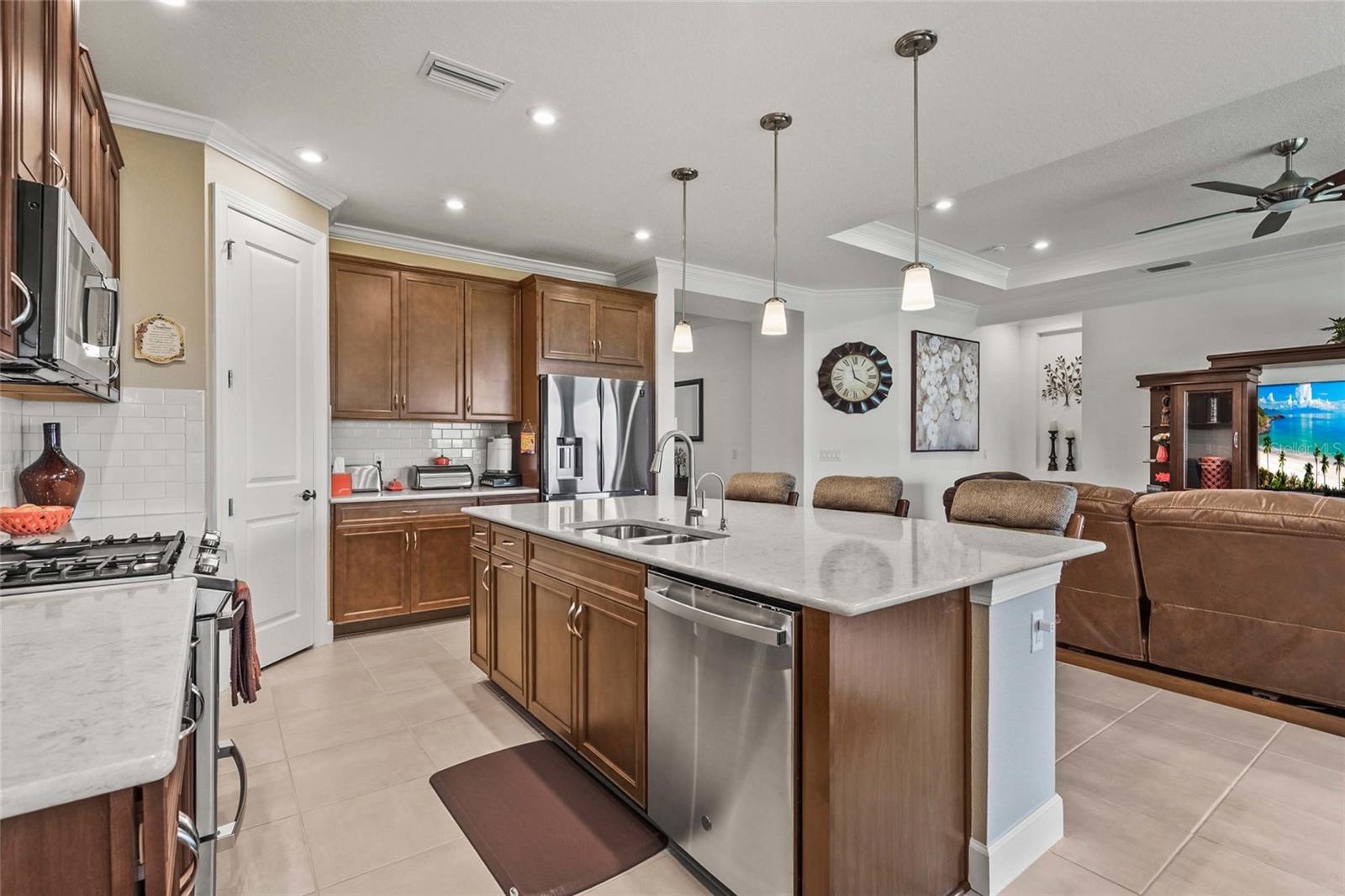 Welcome to Esplanade at The Heights – where every day feels like a private resort retreat. This beautifully appointed 2-bedroom, 2.5-bath home with a den and office is perfectly set on a tranquil lakefront homesite, offering both elegance and comfort. The open-concept design is elevated with crown molding throughout, plantation shutters, and a spacious kitchen featuring stainless steel appliances, gas range, and a large island ideal for entertaining. The primary retreat is a luxurious haven, complete with a spa-inspired bath offering a walk-in shower, dual sink vanity, and a custom-designed walk-in closet. A private guest suite with en suite bath, along with a versatile den and separate office, provide thoughtful flexibility for today’s lifestyle. Enjoy peaceful mornings and golden sunsets from the screened lanai overlooking the lake. This home has the option to be purchased turnkey furnished, if preferred for your convenience! Life at Esplanade at The Heights means more than just a home—it’s a lifestyle. Residents enjoy a heated resort-style pool and spa with private cabanas, a state-of-the-art fitness center, and lighted tennis, pickleball, and bocce courts, plus a pet park for four-legged companions. Step outside to Mt. Tumalo Park, where meandering trails, lake views, fitness stations, and wide-open green spaces offer the perfect blend of recreation and serenity. At The Venue, sophistication is in the details—beautiful gathering spaces, a catering kitchen, billiards lounge, spa treatment suite, and aerobics studio provide endless opportunities for connection, wellness, and relaxation. Experience the art of living well—lakefront, turnkey, and waiting for you.