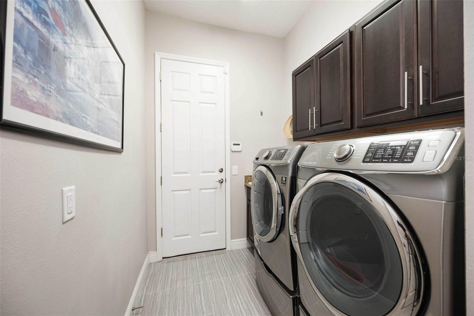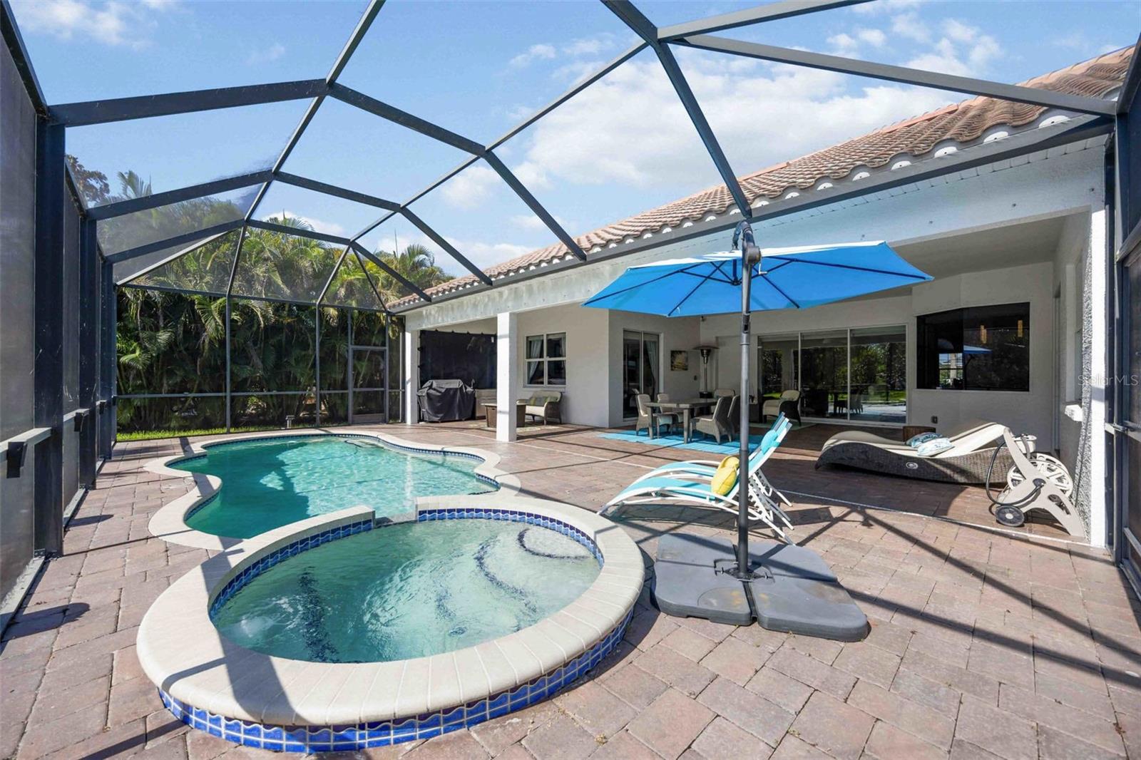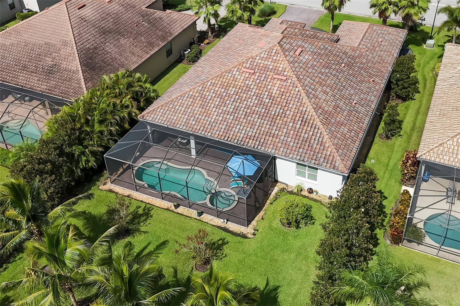 Welcome to 945 145th St Cir NE, Bradenton, FL – a meticulously upgraded 3 bedroom + large Bonus Room, 3 bath 2787 sq. ft. pool residence, designed for both everyday comfort and elegant entertaining. An expansive private rear yard too! From the moment you arrive, the home makes an impression with its real stone columns, fresh exterior paint, upgraded landscaping with custom lighting, and paver driveway and walkway. Step inside to find rectified Italian porcelain flooring flowing through the main living areas, complemented by engineered hardwood in the bedrooms. Arched entries, rounded corners, vaulted tray ceilings, and crown molding enhance the open layout, while collapsing pocket sliding glass doors seamlessly connect the Great Room to the outdoor living space. Throughout the home, 5 ¼” baseboards and 8-foot doors add a refined, custom finish. The heart of the home is the upgraded kitchen, featuring dovetail soft-close cabinetry with crown molding, granite countertops, a counter-height peninsula, under-cabinet lighting, and a vented glass/stainless-steel hood. A custom walk-in pantry, bar nook with quartz countertop and wine fridge, and upgraded fixtures complete the space. The laundry room is equally well-appointed with cabinetry, sink, washer/dryer, and an additional storage closet. The oversized media room, spanning over 400 sq. ft., offers flexibility to serve as a second master suite or entertainment space. The primary suite itself is a retreat, featuring custom dual walk-in closets with built-ins, blackout curtains, and a luxurious bath with a soaking tub beneath a chandelier. Outdoor living is truly exceptional. A screened, extended lanai of over 1,000 sq. ft. showcases upgraded pavers, ceiling fan, and it’s already plumbed for an outdoor kitchen and TV wiring. The heated saltwater pool with brick coping is paired with a lighted spa cascading into the pool. For peace of mind, the lanai is protected by UV-rated hurricane screens, with storm shutters for windows and doors. The lushly landscaped yard includes four mature coconut palms and over 50 magnolia trees, all maintained by an automatic sprinkler system. Additional highlights include epoxy-coated garage floors with “Florida basement” for raised shelf storage, monitored outdoor cameras and motion lighting for extra security, tinted double-pane windows, and upgraded chandeliers and fixtures throughout. This home combines high-end finishes, practical upgrades, and extensive indoor-outdoor living – a rare opportunity in the gated community of Enclave at Country Oaks in Bradenton.