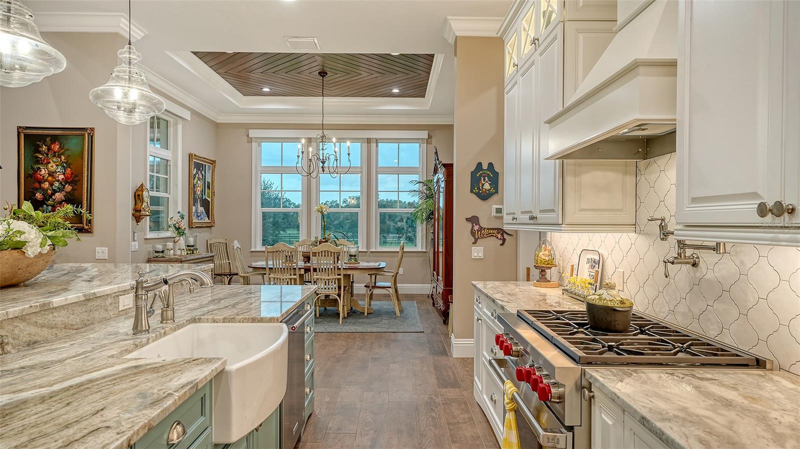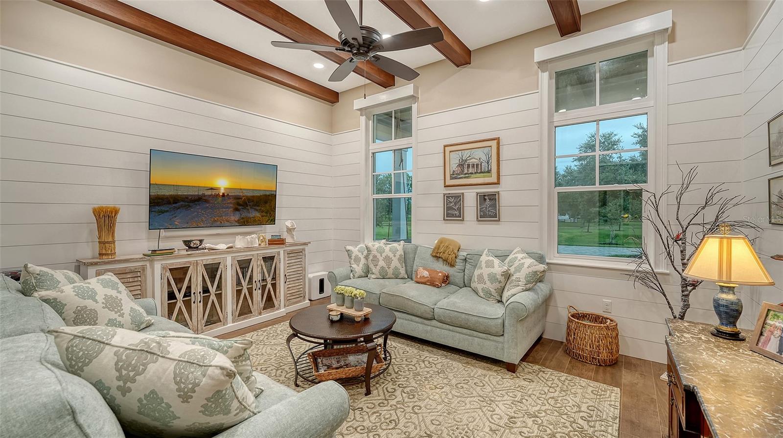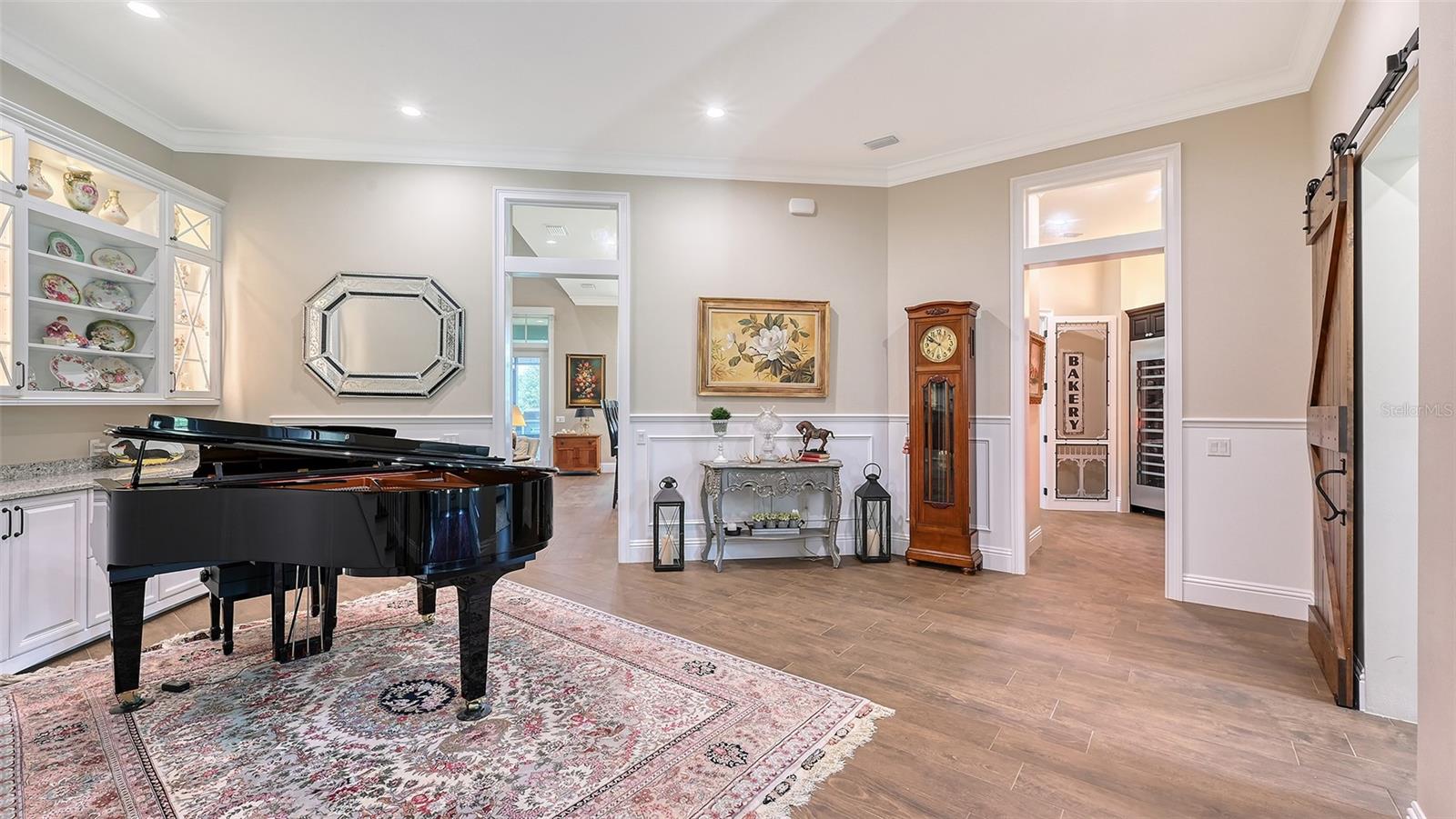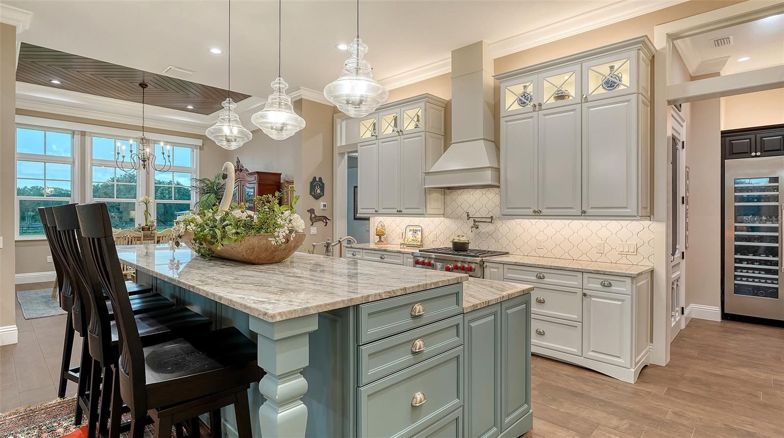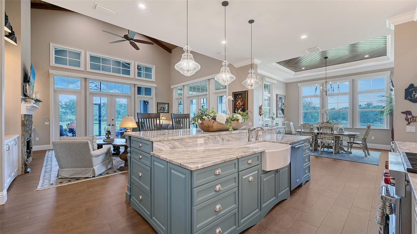 Nestled in Panther Ridge, this gated 9+ acre estate blends luxury and equestrian excellence. A winding paver driveway, lined by majestic oaks, curves past the guest home to the main residence. High and dry with superior drainage, the fenced and cross fenced property features oak, pine, lush pastures and lake views, creating a park-like oasis. Storm-ready with impact-resistant doors, windows, metal roofs, and a whole home generator, peace of mind is ensured. The estate is ideal for multi-generational living and features a 5,003 sq ft u/air smart home built in 2021 (7,185’ total), a remodeled guest home with a 2025 metal roof (2,559 sq ft u/air, 3540’ total), and a state-of-the-art barn, also constructed in 2021. The Grand Main Residence: A sweeping front porch adorned with stucco columns and tongue-and-groove ceilings invites guests in. Elegant Cheyenne front doors establish a refined ambiance, and upon entering, soaring ceilings rise majestically from 11’ to 22’ on the main floor and 10’ on the second floor. The home offers effortless living with dual Primary Suites w/a sumptuous spa bathroom on the main floor and 2 ensuite bedrooms upstairs. It’s many exquisite features include oak flooring, Haven Barrel porcelain tile, poplar-wrapped beams, cypress T&G accents, custom barn doors, and a striking red oak staircase. Smart home automation controls the A/C, garage doors, motorized blinds, lighting, and hurricane resistant lanai shades. The home is pre-wired with Cat 6 and coax cable and has a 25kw whole-home generator. The gourmet kitchen features a SubZero refrigerator, Wolf gas range, microwave, and Marsh maple cabinets. The wet bar includes Scotsman clear ice maker, Thermador refrigerator, wine refrigerator, and HUGE walk-in pantry. Primary Suites offer oak flooring, TG ceilings, spa baths with Mir Retro Blanco tile, claw foot tub, large walk-in shower, and spacious custom closets. The open-concept great room with soaring cathedral ceilings and gas fireplace creates an inviting space for entertaining. The 1,000 sq ft screened lanai includes a luxurious 1,500 gallon heated spa, Travertine pavers, outdoor kitchen with Sedona 30" gas grill, 20" refrigerator, NatureKast cabinets, ledge stone, TG ceilings, and gas fireplace. Energy-efficient, the home features 3 Trane XR 16 SEER A/C units, Rinnai tankless water heaters, R-41 insulation, impact-resistant doors and windows, dual propane tanks (1,500 gal total), and Hardi siding exterior. The Charming Guest Home: Perfectly remodeled 3-bedroom, 2-bath home with 10/11' ceilings, plank porcelain tile throughout, and a chef’s kitchen that includes Dutch-built solid wood cabinets, granite counters, lg center island, and Thermador dual-fuel oven. PLUS-Thermopane windows/doors, Kevlar hurricane screens, 80-gal water heater, solar attic fan, Trane AC w/HEPA filter. The Premier 5-Stall Barn: This 60x57 concrete barn features galvanized steel, powder coated finishes, 5-V Galvalume roof, and R-19 insulation. Sliding stall doors with feed openings, yoke/crossbuck designs, Dutch doors, a center aisle with self-cleaning tracks, A/C tack room complete with a sink, wash stall, and a grooming station, alongside a dedicated hay and feed room. 4 stalls are accompanied by fenced paddocks, each offering direct access to the serene surroundings. The 5th stall offers flexibility, all while overlooking a picturesque landscape adorned with majestic oaks and a tranquil reflection pond, creating a perfect haven for all!