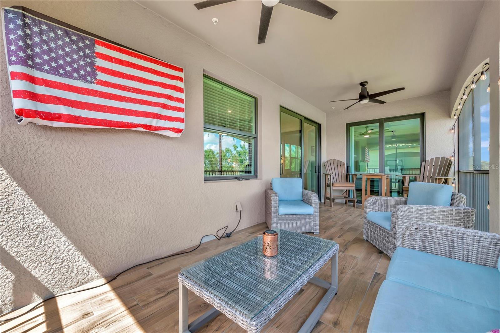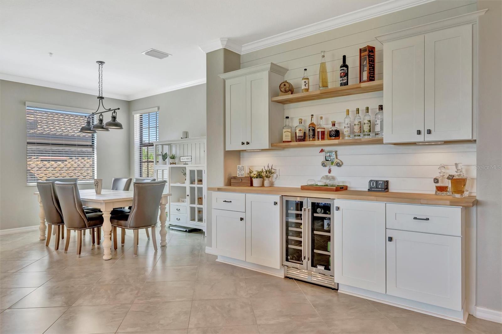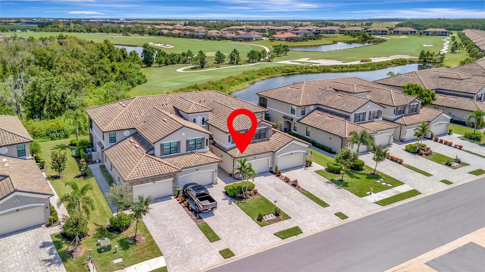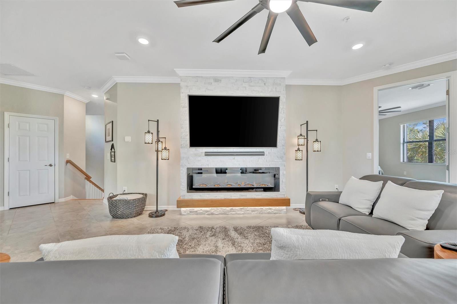 Welcome to Paradise! With 3 bedrooms, 2 baths, and a 2.5 car garage, this Lakewood National upper floor Coach Home has been thoughtfully updated with various improvements for comfort, style, and functionality. New luxury vinyl plank flooring covers the bedrooms, stairs, and landings, giving the home a fresh, modern feel. The chef-inspired kitchen boasts brand-new appliances installed within the last year, including a high-end refrigerator, a double oven with a 5-burner gas cooktop, and a sleek and quiet dishwasher, making it a culinary haven. A custom bar area with cabinets for extra storage, butcher block shelves and countertop, and a beverage cooler creates an eye catching yet functional space for entertaining. The living room includes a custom stone wall and electric fireplace, adding warmth, style, and character. Updated fixtures and fans throughout, bring a clean look to the interior, while TVs in the living room and on the lanai provide entertainment options. The screened in lanai, which provides a direct view of hole #11 Piper, is upgraded with new dark flooring and large ceiling fans, and is a comfortable place to relax outdoors. Nestled next to a preserve and pond, the property offers serene views with frequent sightings of deer and other wildlife, creating a peaceful, nature-filled backdrop. A water softener and filtration system with a lifetime warranty ensures clean water for the household. This move-in-ready townhouse blends practical upgrades with a welcoming vibe. Membership boasts access to 36 holes of golf, 24-hour gated security with nightly patrol, a state-of-the-art fitness center with 24-hour access, an onsite fitness director, a TPI certified personal trainer, a variety of group fitness classes to choose from, saunas in the men’s and women’s locker rooms, 8 lighted Har-Tru tennis courts, 4 pickleball courts, 2 Har-Tru bocce courts, full-service salon/spa, resort-style pool with waterfall features, a spa, and a lap pool. Enjoy dining at the community's two restaurants - the poolside Tiki Bar and the full-service on-site dining experience at Deke’s Grill; Palmer Room located inside the newly finished clubhouse. You will find everything you need within this beautiful, gated community.