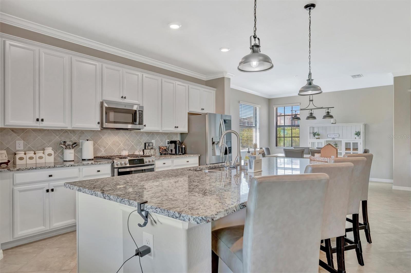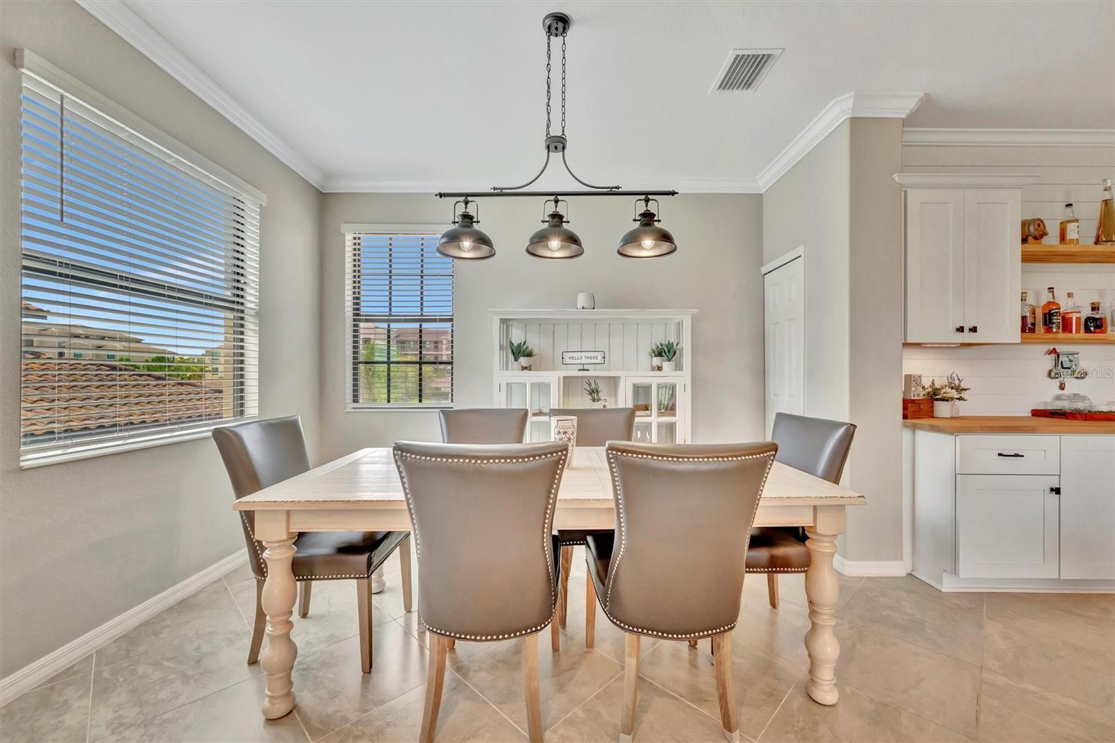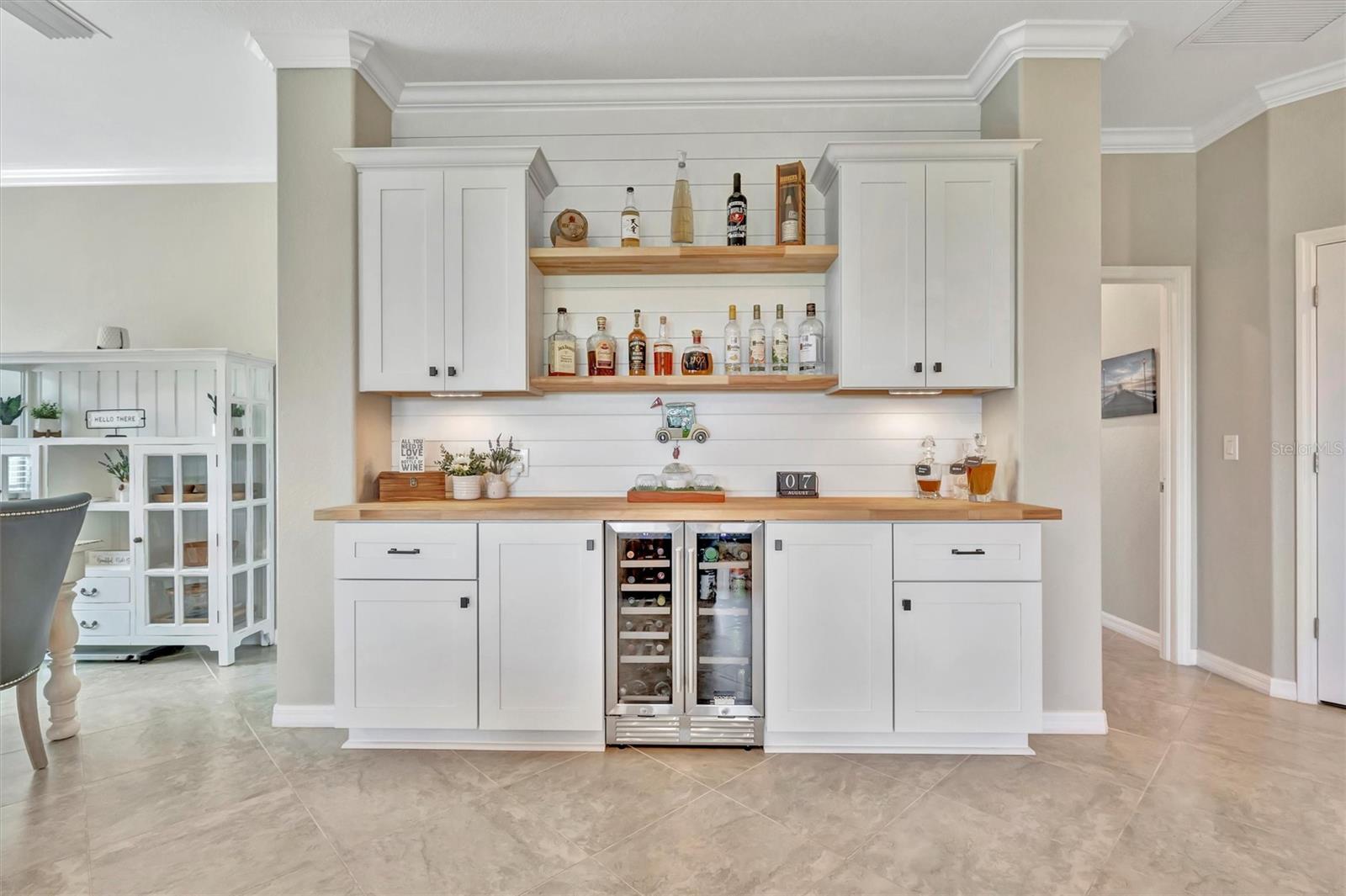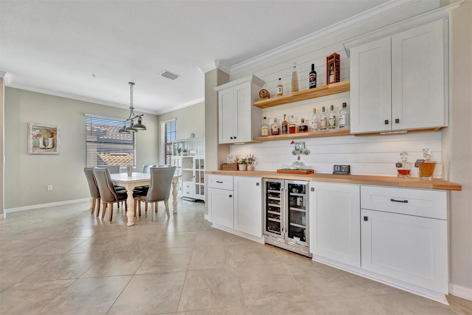 Welcome to Paradise! With 3 bedrooms, 2 baths, and a 2.5 car garage, this Lakewood National upper floor Coach Home has been thoughtfully updated with various improvements for comfort, style, and functionality. New luxury vinyl plank flooring covers the bedrooms, stairs, and landings, giving the home a fresh, modern feel. The chef-inspired kitchen boasts brand-new appliances installed within the last year, including a high-end refrigerator, a double oven with a 5-burner gas cooktop, and a sleek and quiet dishwasher, making it a culinary haven. A custom bar area with cabinets for extra storage, butcher block shelves and countertop, and a beverage cooler creates an eye catching yet functional space for entertaining. The living room includes a custom stone wall and electric fireplace, adding warmth, style, and character. Updated fixtures and fans throughout, bring a clean look to the interior, while TVs in the living room and on the lanai provide entertainment options. The screened in lanai, which provides a direct view of hole #11 Piper, is upgraded with new dark flooring and large ceiling fans, and is a comfortable place to relax outdoors. Nestled next to a preserve and pond, the property offers serene views with frequent sightings of deer and other wildlife, creating a peaceful, nature-filled backdrop. A water softener and filtration system with a lifetime warranty ensures clean water for the household. This move-in-ready townhouse blends practical upgrades with a welcoming vibe. Membership boasts access to 36 holes of golf, 24-hour gated security with nightly patrol, a state-of-the-art fitness center with 24-hour access, an onsite fitness director, a TPI certified personal trainer, a variety of group fitness classes to choose from, saunas in the men’s and women’s locker rooms, 8 lighted Har-Tru tennis courts, 4 pickleball courts, 2 Har-Tru bocce courts, full-service salon/spa, resort-style pool with waterfall features, a spa, and a lap pool. Enjoy dining at the community's two restaurants - the poolside Tiki Bar and the full-service on-site dining experience at Deke’s Grill; Palmer Room located inside the newly finished clubhouse. You will find everything you need within this beautiful, gated community.