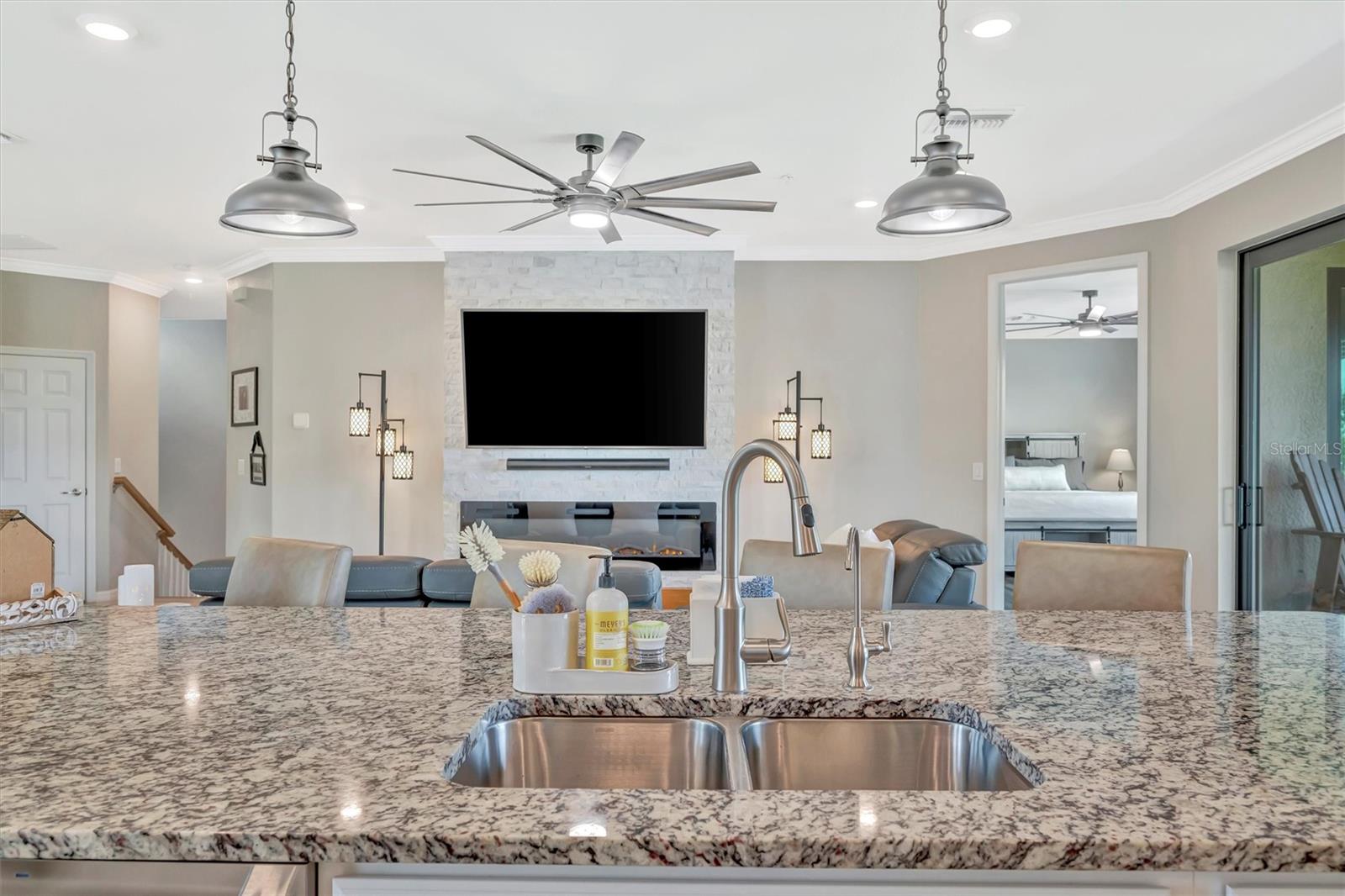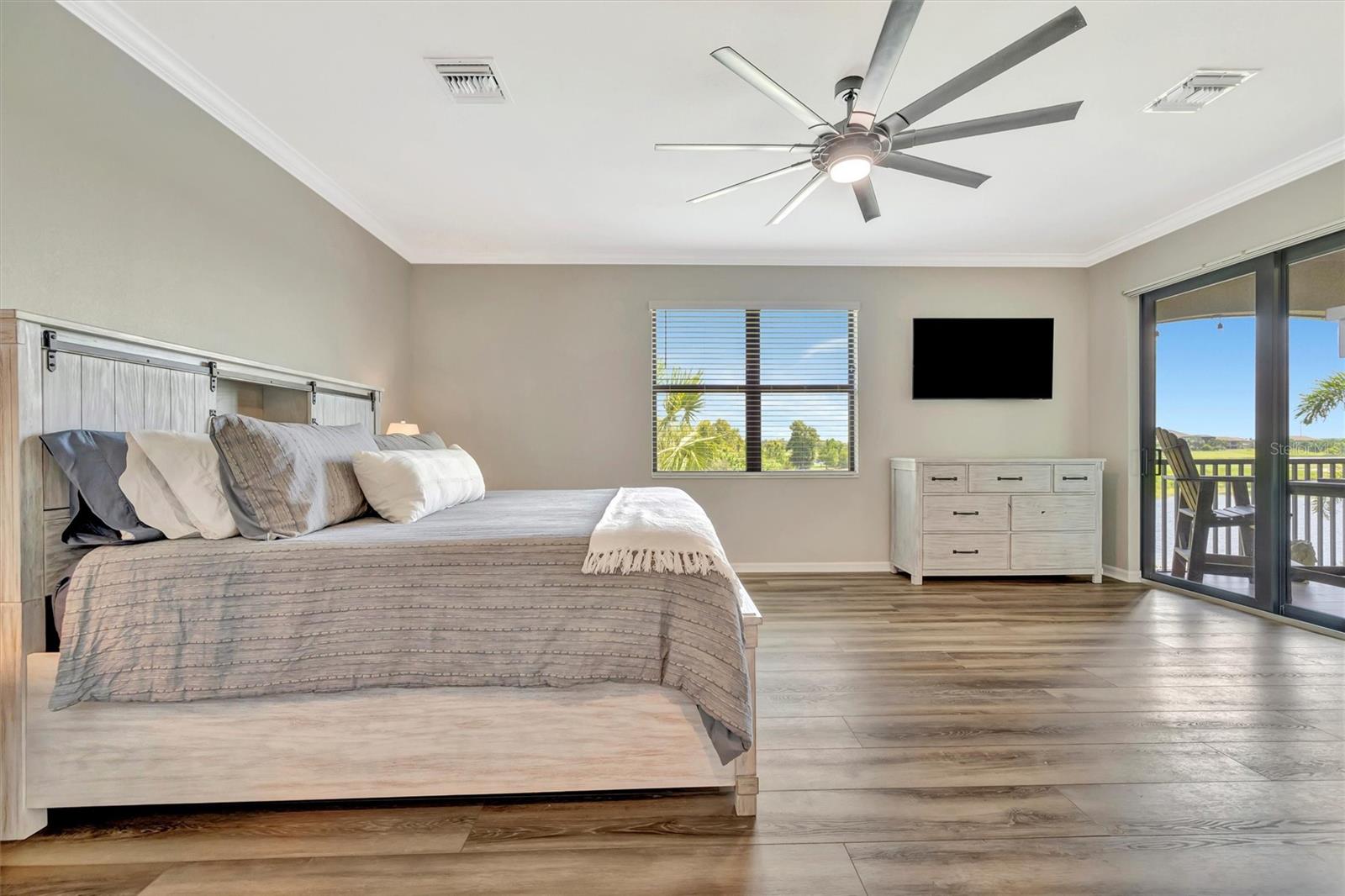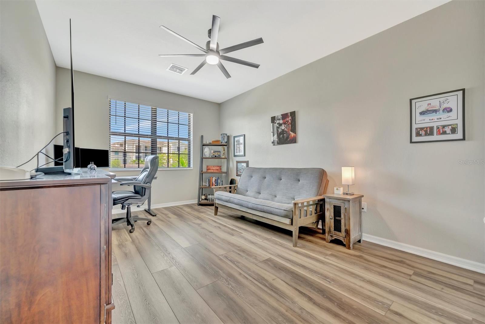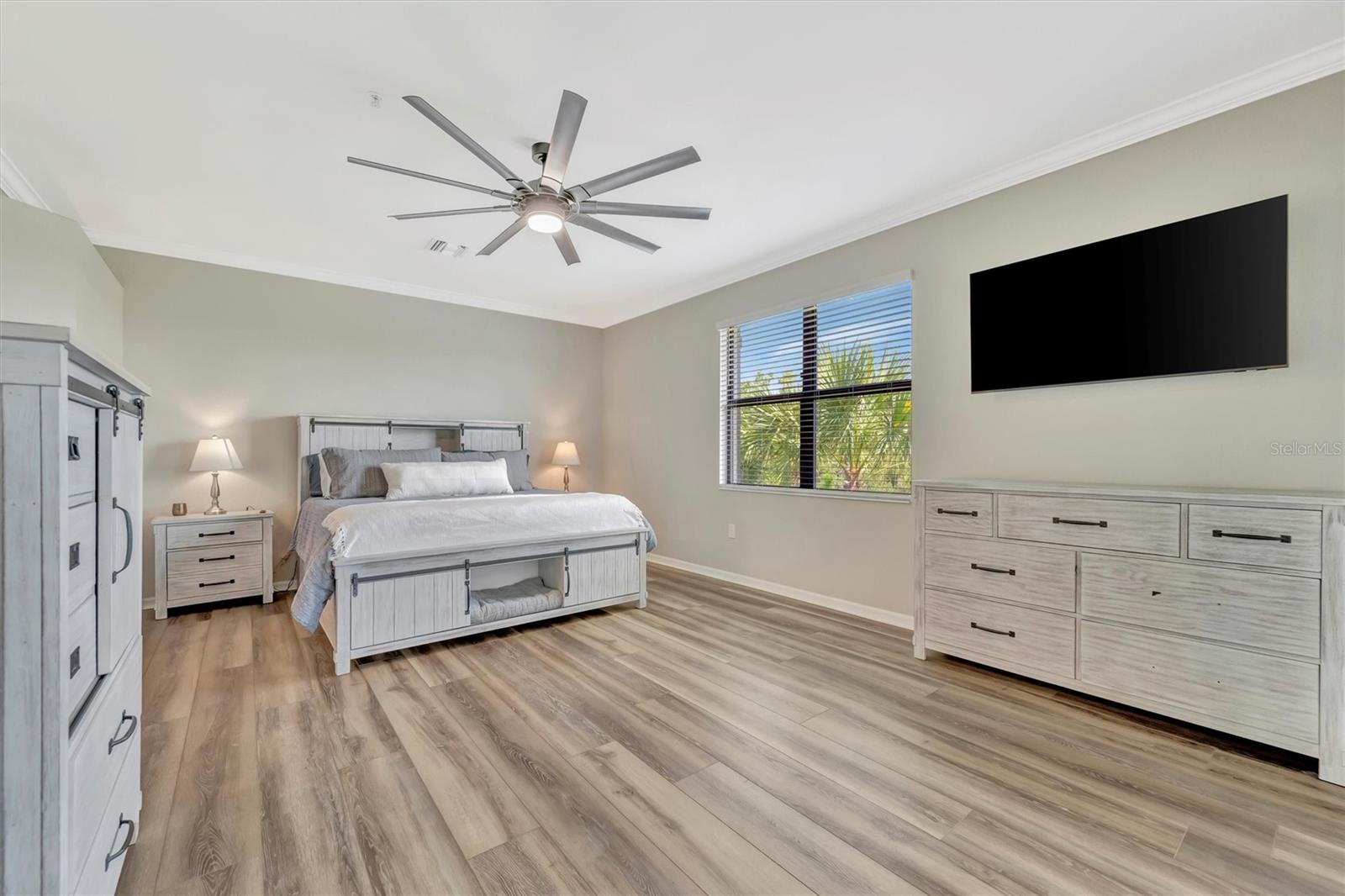 Welcome to Paradise! With 3 bedrooms, 2 baths, and a 2.5 car garage, this Lakewood National upper floor Coach Home has been thoughtfully updated with various improvements for comfort, style, and functionality. New luxury vinyl plank flooring covers the bedrooms, stairs, and landings, giving the home a fresh, modern feel. The chef-inspired kitchen boasts brand-new appliances installed within the last year, including a high-end refrigerator, a double oven with a 5-burner gas cooktop, and a sleek and quiet dishwasher, making it a culinary haven. A custom bar area with cabinets for extra storage, butcher block shelves and countertop, and a beverage cooler creates an eye catching yet functional space for entertaining. The living room includes a custom stone wall and electric fireplace, adding warmth, style, and character. Updated fixtures and fans throughout, bring a clean look to the interior, while TVs in the living room and on the lanai provide entertainment options. The screened in lanai, which provides a direct view of hole #11 Piper, is upgraded with new dark flooring and large ceiling fans, and is a comfortable place to relax outdoors. Nestled next to a preserve and pond, the property offers serene views with frequent sightings of deer and other wildlife, creating a peaceful, nature-filled backdrop. A water softener and filtration system with a lifetime warranty ensures clean water for the household. This move-in-ready townhouse blends practical upgrades with a welcoming vibe. Membership boasts access to 36 holes of golf, 24-hour gated security with nightly patrol, a state-of-the-art fitness center with 24-hour access, an onsite fitness director, a TPI certified personal trainer, a variety of group fitness classes to choose from, saunas in the men’s and women’s locker rooms, 8 lighted Har-Tru tennis courts, 4 pickleball courts, 2 Har-Tru bocce courts, full-service salon/spa, resort-style pool with waterfall features, a spa, and a lap pool. Enjoy dining at the community's two restaurants - the poolside Tiki Bar and the full-service on-site dining experience at Deke’s Grill; Palmer Room located inside the newly finished clubhouse. You will find everything you need within this beautiful, gated community.