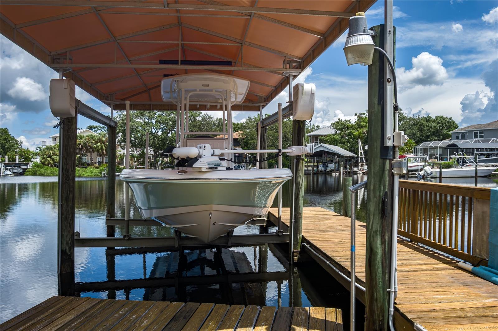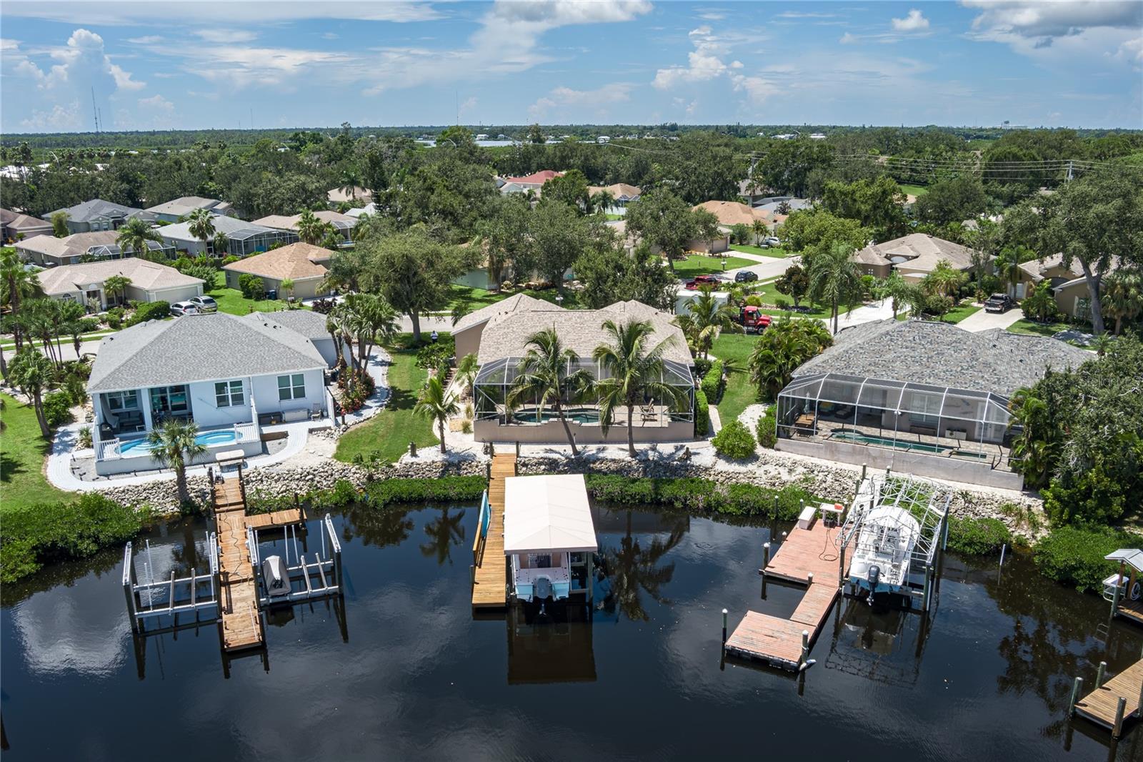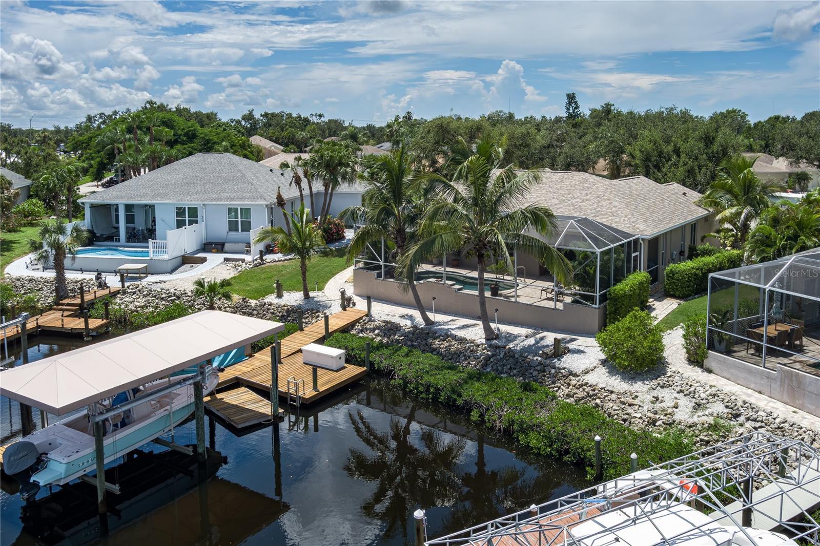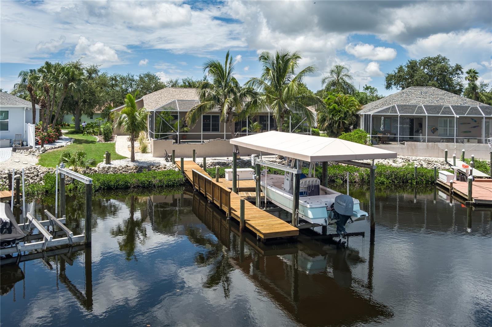 PRICE REDUCTION for this Waterfront Paradise with Direct Gulf Access. Welcome to your dream home in the sought-after River Pointe community, where boating, entertaining, and luxury living come together. The original owner's pride of ownership prevails in this beautifully updated 3-bedroom, 2-bath residence. The home sits on a wide saltwater canal at the end of a tranquil basin—offering privacy, minimal boat traffic, stunning views of dolphins dancing, manatees floating, mullet jumping, AND easy navigation to the open waters of the Manatee River, Intercoastal Waterway, and Gulf. The Seller had the boat lift installed at the end of an extension to adapt to winter low tides. With a 4' draw (mol) the Seller has had no problems getting on and off of his lift at low tide. The property is a Boater’s Dream, complete with dock, a covered lift that accommodates boats up to 28 ft and 9,000-pounds, and a floating dock. Features include a well-built and modern home. This personality plus home offers a spacious 3-car garage for vehicles and storage. Light and bright interior, high ceilings, split floor plan, new roof (2020) for peace of mind, remodeled kitchen in 2021 with wood cabinetry, quartz countertops, and new appliances. New washer December 2025. Updated bathrooms (2021 & 2025) with modern finishes, new windows installed in 2022 and 2025 for energy efficiency and natural light and window hurricane screens. YOUR Outdoor Oasis offers an inground pool with waterfall and 8 spa jets, screened lanai for year-round enjoyment, an expansive paver deck and covered entertaining area—perfect for gatherings, grilling, or relaxing poolside while enjoying the serene canal views to create a true Florida escape. River Pointe residents enjoy low HOA fees and access to a private community boat ramp. This home is the ideal blend of luxury, functionality, and waterfront lifestyle. This property is located about two miles West of I-75 via SR 64, close to Costco, Publix, Target and Walmart, entertainment downtown Bradenton, River Walk, and many fine eateries. Whether you're an avid boater, entertainer, or simply seeking a peaceful retreat with upscale finishes, this home checks every box. Schedule your private showing today and experience the best of Florida living. Possible temporary 1-0 buydown rate covered by lender. Details available.