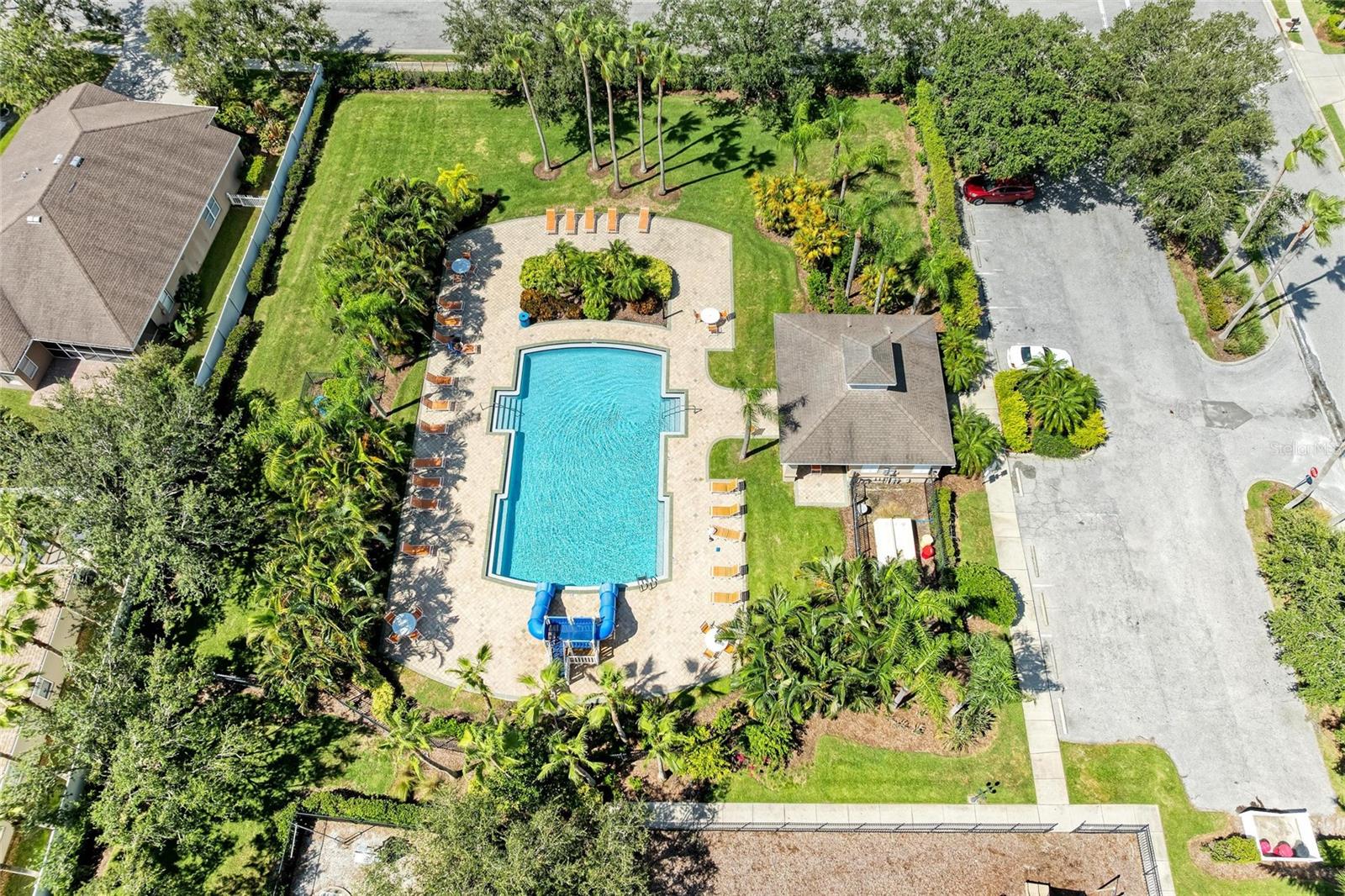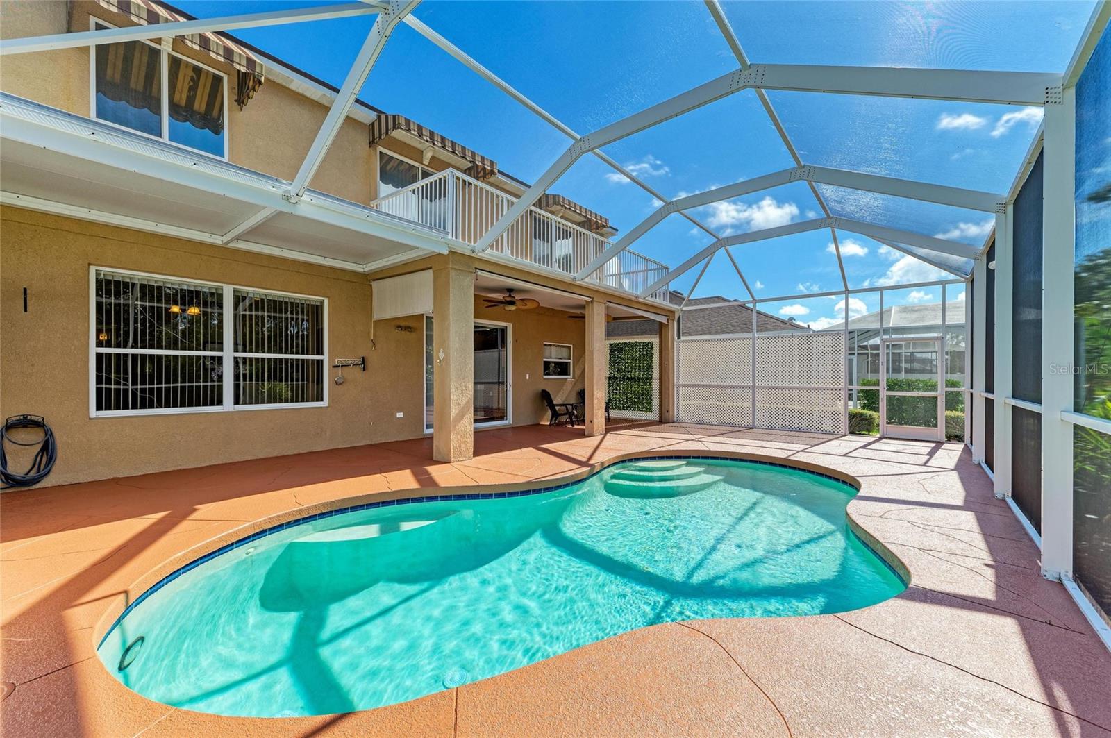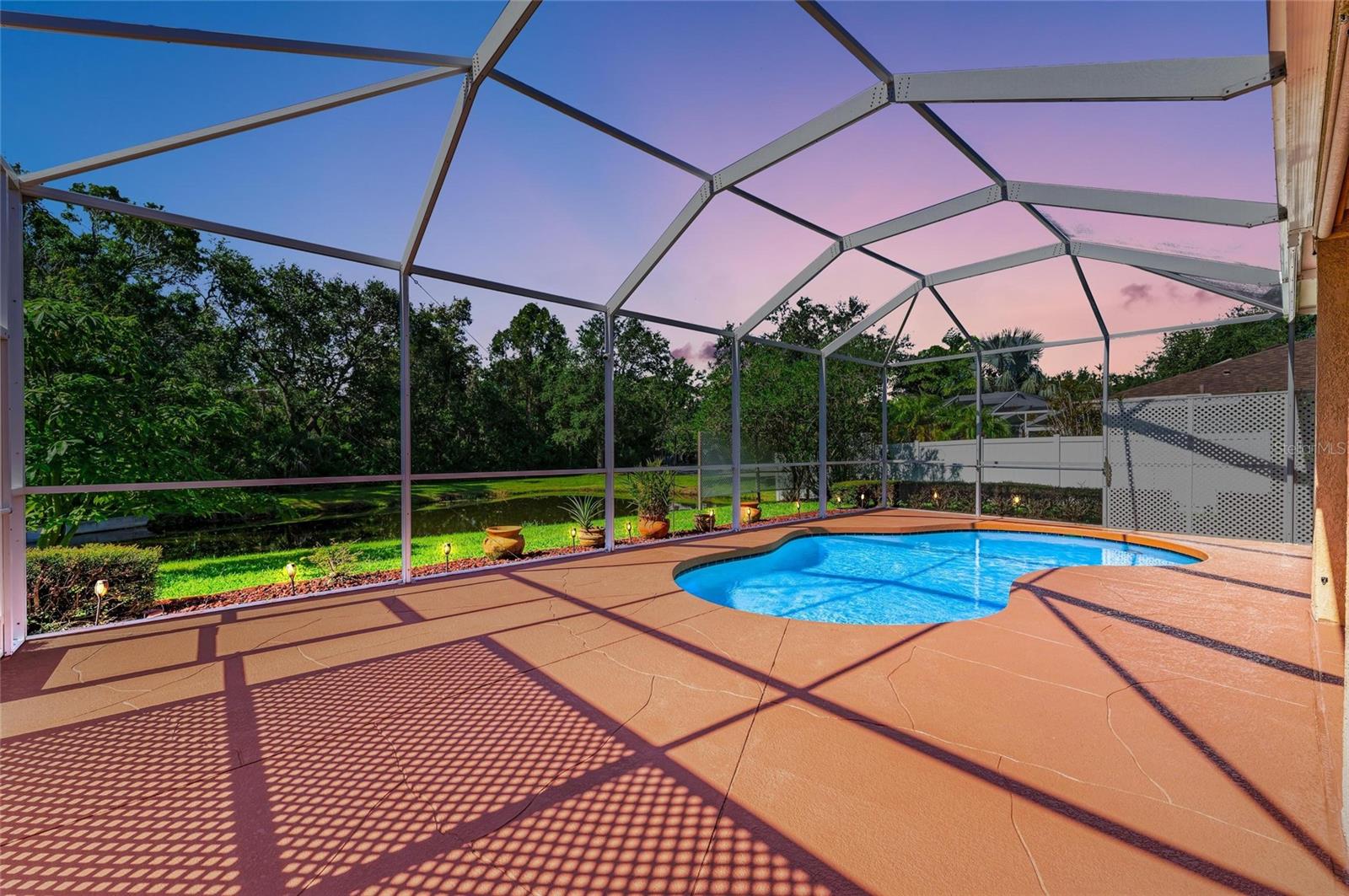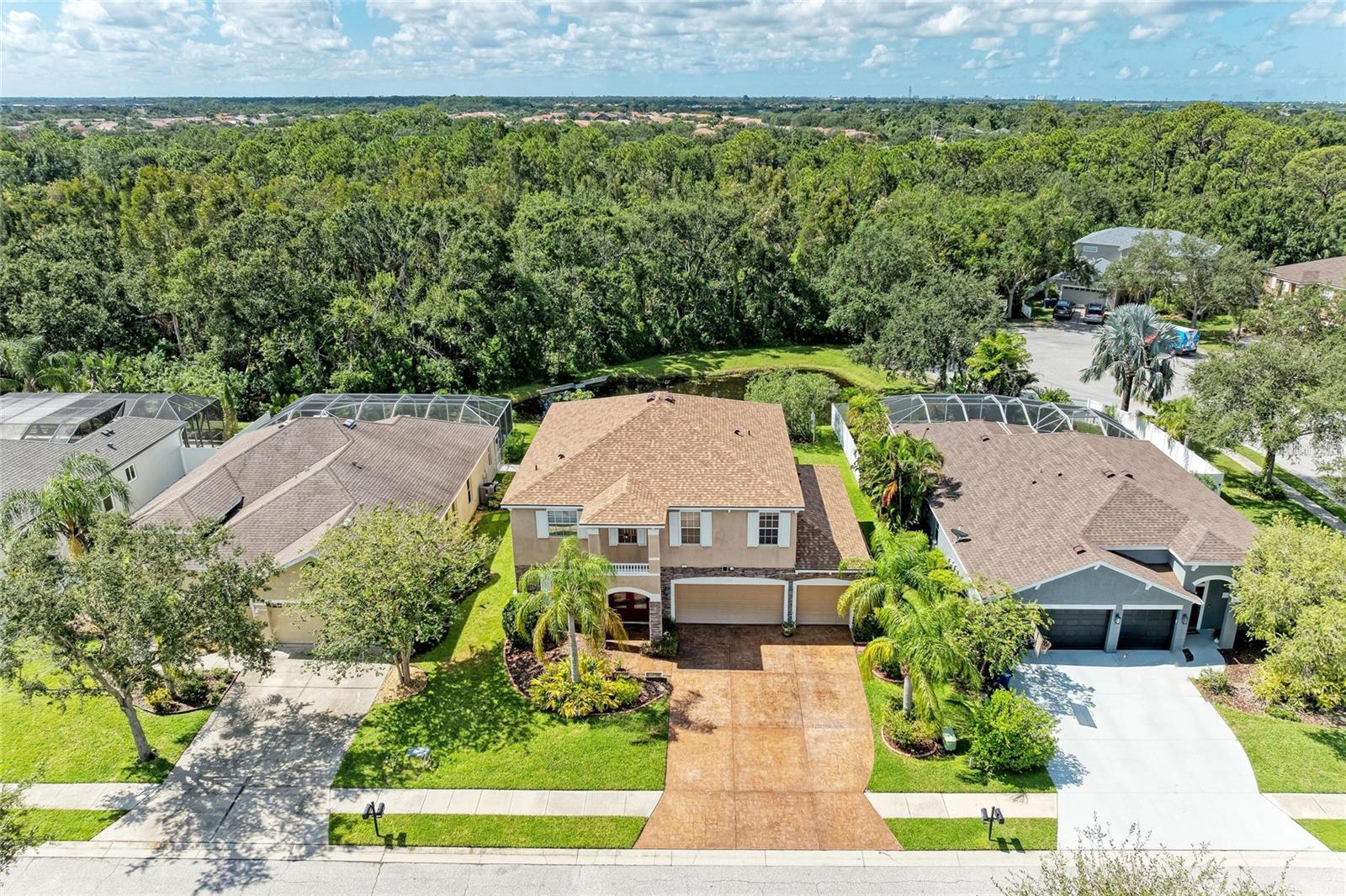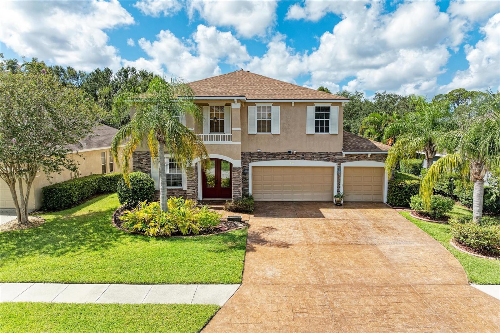 Elegant 4 to 5 Bedroom Pool Home with Pond View and No Rear Neighbors. This stylish home offers 4 bedrooms, 3.5 baths, a large private office that can serve as a 5th bedroom, and a versatile loft, balcony access with a view of the pool and backyard, and pond. The kitchen overlooks the pool and great room. Ample counter space with an additional oversized granite island and stainless-steel appliances. Kitchen has a reverse osmosis water purification system installed. The 3-car garage comes with additional storage shelving. Floorplan appeal for a multi-generation family with two bedrooms en-suites. Each en-suite has a walk-in in closet, and easily accommodates King beds in each. The primary suite features a walk-in shower with a garden tub and a closed water closet. The secondary suite features a walk-in shower in its en-suite bathroom. Expanded covered patio space next to the pool, perfect for entertaining and enjoying more of your outdoor space. Newer roof, and AC system. Recent stamped concrete driveway is as beautiful as pavers without the need to pull/spray to maintain the weeds and repack. Pool has been resurfaced. Pool deck recently resurfaced & painted. Full Irrigation system. Amenities include a large community pool with dual slides for the little ones, a Cabana with pool restrooms, and a completely fenced-in playground with a jungle gym. One of the LOWEST HOA fees you can find without losing out on community Amenities. Located in the desired area between University Parkway and SR70, you have more shopping and restaurant options than you are ready for. Multiple Gulf beaches are nearby. Amenities include a large community pool with dual slides for the little ones, a Cabana with pool restrooms, and a completely fenced-in playground with a jungle gym. One of the LOWEST HOA fees you can find without losing out on community Amenities. Located in the desired area between University Parkway and SR70, you have more shopping and restaurant options than you are ready for. Multiple Gulf beaches are nearby. Doll house and 3D Virtual Tour available.