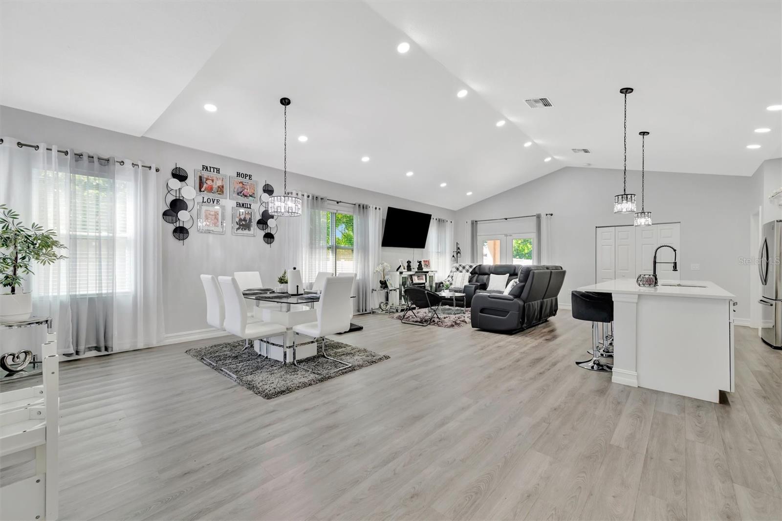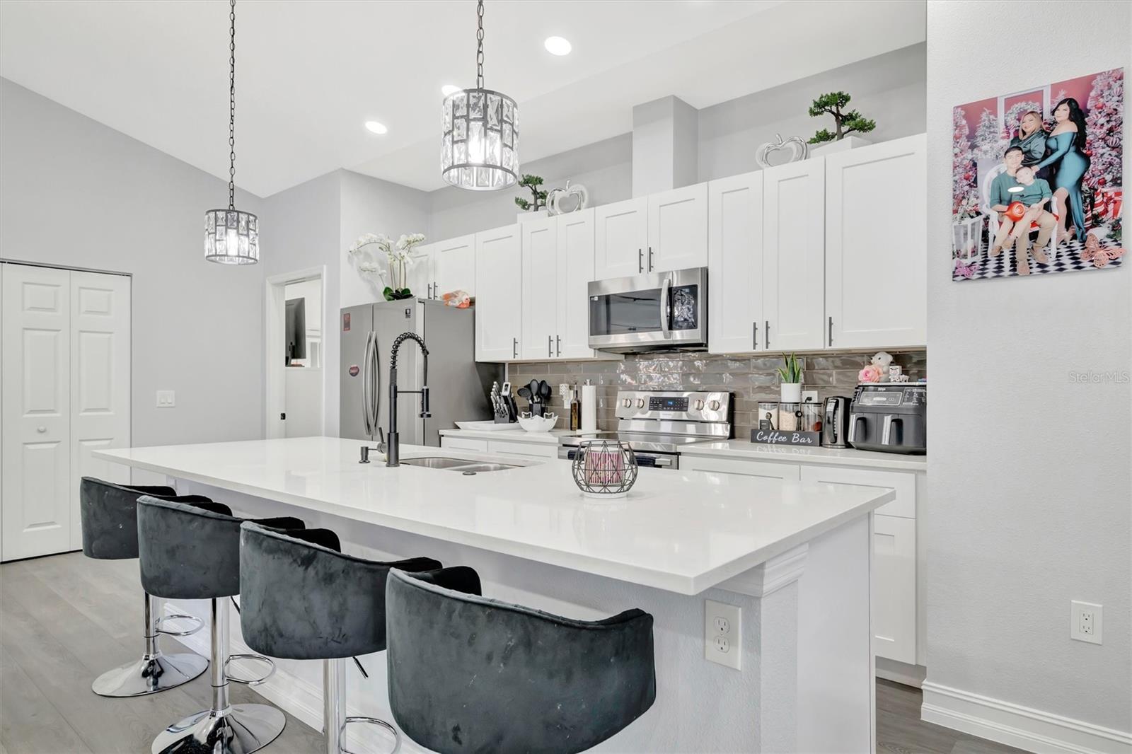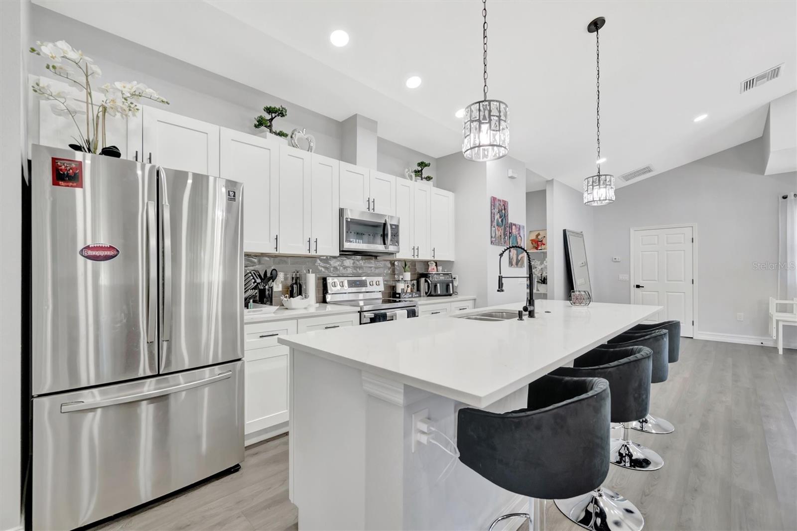 Beautiful concrete Like-New 2021 construction home in Bayshore Gardens, Fl. Just a half mile from the water of Sarasota Bay. Showing a great Open Floorplan, the modern kitchen boasts sleek quarts countertops over classic shaker cabinets, a huge kitchen island with sink, and stainless steel appliances. Luxury vinyl plank floors throughout the home are complemented by the recessed lighting with ceiling fans in the kitchen. The exterior front of the home features plenty of driveway space leading up to the oversized 2 car garage. Don't miss back yard with its wonderful space to entertain under the covered patio or grill out in the open paver stone patio area. With all these fantastic features in this safe, Construction property, it experienced NO storm damage! Possible Rent to Own.
