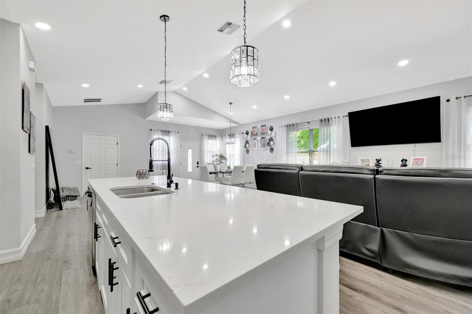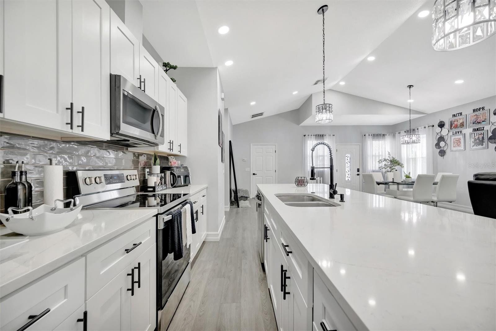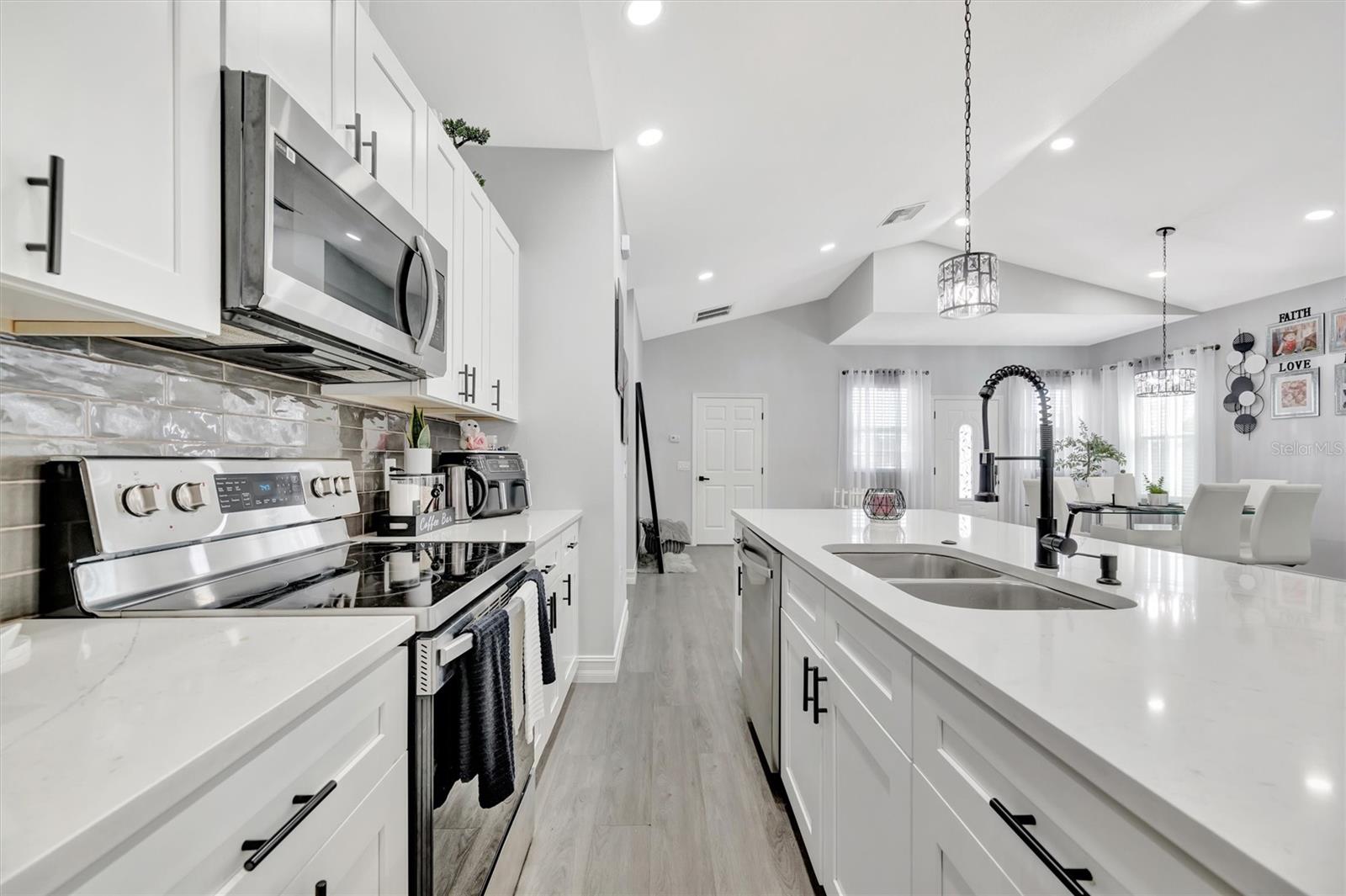 Beautiful concrete Like-New 2021 construction home in Bayshore Gardens, Fl. Just a half mile from the water of Sarasota Bay. Showing a great Open Floorplan, the modern kitchen boasts sleek quarts countertops over classic shaker cabinets, a huge kitchen island with sink, and stainless steel appliances. Luxury vinyl plank floors throughout the home are complemented by the recessed lighting with ceiling fans in the kitchen. The exterior front of the home features plenty of driveway space leading up to the oversized 2 car garage. Don't miss back yard with its wonderful space to entertain under the covered patio or grill out in the open paver stone patio area. With all these fantastic features in this safe, Construction property, it experienced NO storm damage! Possible Rent to Own.