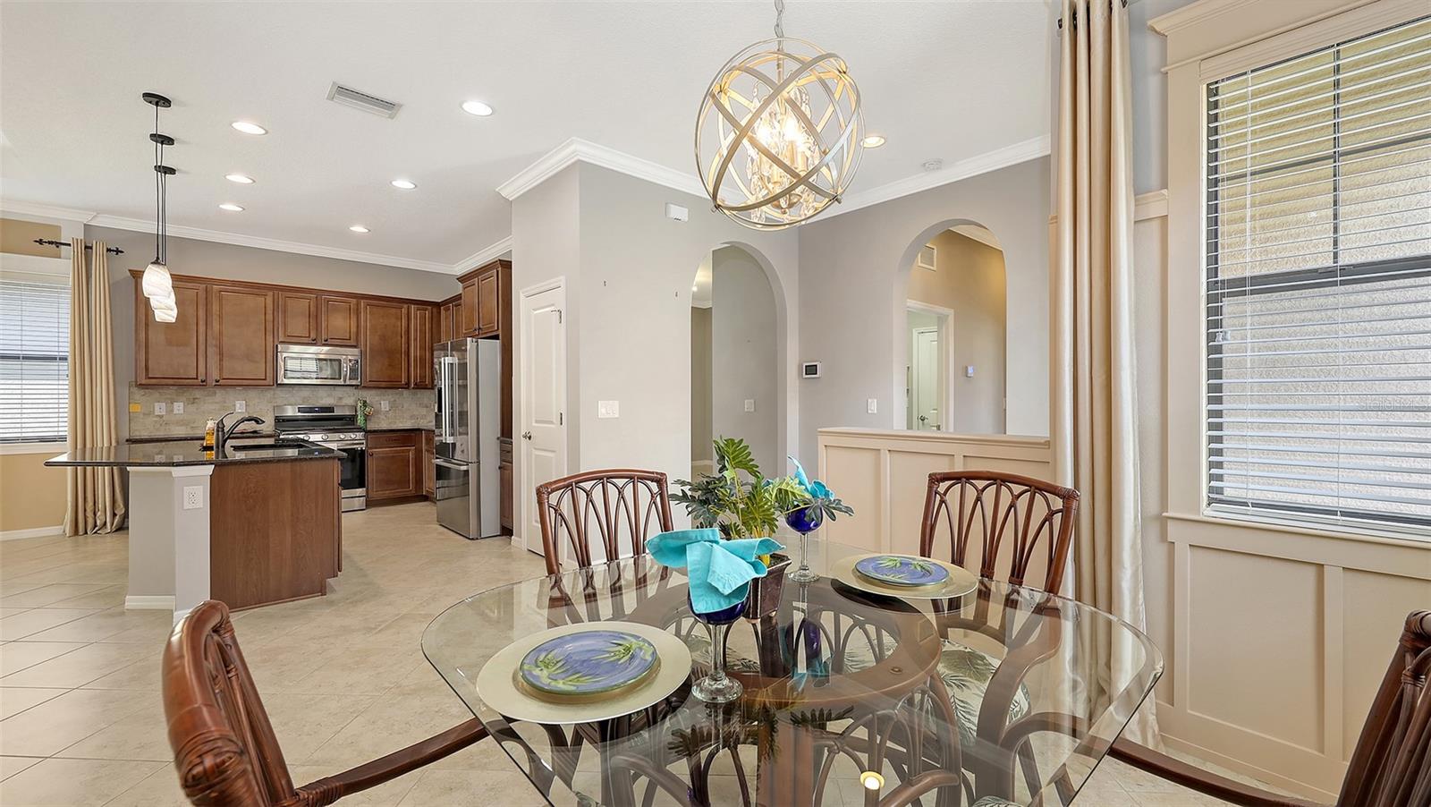 Welcome to the beautiful Rosedale Golf and Country Club community which is the epitome of the Florida lifestyle! This immaculate 2 bedroom, 2 bathroom plus den single family home is waiting for you. With over 1500 square feet of living space it would work well as a winter retreat to escape the northern winters or is large enough to be used as a full time residence. As you pull up to the home you will be impressed with the paver brick drive and tropical landscaping which provides instant curb appeal. Another unique feature of this home is it's side entry making it stand out from other homes. Built in 2016 it offers all the modern appointments you would expect. The kitchen is a prime example with it's 42 inch wood cabinetry, stainless steel appliances, granite counters, designer lighting and a pantry to top it off. The oversized island makes cooking a dream while offering space for a breakfast bar for those quick and easy meals. Attractive ceramic tile is found in all the right places while the bedrooms are carpeted. Tastefully decorated throughout with freshly painted designer colors, crown molding, tray ceilings and don't forget to check out the intriguing wood wall accents in the dining area and primary bedroom. All the windows except the sliders have been framed in white trim with a crown on top which you will find appealing. They also have made to measure white blinds with stunning floor to ceiling drapery treatments! The living room doors lead you outdoors to an oasis of tranquility with an expanded lanai complete with paver bricks overlooking a serene conservation area. The lanai offers both covered and uncovered areas to enjoy outdoor living. Don't worry about mowing the lawn as the association looks after lawn care for a reasonable fee. For the pet lovers Rosedale offers 2 dog parks! For the golfer Rosedale has an 18 hole golf course with all different membership levels although not mandatory for owners. Social membership is mandatory but boasts many prime amenities including a clubhouse, restaurant, tennis courts, and a state of the art fitness center and yoga room. And all of the social activities you could ask for. It also has a heated Junior Olympic pool and as a bonus a pool table & poker room! The community has 2 -24 hour guard gates which enhances security but allows for easy access. Rosedale is strategically located just east of I-75 but before you get to he hustle and bustle of Lakewood Ranch. The I-75 corridor takes you easily and a quickly to many fine local attractions. Some of which include world renown beaches, world class arts and performing arts venues in downtown Sarasota and Bradenton as well as first class restaurants and shopping. All right here in your backyard, no need to go to Tampa! All in all a great opportunity awaits you. Take advantage now!