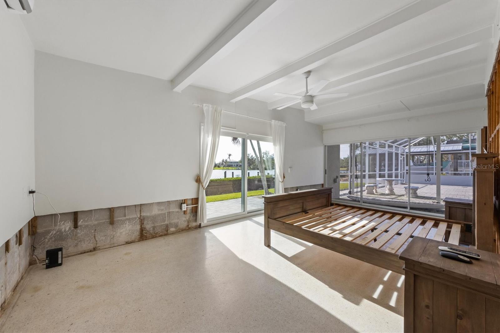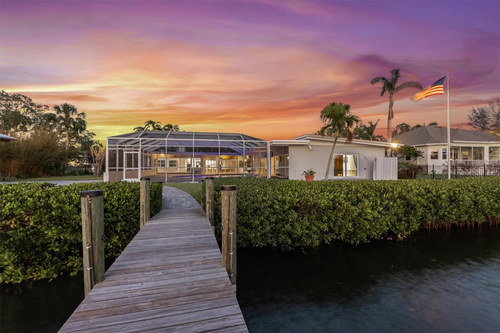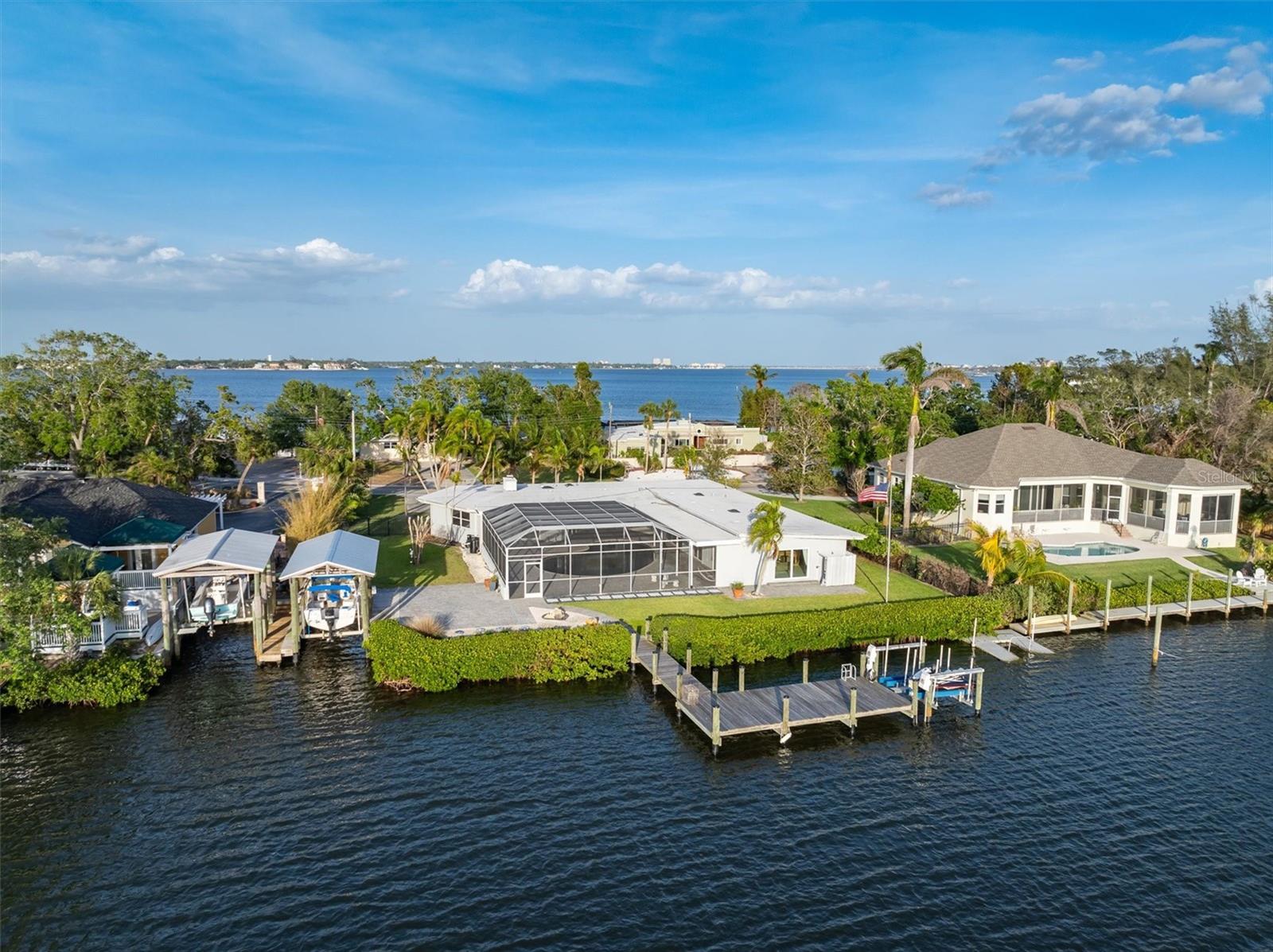 Step into this stunning midcentury modern residence, ideally positioned along the sought-after Riverview Boulevard. Offering 125 feet of waterfront views on Warner’s Bayou West, this unique property blends timeless design with serene natural beauty. Inside, the spacious 4-bedroom, 4-bathroom home showcases classic midcentury architecture in a striking courtyard-style layout. Clean lines, an airy open-concept interior, and a seamless integration of indoor and outdoor spaces create an inviting atmosphere. Perfect for entertaining, the home features 75 feet of sliding glass doors that flood the interior with natural light and frame uninterrupted bayou views. Step out onto the expansive covered lanai, where you’ll find a large saltwater pool, outdoor shower, outdoor grill, and multiple seating areas, ideal for gatherings large or small, all set against a backdrop of sunsets. Outdoor living continues with a boathouse and boat lift on the north side of the property, as well as a private dock with two jet ski lifts, perfect for boating enthusiasts or anyone who loves waterfront living. Impacted by Hurricane Helene in 2024, the home was promptly and professionally remediated and is ready for its next chapter. Whether you’re restoring its midcentury charm or envisioning a fresh start, this property presents a rare opportunity to create your dream home. Don’t miss your chance to own a piece of Riverview Boulevard, where location, land, and lifestyle come together in one exceptional offering.