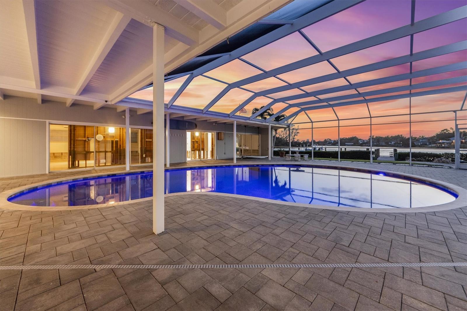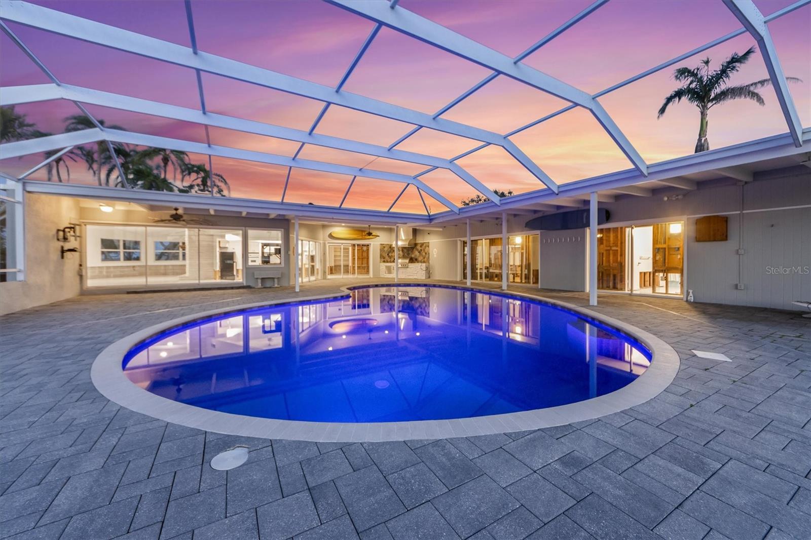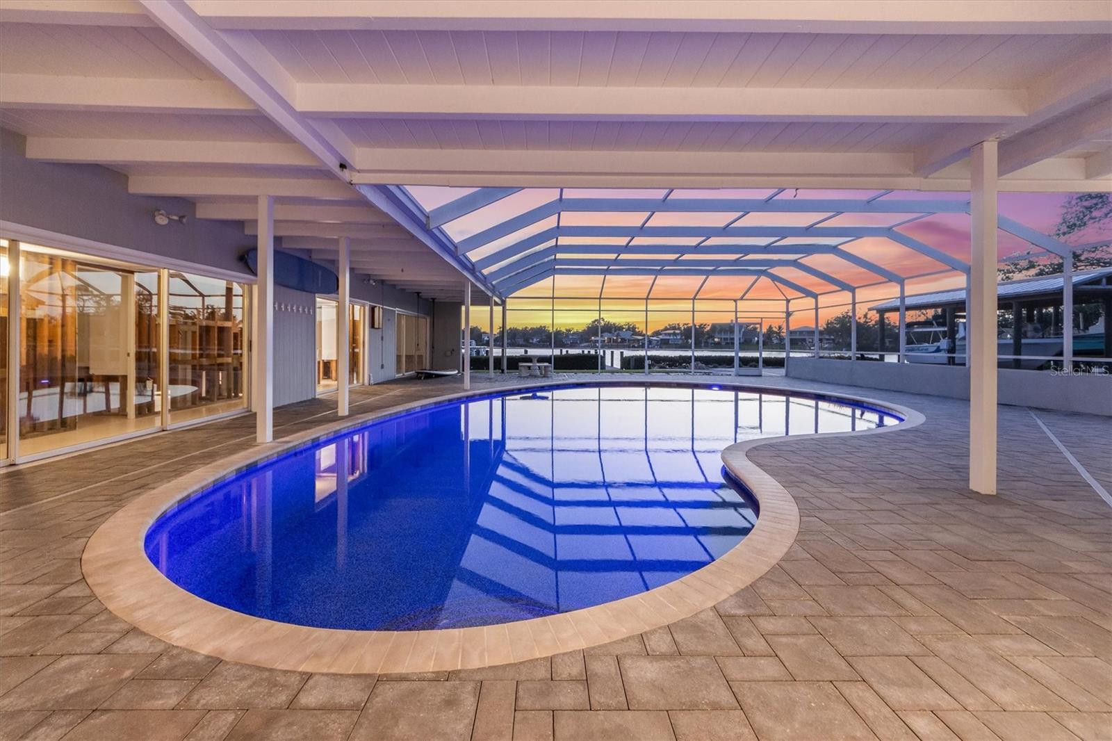 Step into this stunning midcentury modern residence, ideally positioned along the sought-after Riverview Boulevard. Offering 125 feet of waterfront views on Warner’s Bayou West, this unique property blends timeless design with serene natural beauty. Inside, the spacious 4-bedroom, 4-bathroom home showcases classic midcentury architecture in a striking courtyard-style layout. Clean lines, an airy open-concept interior, and a seamless integration of indoor and outdoor spaces create an inviting atmosphere. Perfect for entertaining, the home features 75 feet of sliding glass doors that flood the interior with natural light and frame uninterrupted bayou views. Step out onto the expansive covered lanai, where you’ll find a large saltwater pool, outdoor shower, outdoor grill, and multiple seating areas, ideal for gatherings large or small, all set against a backdrop of sunsets. Outdoor living continues with a boathouse and boat lift on the north side of the property, as well as a private dock with two jet ski lifts, perfect for boating enthusiasts or anyone who loves waterfront living. Impacted by Hurricane Helene in 2024, the home was promptly and professionally remediated and is ready for its next chapter. Whether you’re restoring its midcentury charm or envisioning a fresh start, this property presents a rare opportunity to create your dream home. Don’t miss your chance to own a piece of Riverview Boulevard, where location, land, and lifestyle come together in one exceptional offering.