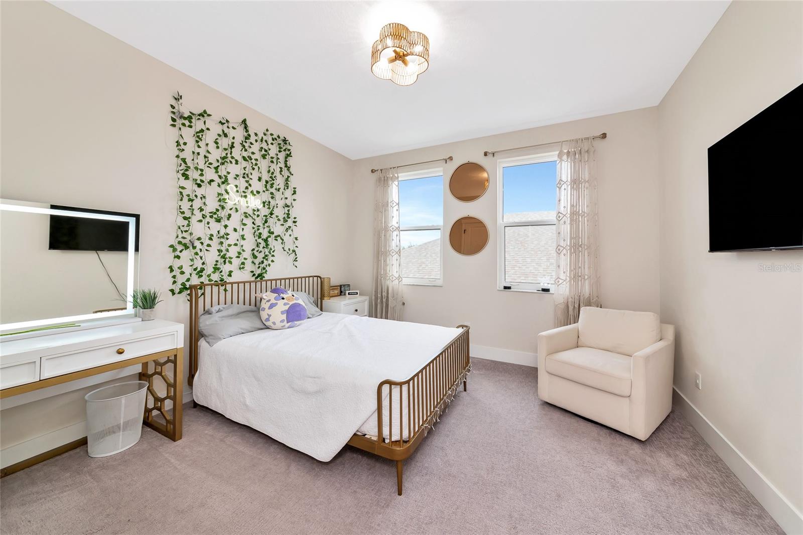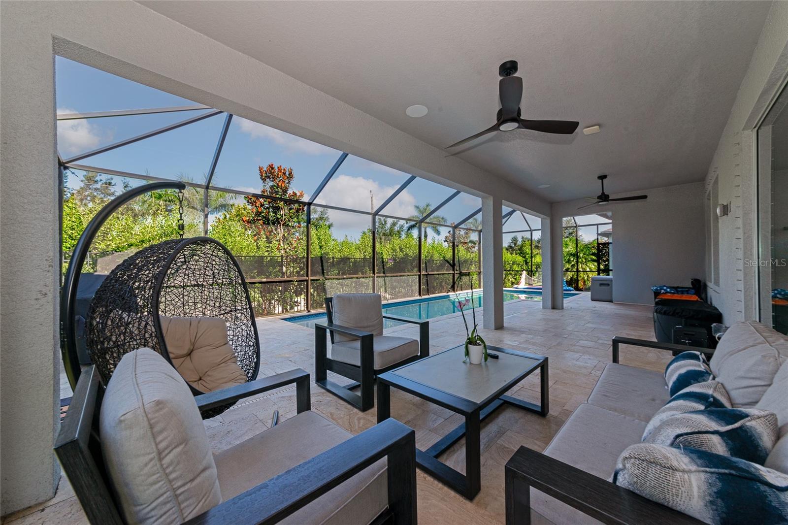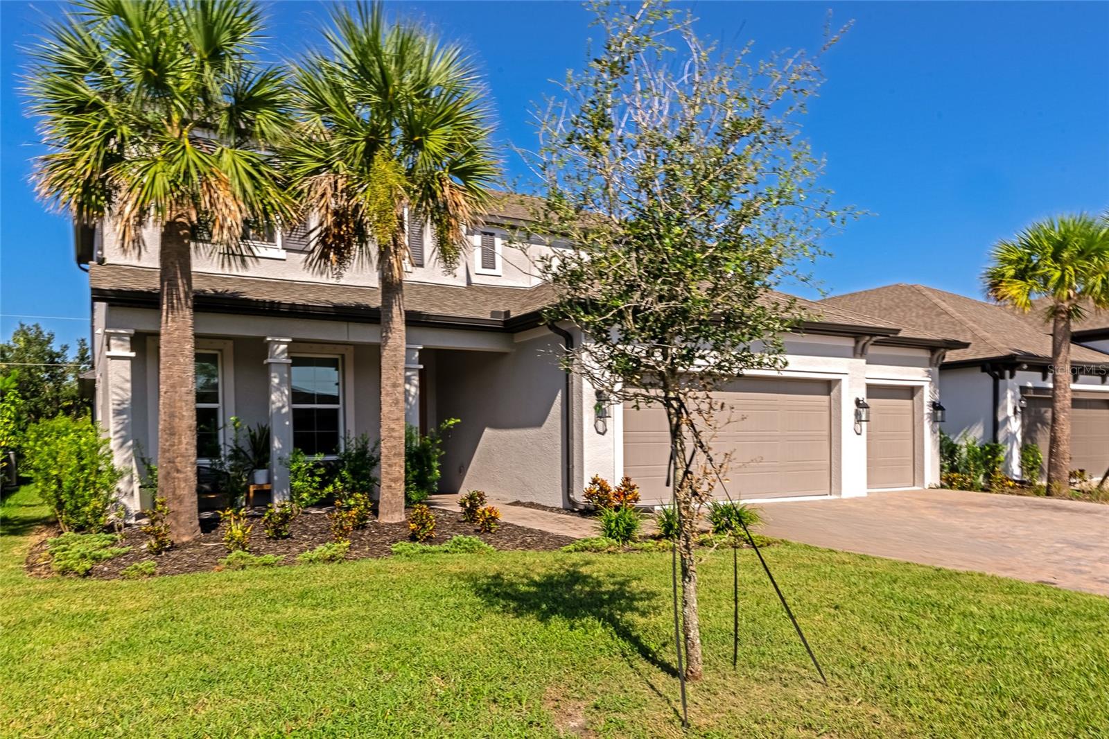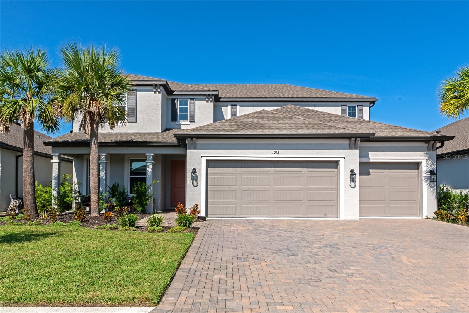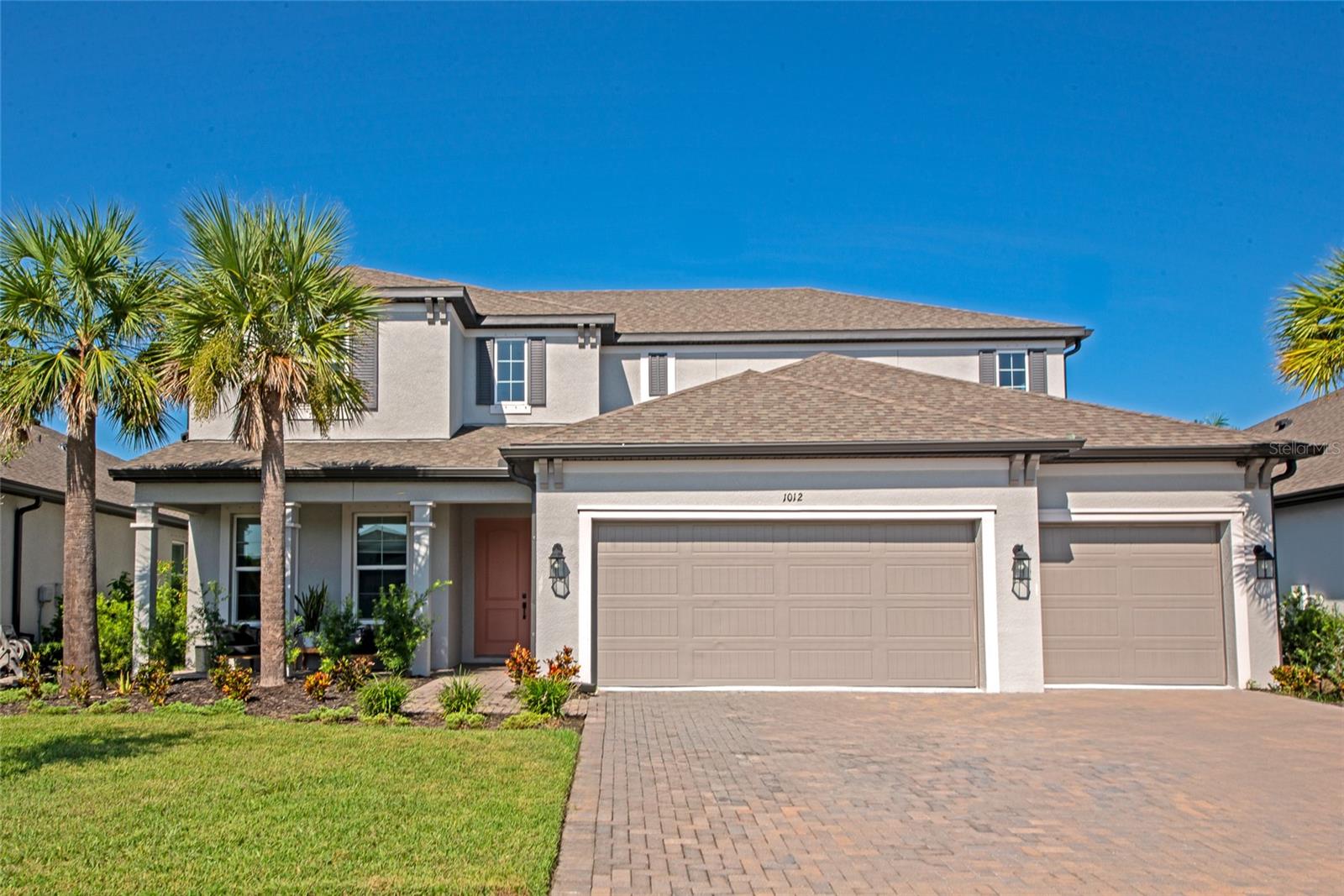 Why wait to build when you can own this spacious, nearly-new pool home in the gated Riverside Preserve community? Designed for comfort and versatility, this home offers ample space for everyone to find their own retreat. The primary bedroom conveniently resides on the first floor, complemented by an additional guest room perfect for visitors. Upstairs, you'll find a large bonus room and three generously sized bedrooms, providing plenty of room for family and guests. The chef’s kitchen is sure to impress, featuring stainless steel appliances, quartz countertops, wood cabinets, and a stunning farmhouse-style sink. The primary suite boasts a spa-like bathroom with a garden tub, separate shower, dual sinks, and an enormous walk-in closet. With neutral tones and impeccable condition, this home combines modern elegance with the convenience of move-in readiness—avoiding the hassle of building. Step outside to your private backyard oasis, where a sparkling pool with a travertine-style deck creates the perfect setting for entertaining guests or relaxing with family. Additionally, the seller has an assumable VA loan at 5.1% interest, with an approximate balance of $580,000, available to qualified borrowers. This loan does not require VA eligibility, offering an excellent financing opportunity at a great low rate. Located in the rapidly growing east Manatee area, Riverside Preserve offers easy access to I-75, shopping, and top-rated schools—making it an ideal place to call home. The community is not in a flood zone and features a waterfront clubhouse, kayak launch onto the Manatee River, and scenic views. Don’t miss out—view the 3D virtual tour and add this exceptional home to your short list today