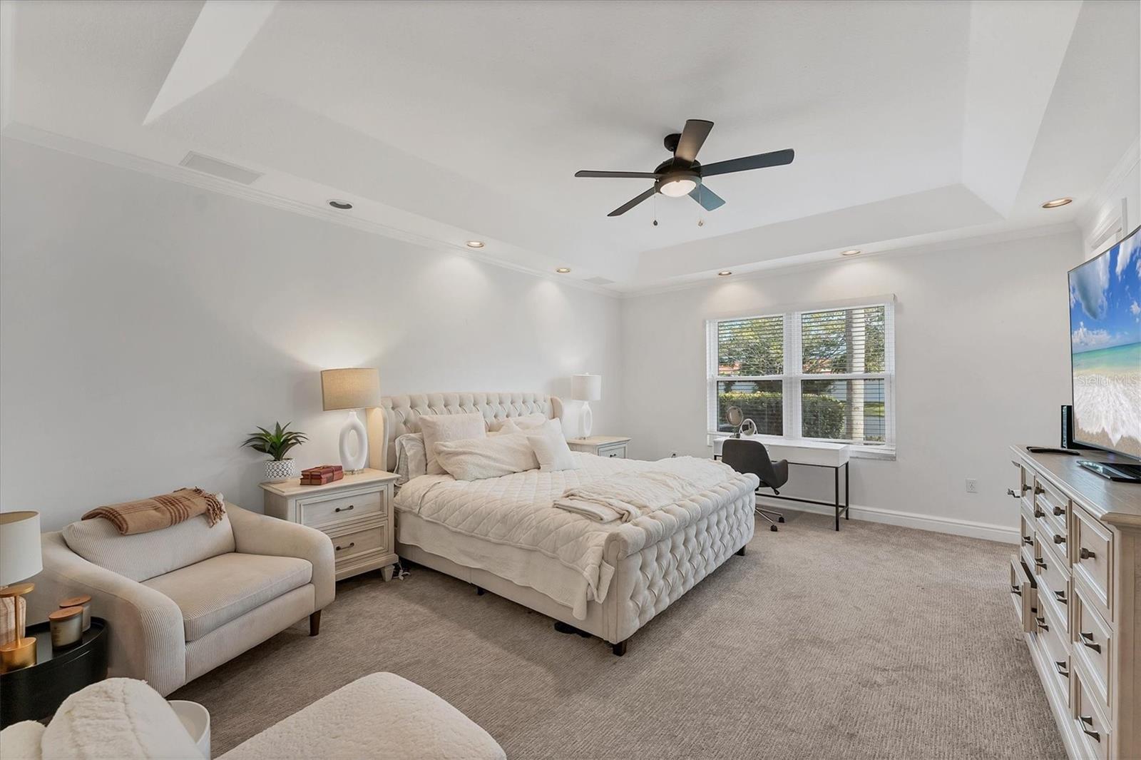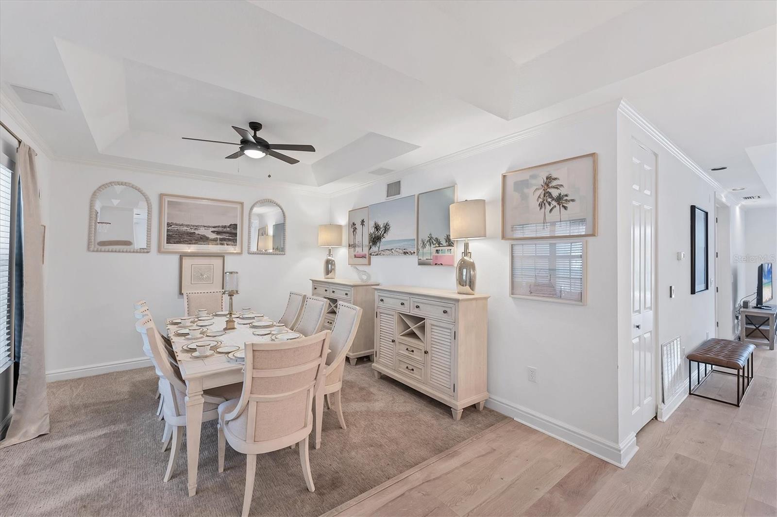 Gorgeous! Luxuriously FURNISHED 3 bedroom, 3 Full bathroom LAKESIDE villa with huge back patio and amazing interior natural light! Kitchen offers stainless steel appliances, subway tile backsplash, Quartz countertops, blonde wood cabinets, farmhouse large sink, pantry closet, and eat-in space. Interior features include wood-look luxury vinyl flooring, custom shelving in all bedroom closets, updated bathrooms, Florida Room with dining area + seating area + desk area. The seller has the flex space shown as a dining room, but new owner can transform it into a 4th bedroom, home office, home gym, etc. Owners enjoy access to heated pool and hot tub, fitness room, 1 month minimum rental policy, and close proximity to IMG Academy facilities. Dont wait to see this one!