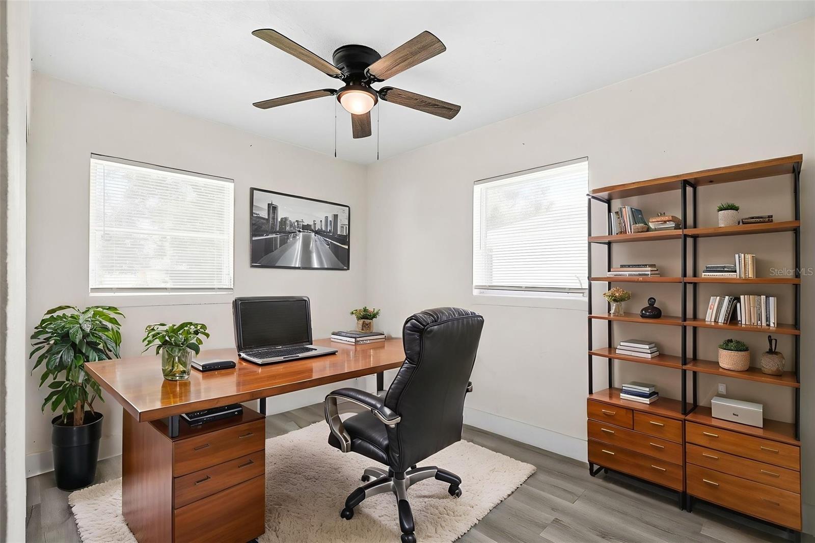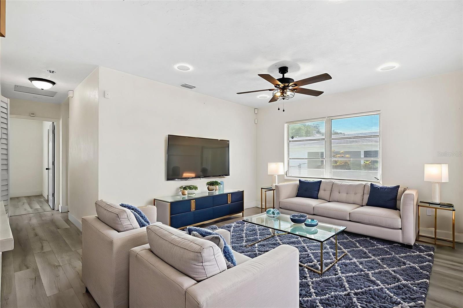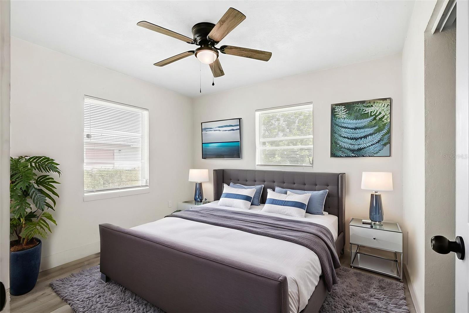 One or more photo(s) has been virtually staged. Welcome to this beautifully maintained 3-bedroom, 1-bath home nestled in the heart of Bradenton. Inside, you’ll find stylish vinyl flooring throughout, a modern kitchen with quartz countertops, tile backsplash, and stainless steel appliances, plus plenty of natural light in every room. The home also offers a dedicated utility room with washer and dryer for added convenience. Step outside to a fully fenced yard perfect for pets, and family gatherings. With no HOA or deed restrictions,. Major updates include a newer A/C, a 2017 roof, and a newer water heater, giving you peace of mind for years to come.