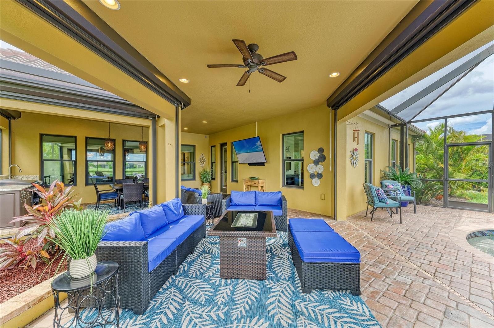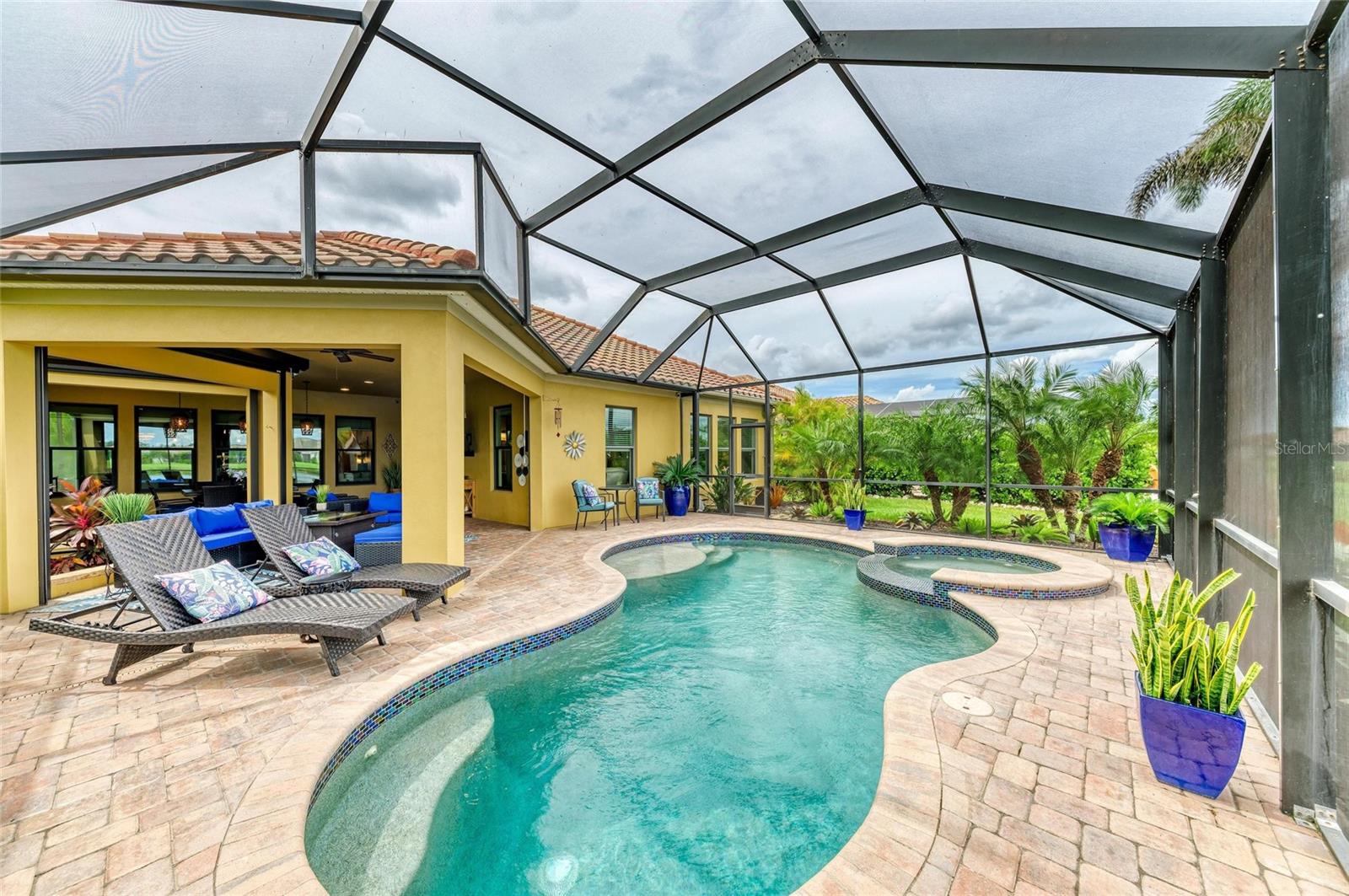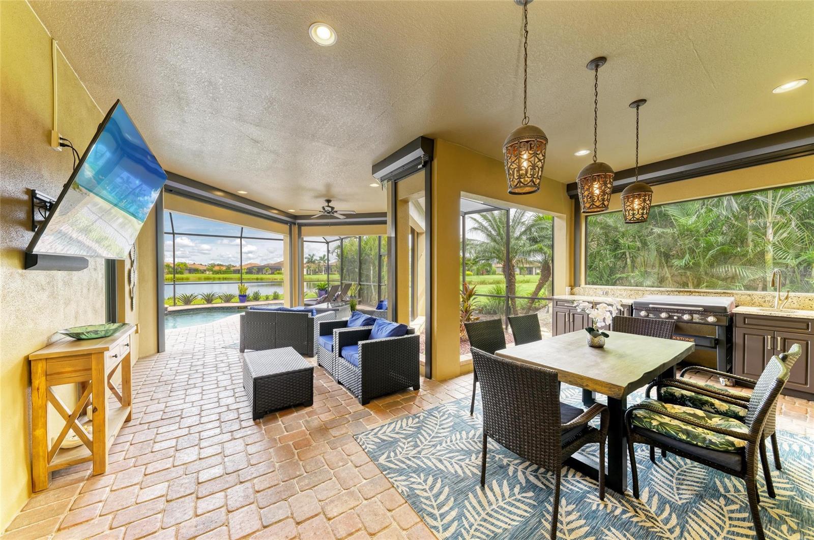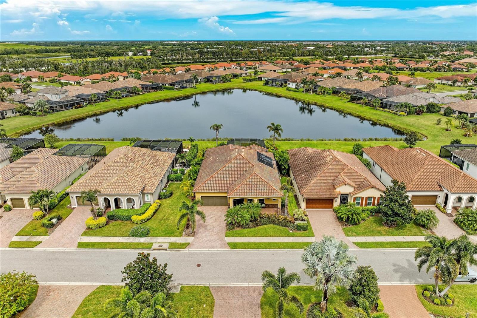 Stunning Siesta floor plan loaded with upgrades that would cost thousands more to build new! This 3BR, 2.5BA home with den features impact-resistant windows & doors—no bulky hurricane shutters needed. The spacious great room design is enhanced by custom featured stone wall with built-in cabinetry and fireplace, wood-look tile flooring, coffered ceilings, and crown molding throughout. The chef’s kitchen boasts an expanded island, expresso stained wood cabinetry, granite counters, backsplash, walk-in pantry, stainless appliances, wall ovens, and gas cooktop. Enjoy Florida outdoor living at its best with a solar heated saltwater pool & spa overlooking expansive lake views and outdoor kitchen with blackstone grill, sink, refrigerator, and polymer cabinetry. An added bonus, this homeowner installed electronic hurricane shades about the complete covered lanai area. The oversized primary suite offers a relaxing retreat with a free-standing soaking tub, Roman shower, and HUGE walk-in closet. Guests enjoy privacy with 2 additional bedrooms with convenience of a Jack & Jill bath, while the den makes a perfect home office or flex space. The laundry room provides excellent storage, and the enlarged garage features a 4’ extension plus durable epoxy flooring. Meticulously maintained with upgraded landscaping, lighting, an inviting paver front porch, screened front entry, expanded driveway gives this A+ curb appeal. A perfect home for those who value low-maintenance living, convenience, and a touch of luxury. Whether you're seeking an active or a more relaxed environment, Rosedale has something to offer each member with this community. With the social membership to the Rosedale Golf & Country Club, you can enjoy amenities of tennis, bocce courts, 22,000 square foot clubhouse with a heated junior-size Olympic swimming pool, fitness center and daily workout classes and access to personal trainers. The Clubhouse features a full-service restaurant that hosts numerous social events and activities throughout the year. For the avid golfer, Rosedale Golf and Country Club offers various levels of golf membership as well. HOA fees conveniently include cable & internet, yard care maintenance, 2-24/7 manned gates, and 2 dog parks. A meticulously maintained community conveniently located just east of I-75 off SR-70 - centrally located to restaurants, UTC mall, the Sarasota/Bradenton airport, great schools, convenient to top Doctors and Hospitals, and some of the best beaches in the country! No CDD fees! Schedule your tour of this home today