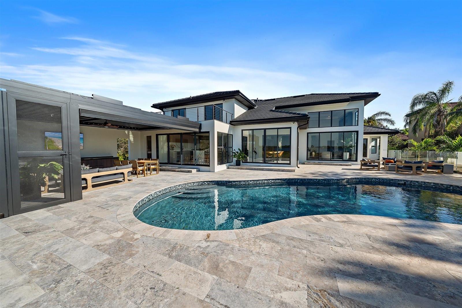 Ultra-Luxury Modern Waterfront Estate in Florida Step into a world of unparalleled luxury and serenity with this exquisitely reimagined waterfront estate, set on over 1.2 private acres. Designed by an internationally acclaimed architect, this masterpiece blends contemporary elegance with cutting-edge innovation, offering breathtaking water views and total privacy—with no neighbors to the east for over four miles. A grand 200+ foot circular driveway, newly paved and enveloped in $500,000 of lush landscaping and exterior upgrades, welcomes you to this hidden retreat. Hurricane-impact windows and a newly refinished concrete roof ensure both security and sleek modern aesthetics. House is very protected from hurricanes by the mangroves. During the last storms the house did not flood due to how the house is situated on the water. A Resort-Style Outdoor Oasis in a well maintained gated community! The completely transformed backyard is an entertainer’s dream. The refinished pool shimmers beside an extended floating sun deck, while a custom pergola with a motorized ceiling and retractable screening houses a high-end outdoor kitchen. A full bath and outdoor shower provides convenience, while a 10,000-pound boat lift accommodates vessels up to 28 feet. A private landing beach allows for effortless paddleboarding and kayaking, framed by manicured mangroves ensuring uninterrupted views. An Interior of Unmatched Elegance Inside, zero grout-line ceramic floors, soaring ceilings, and expansive hurricane-rated windows and sliders showcase sweeping water views. A custom-built, backlit feature wall, designed by master artisans, adds dramatic flair, while slimline AC vents and designer lighting enhance the modern aesthetic. The chef’s kitchen is a showstopper, boasting top-tier appliances, Italian cabinetry, and waterfall-edge quartz countertops. A hidden walk-in pantry with custom shelving elevates functionality. A Master Retreat of Pure Indulgence The primary suite has been reimagined as a private sanctuary, featuring an ultra-luxe spa-inspired bath with an oversized walk-in shower, custom his-and-hers closets, and LED-lit display cabinets for clothing, jewelry, and timepieces. Imported fixtures from across the globe complete this lavish retreat. A Bespoke Second Level Ascend the custom floating staircase, illuminated by soft LED lighting, to a serene balcony lounge overlooking the great room. Outfitted with built-in cabinetry and a coffee bar, it’s an idyllic space to unwind. All guest suites feature custom LED-lit closets and private balconies with stunning views. Reimagined for the Future Completely re-engineered, this estate boasts all-new electrical, plumbing, and HVAC systems, with raised ceilings and expanded square footage to enhance its grandeur. Never affected by storms, this home is as close to new construction as it gets—every inch meticulously curated for luxury, security, and modern elegance. This is Florida waterfront living at its absolute finest.