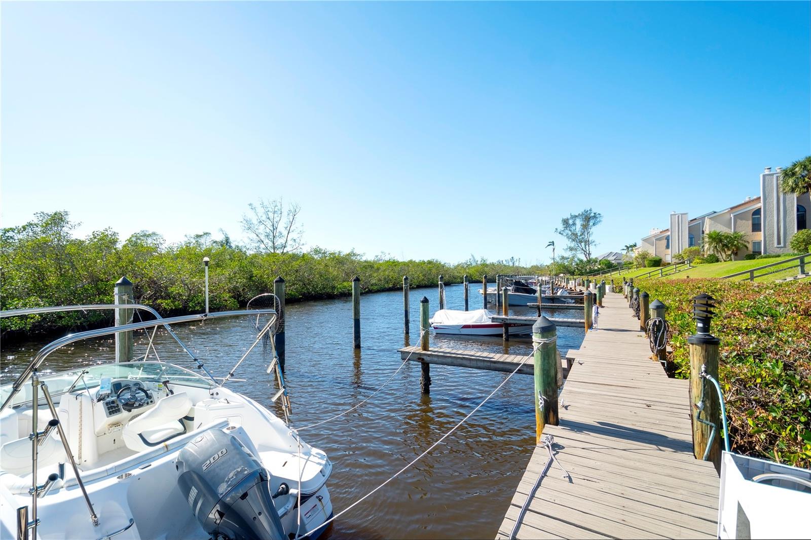 Discover one of Manatee County’s best-kept waterfront secrets—Bay Hollow, a charming and intimate condo community with only 40 units. Nestled along a protected inlet on Sarasota Bay, this serene retreat offers direct access to the Intracoastal Waterway and the Gulf of Mexico, complete with your own covered parking spot and private dock that can accommodate a sailboat. This beautifully remodeled 2-bedroom, 2-bathroom first-floor condo is a true gem. Featuring brand new wood-like tile flooring throughout, the open-concept design is enhanced by architectural details that add character and charm. The updated eat-in kitchen boasts white shaker cabinetry, stone countertops, a tiled backsplash, pull-out pantry, and a built-in seating area with storage. Enjoy peaceful waterfront views and morning coffee in your sunroom or unwind in the sunken living room next to the wood-burning fireplace while watching dolphins and manatees play in the inlet. With a brand-new, energy-efficient HVAC system (with a 10-year warranty) and refrigerator, you’ll have peace of mind, knowing the unit is both comfortable and reliable. This unit remained high and dry during recent storms—no flooding here! The remodeled bathrooms feature stylish new cabinetry and ample storage, making this home as functional as it is beautiful. A screened porch offers the perfect spot to relax with a glass of wine while enjoying the sights and sounds of the water. Watch fish jump, take in the vibrant sunset, and enjoy the serenity that this waterfront condo has to offer. Bay Hollow is an active, well-maintained community with FULLY FUNDED RESERVES and affordable monthly fees that include internet, cable, trash, water, and pest control. Residents can also enjoy the heated community pool after a day on the water. Only 1.5 miles to the beach, this location offers the best of both worlds—convenience to local shops, the iconic Cortez Fishing Village, and some of the best seafood around, all while offering direct access to world-class boating and fishing. Make this tranquil, waterfront condo your new paradise—boating, fishing, and sunsets await!