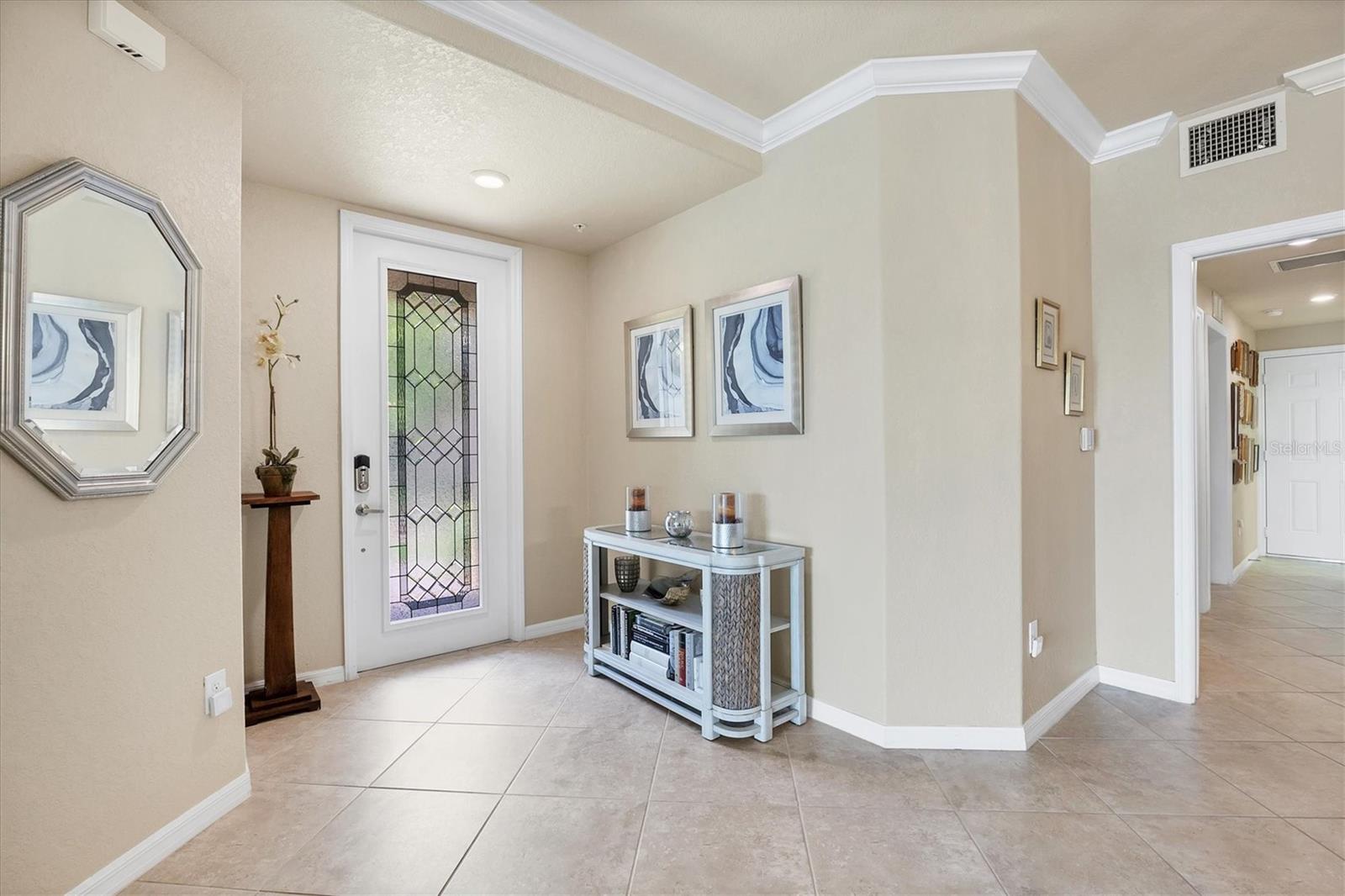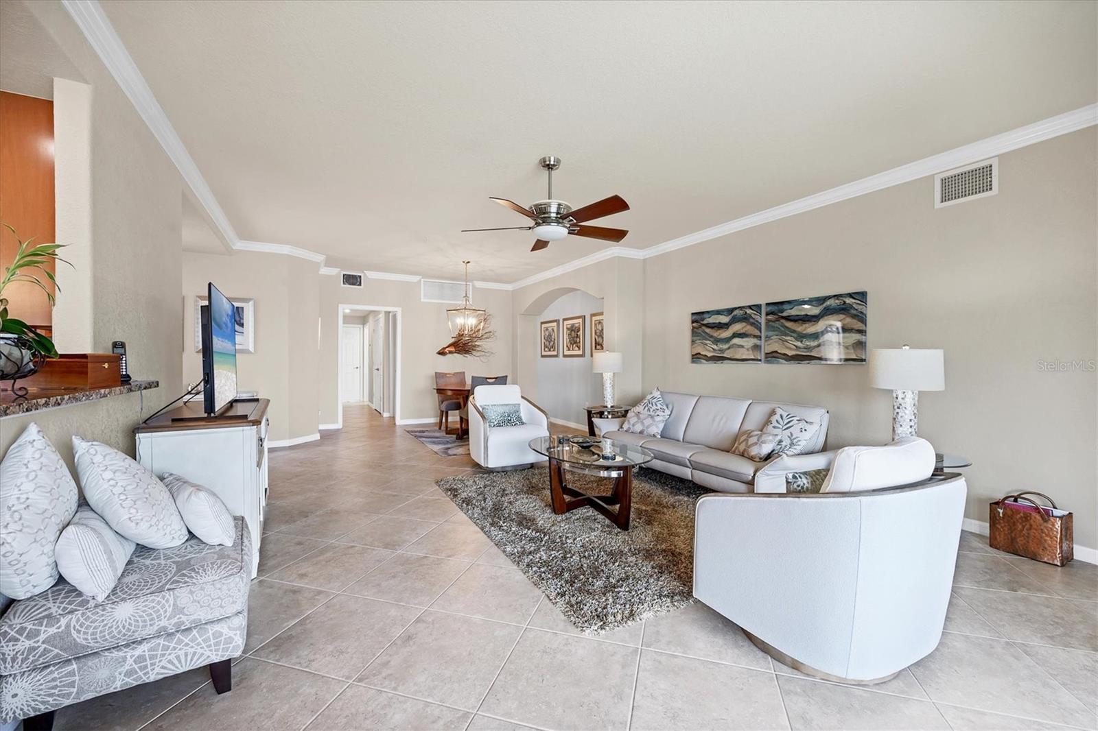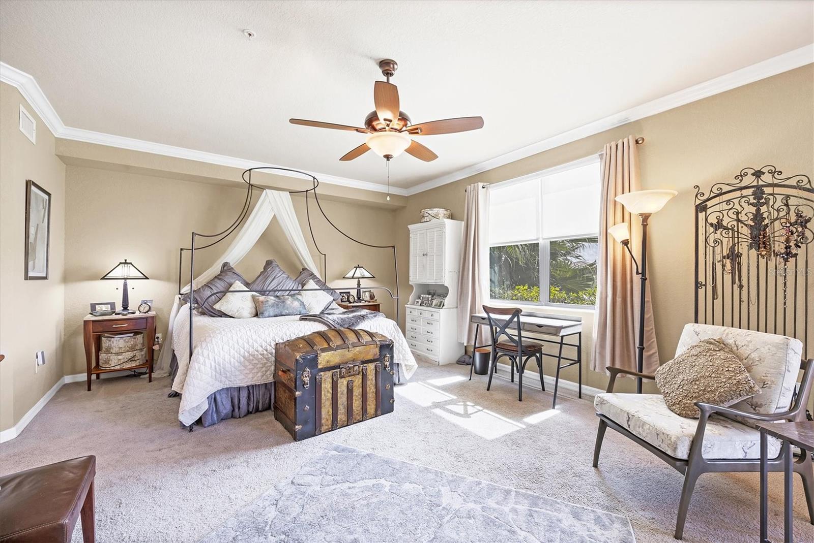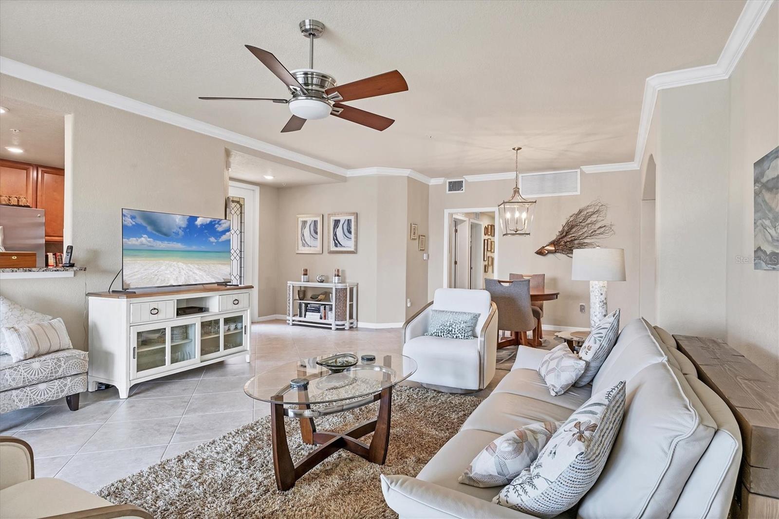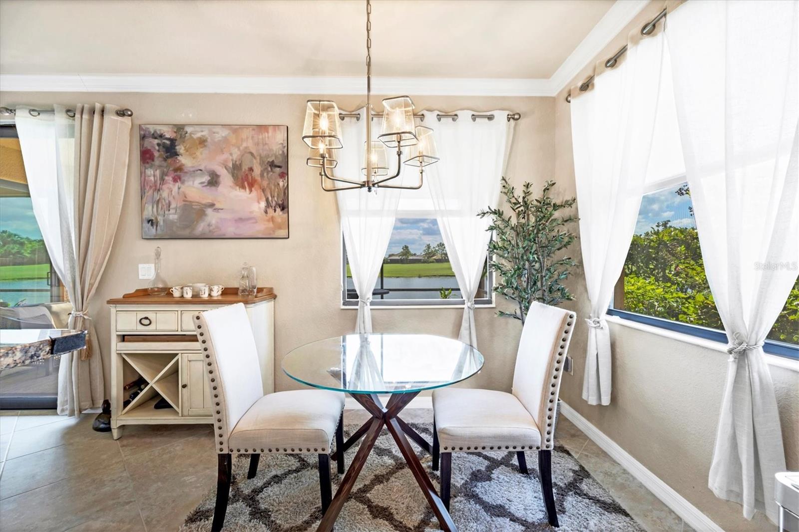 Are you ready for your perfect winter escape or full-time residence in a resort setting? This beautiful one-level Coach Home lives like a single-family home and includes a 2-car attached garage. Ideally positioned in exclusive River Strand Golf & Country Club, the home offers breathtaking water and golf course views from all main living areas and the primary bedroom. Enjoy iconic Florida sunsets from the spacious covered, screened, and furnished lanai, where you can dine in color-saturated comfort while watching the sky and its soft reflections dance across the lake. Inside, the home provides a fresh, neutral backdrop with newly custom-painted ceilings and walls in soft Alabaster, using high-quality Sherwin-Williams SuperPaint (photos were taken prior to repainting), allowing you to decorate and personalize with ease. One guest bedroom comes fully furnished, ready to welcome friends and family. The second bedroom features a wall of beautiful built-in shelving, making it ideal as a cozy home office or den, and it includes a closet should it be needed as a bedroom. The primary suite is a luxurious sanctuary, offering space, light, and serene water and golf views. You’ll love the two walk-in closets with custom creative organization, providing room for all garments and accessories. Be sure to notice the full-length mirror that doubles as a hidden storage door—a thoughtful and unique touch. Additional highlights include added cabinetry in the laundry room, custom shades and neutral window treatments throughout. Best of all, two major big-ticket items have already been replaced: the A/C and water heater, both just over a year old. River Strand Golf & Country Club is renowned for its exceptional amenities, and the exciting $8 million renovation of the main clubhouse, restaurant, and Tiki Bar area is nearly complete. A Social Membership is included with the purchase, granting full access to resort-style pools, the newly updated clubhouse, Tiki Terrace, fitness rooms and classes, tennis, popular pickleball, and a full calendar of social activities from trivia to live music—there truly is something for everyone. For many buyers, Social Membership is a very smart choice, offering the ability to play golf without priority while enjoying significant savings: approximately $520 per quarter in ongoing fees and $2,768 in reduced capital contribution and transfer fees at closing. River Strand is a beautifully maintained community in a highly convenient location with easy access to I-75 and just minutes to Lakewood Ranch, Sarasota, the Gulf beaches, St. Petersburg, and Tampa. Even better, Costco, Aldi, Target, medical services, and numerous shopping and dining options—including Seasons 52—are all located within Heritage Harbour and under 10 minutes away, with no major roads required. This home offers the perfect balance of peaceful living and everyday convenience. When you’re done waiting, schedule your appointment to see this beautiful abode—ready for your next chapter and sunshine-filled adventures.