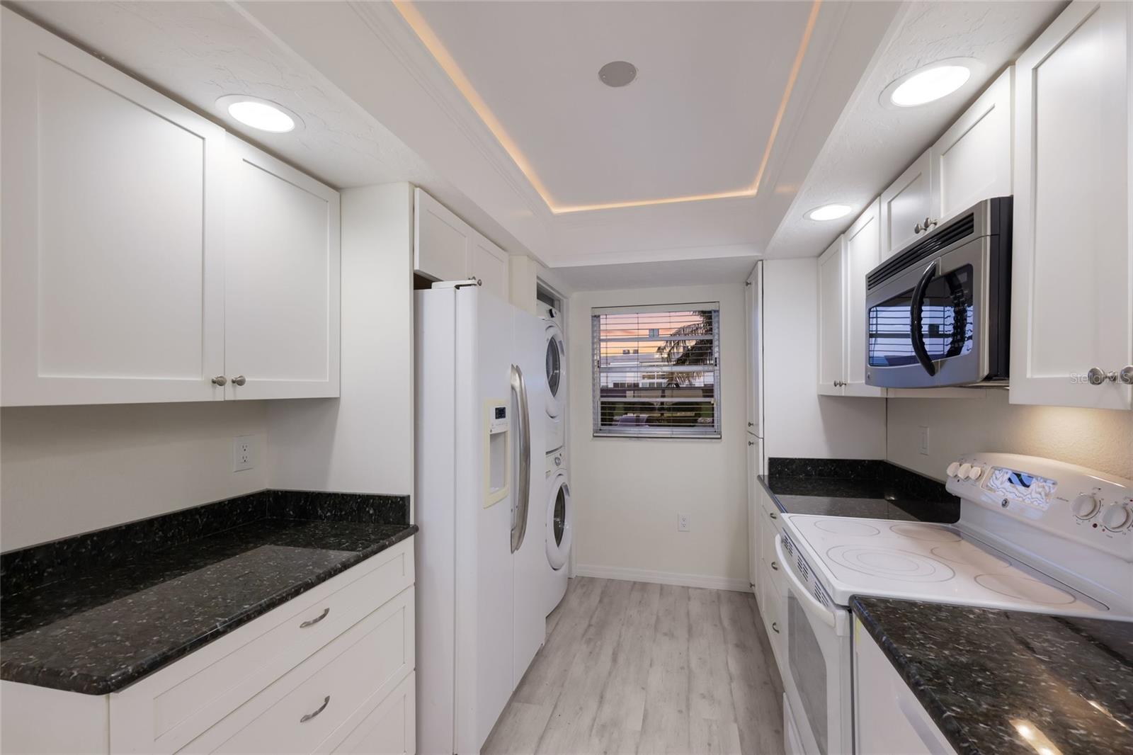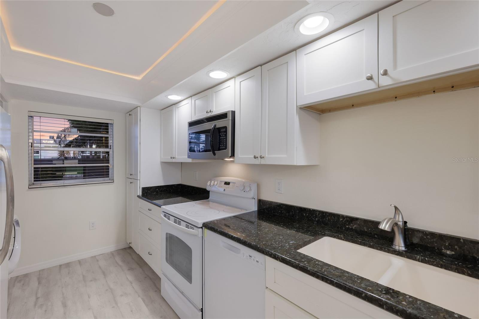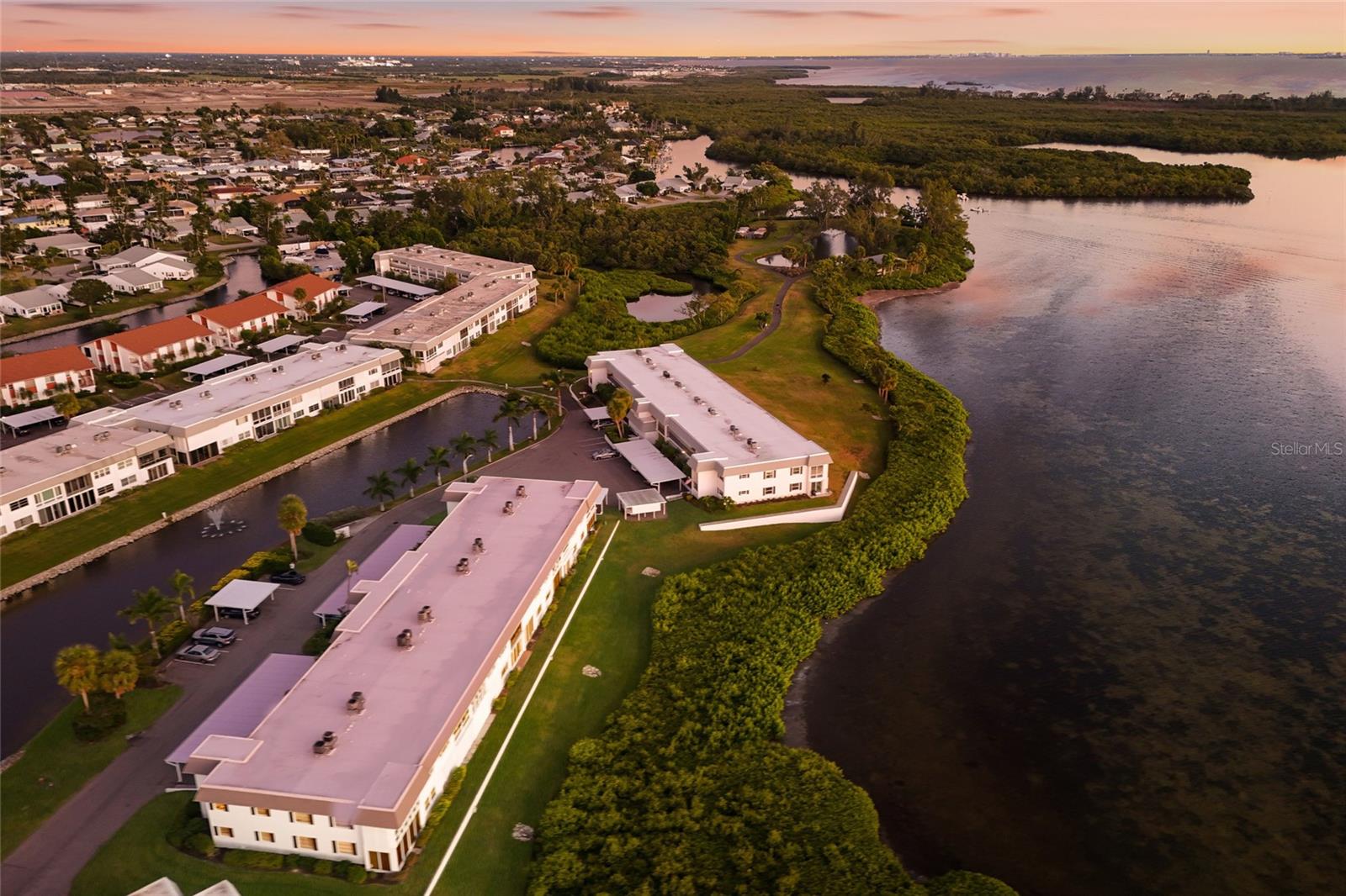 Welcome to Mount Vernon, a well-established 55 and over waterfront community consisting of condominiums, town homes, and single-family homes. The condominium you are looking at is located on the banks the intercoastal overlooking Sarasota Bay. The building is elevated to have been untouched during the hurricanes of 2024. The home has a panoramic view to the southwest from the wall-to-wall patio doors giving you fabulous sunsets most of the year. The same view is visible from the primary bedroom. The condominium consists of two bedrooms, two bathrooms, and a large open floor plan that spans nearly the entire length of the condominium. The original Florida room was opened to the home sometime in the past and is air conditioned. The kitchen overlooks the living area with a large granite countertop separating them. There are new vanities, sinks, plumbing fixtures and toilets in both bathrooms. The water heater, garbage disposal and dishwasher were replaced in 2025. The existing refrigerator works. However, seller will provide a credit at closing for a replacement. The condominium has been refreshed and is ready for your up-to-date personal touches. Your assigned parking space is right in front of your front door. The community is golf-cart friendly and has no upcoming assessments There is a community building with a gathering room with weekly activities, a pool, pickle ball courts, shuffleboard court and walking and bike paths. This is a perfect snowbird community. It is just what you need to get away from winter and enjoy living in paradise. Did I forget to say that you are about two miles from the gorgeous beaches of Anna Maria Island and short drive to shopping, restaurants, hospitals, and Sarasota Airport.