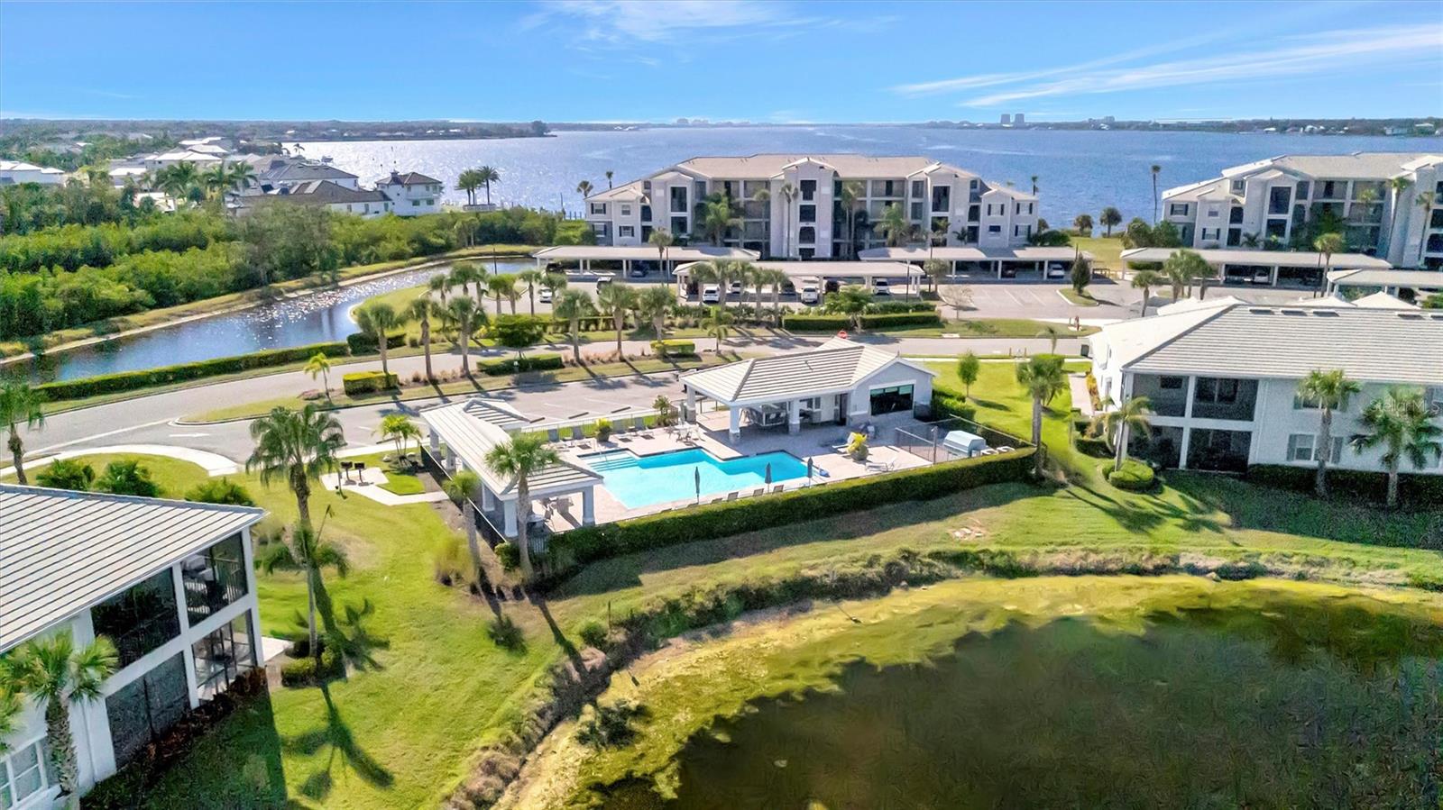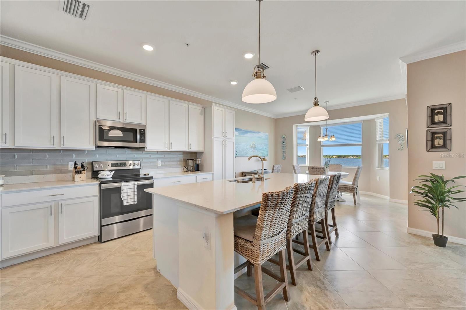 Enjoy nightly sunsets, watch boats drift by, and spot dolphins swimming—all from your window or private balcony. Tidewater Preserve is one of Bradenton’s most sought-after riverfront boating communities along the scenic Manatee River! This 4th-floor, fully furnished 2-bedroom, 2-bath penthouse condo—accessible by elevator or stairs—features hurricane impact windows and offers breathtaking panoramic water views. The kitchen showcases quartz countertops, stainless steel appliances, and ample cabinet space. The primary suite includes a walk-in closet, wall-mounted TV, and an en-suite bath. Tile flooring flows through the kitchen, living, and dining areas, with plush carpet in the bedrooms for added comfort. Additional conveniences include central A/C, an in-unit washer and dryer, a covered parking space, and a private storage unit—where beach chairs, an umbrella, and a cooler are ready and waiting for your next waterfront adventure. Experience resort-style living with amenities that include a marina, three sparkling pools, two fitness centers, a clubhouse, tennis courts, a dog park, and scenic riverfront walking trails. Launch a kayak directly into the river or explore the option to secure a boat slip at the marina. Tidewater Preserve is a 24-hour guard-gated community, providing peace of mind and a true lock-and-leave lifestyle.