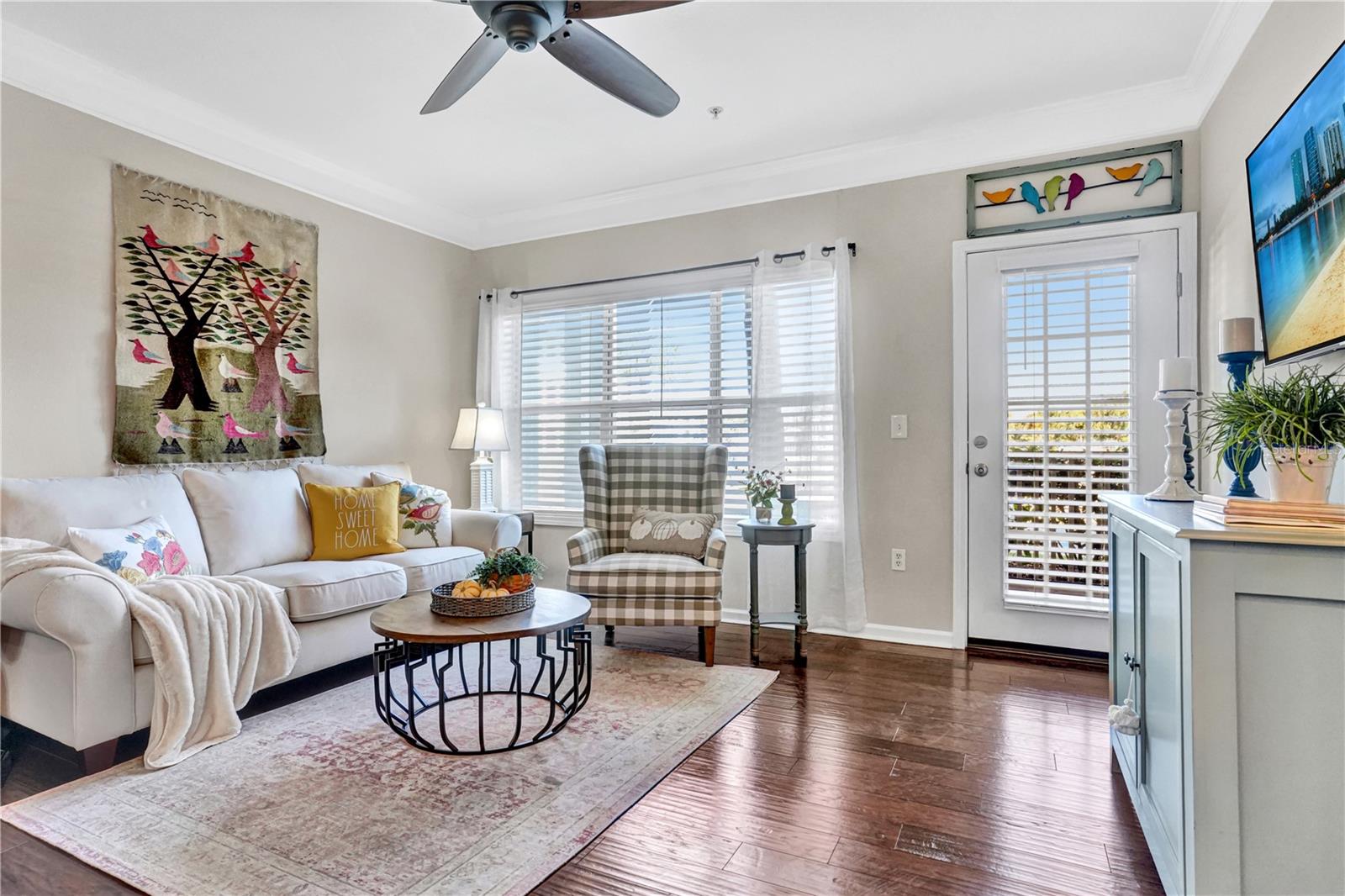 Welcome to this beautifully updated 1-bedroom, 1-bathroom condo located in the desirable Palms of Cortez community in Bradenton. Offering 750 square feet of living space and built in 2002, this ground-floor unit has been meticulously maintained and thoughtfully upgraded throughout. Step inside to find hand-scraped hardwood flooring that has been recently re-polished, soft-close kitchen cabinets, and a new Samsung washer and dryer set purchased in 2025 ($3,000 value) with a 5-year warranty. The home features fresh interior paint, updated trim, doors, and hardware, and a modern pot rack for added functionality. Additional upgrades include new heavy-duty screens installed within the last six months, a newer hot water heater just 1.5 years old, and regular A/C maintenance performed every six months. The bathroom has been re-caulked, with upgraded plumbing for added peace of mind. Enjoy the outdoors on your freshly painted concrete patio, surrounded by mature landscaping and close proximity to all the community amenities. The Palms of Cortez offers resort-style living with a gated entry, resurfaced pickleball and tennis courts, a community car wash, remodeled clubhouse, fitness center, pool, and an all-new security system. Monthly fees are approximately $288 and may vary slightly. This unit includes two FOBs and two keys, a new shelving pantry, keyless entry system, and no special assessments. The property was taken down to the studs during renovation, with bathroom plumbing fully upgraded. Conveniently located close to shopping, dining, beaches, and entertainment, this condo offers the perfect combination of comfort, convenience, and peace of mind—ideal for a full-time residence or seasonal retreat.