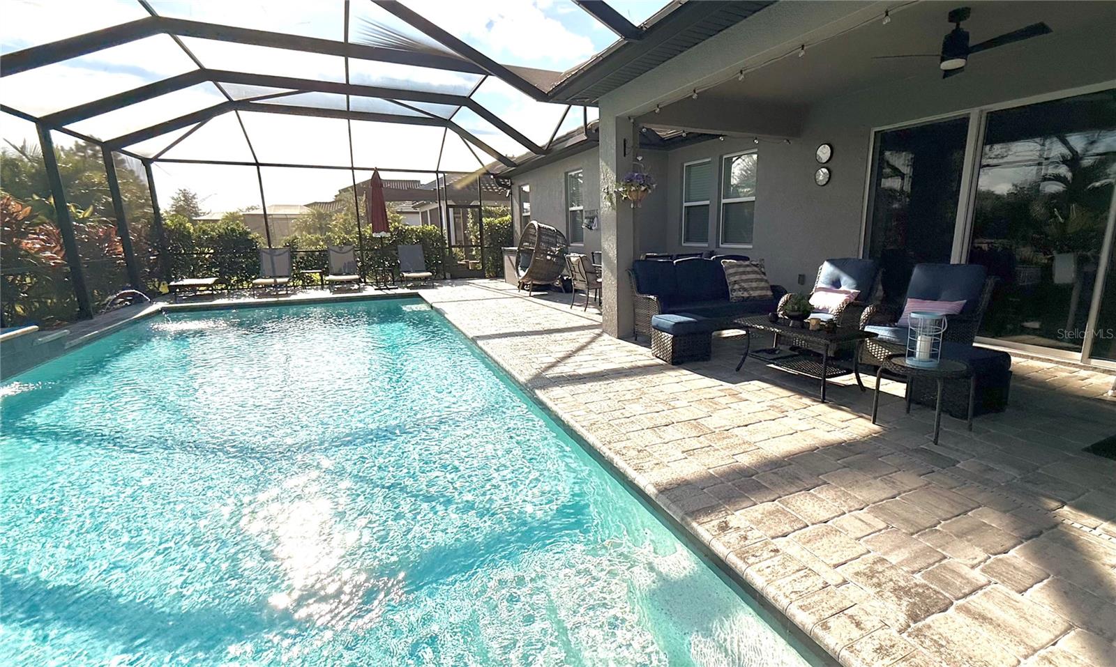 Discover this stunning 5-bedroom, 4-bath home with oversized 3-car garage in the Lakewood Ranch gated community of Woodleaf Hammock. The open-concept design features tray ceilings, recessed lighting, and abundant natural light, creating an inviting atmosphere throughout. The chef’s kitchen impresses with quartz countertops, GE Profile stainless appliances, a gas range, and custom cabinetry with pull-out drawers. Enjoy Florida living at its best on the screened lanai with a heated saltwater pool, and LED lighting—perfect for entertaining or unwinding. The first-floor primary suite offers a spa-like bath with dual vanities, a garden tub, and a walk-in shower. Upstairs, find additional bedrooms, full baths, and a versatile bonus room with built-in cabinets and desk area ideal for a home office, game room or media space. Located in a low-HOA, resort-style community featuring a pool w/ outdoor grill area, pickleball courts, playground, and dog park—just minutes from; Costco, Gyms, Parks/Trails, Restaurants, Shopping, etc. Just a few exits from UTC Shopping & Dining, Mote Aquarium, Beaches, and SRQ Airport. Luxury, location, and lifestyle—all in one incredible Lakewood Ranch home.