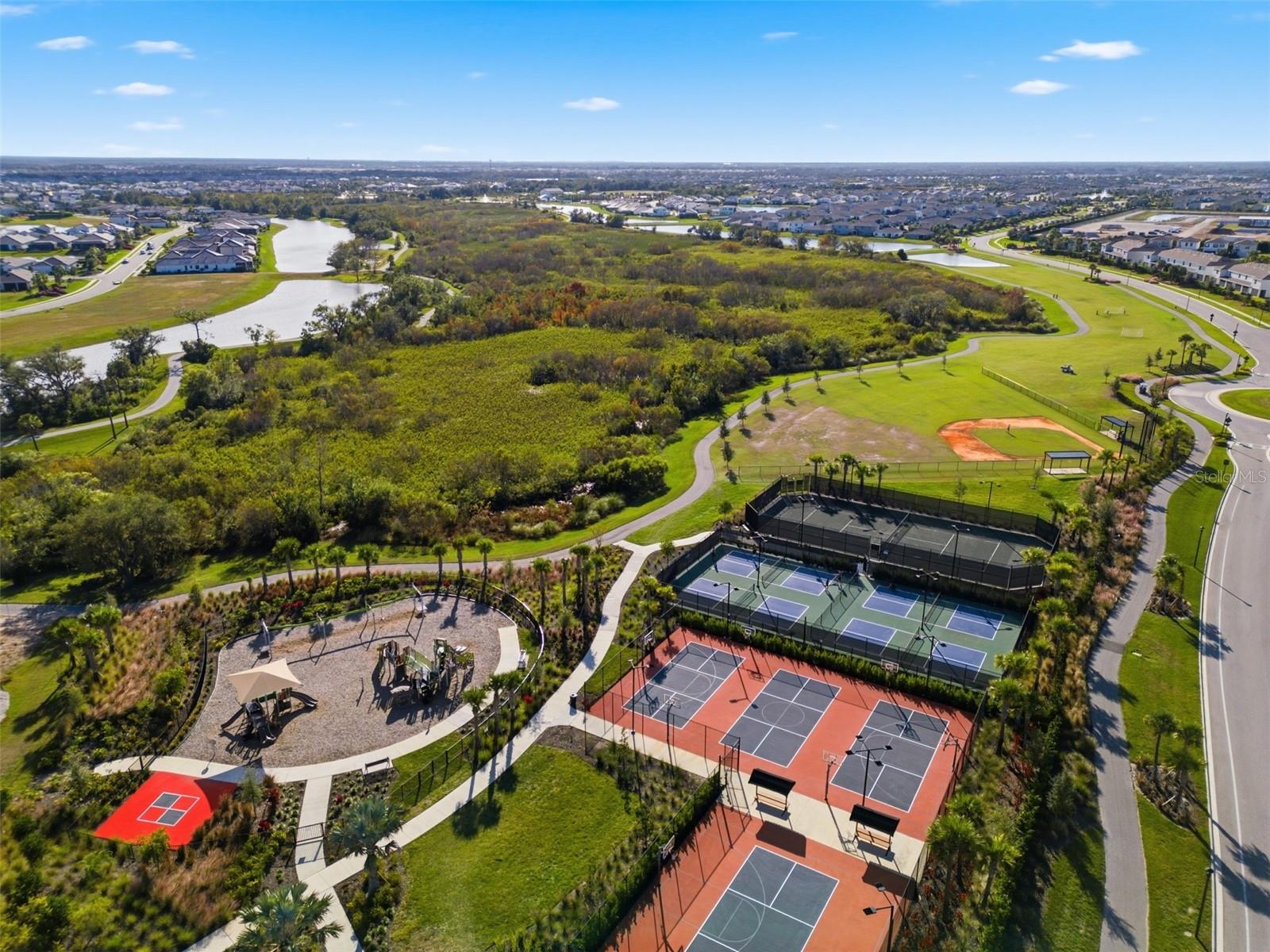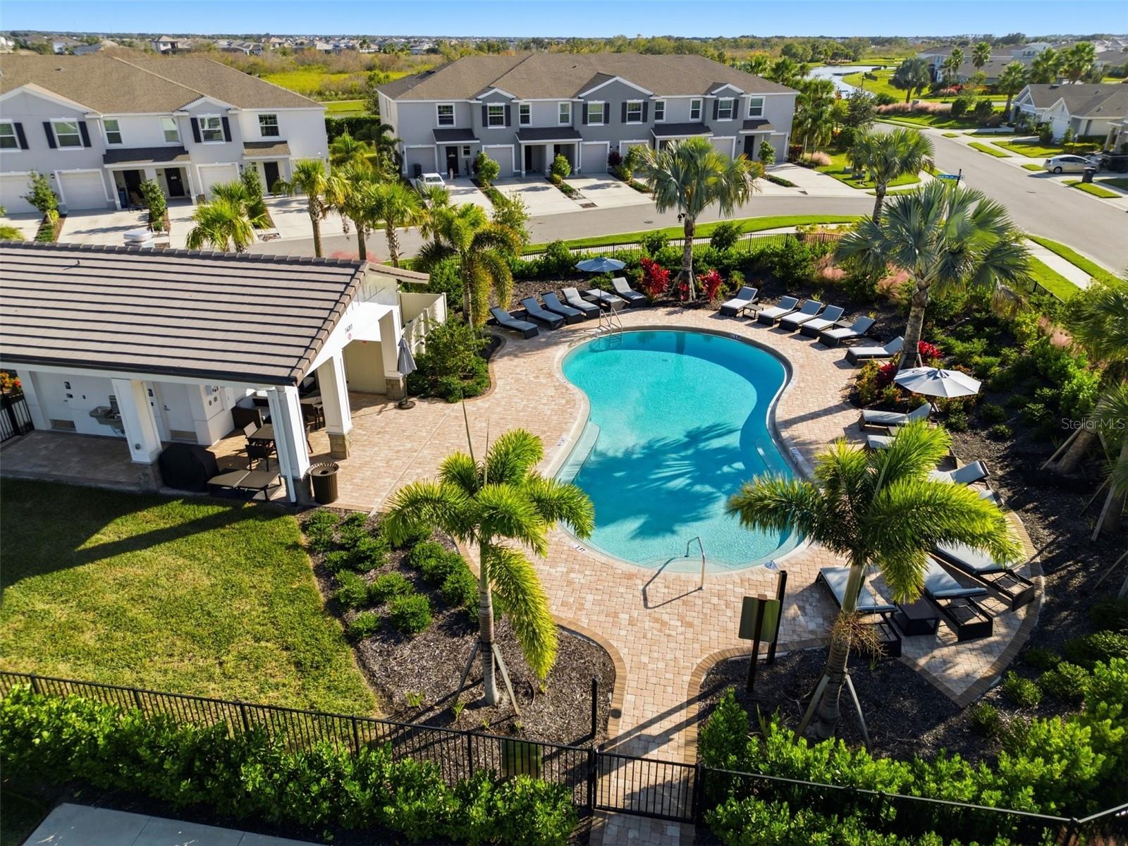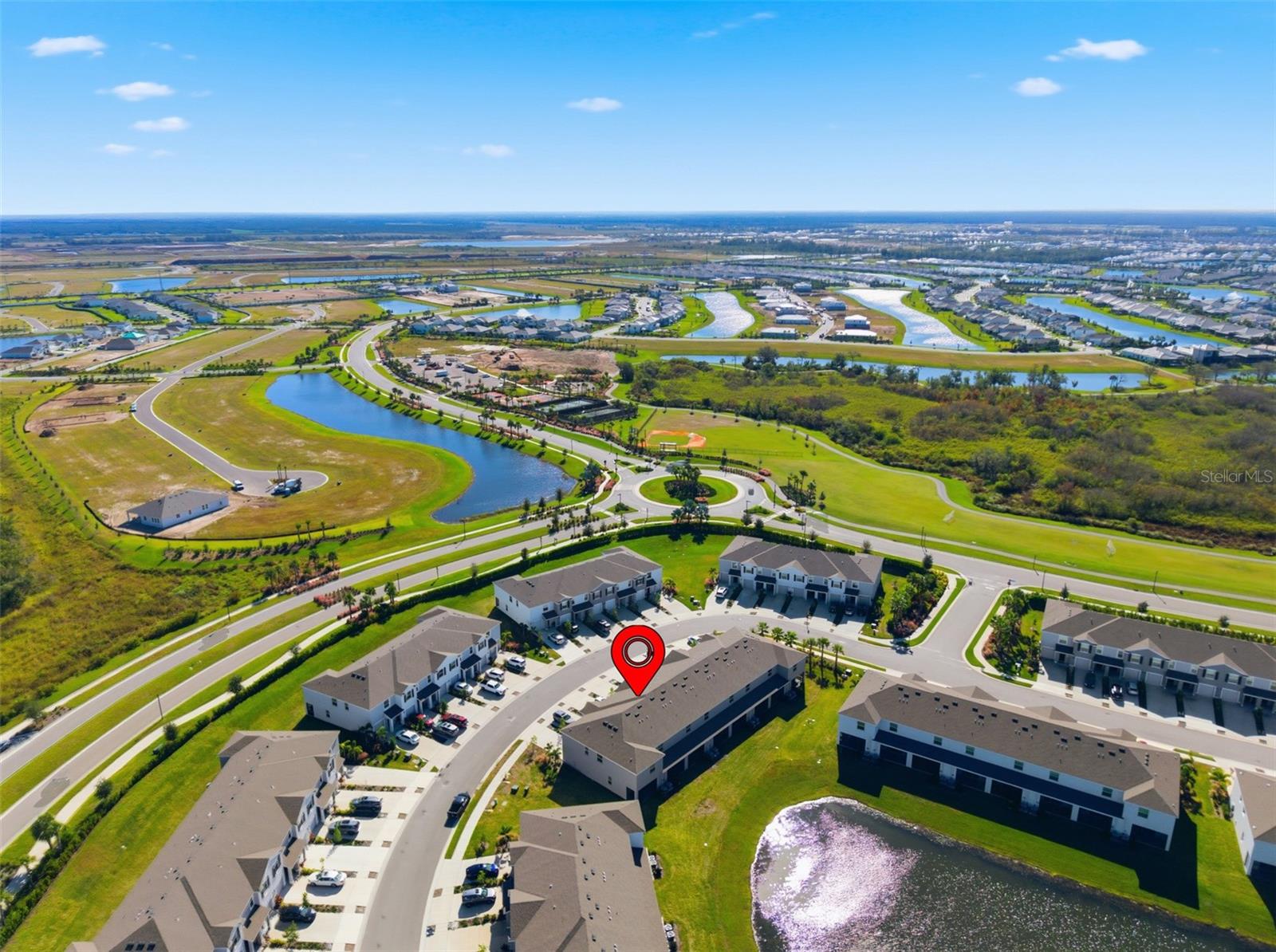 THIS PROPERTY QUALIFIES FOR A 1% LENDER INCENTIVE IF USING OUR PREFERRED LENDER! Practically Brand New Townhome in sought out Star Farms with Rich Resort-Style Amenities and maintenance free living! Both floors are concrete BLOCK construction. Welcome to this stunning 3-bedroom, 2.5-bath townhome offering modern design, open-concept living, and serene lake views. Enjoy granite countertops throughout, sleek finishes, and a bright, spacious layout perfect for entertaining or relaxing. Additional features include storage under the stairs and a screened lanai overlooking a lush green backyard—ideal for pets, gatherings, or peaceful sunset views. Upstairs, the primary suite features two walk-in closets and a spa-like bath with dual vanities and a walk-in shower. The two guest bedrooms with unique layouts for added privacy and share a beautifully finished full bath. This home also includes a 1-car garage with an extended 2-car driveway, accommodating up to four vehicles—a rare find! Located in the sought-after Star Farms community, residents enjoy resort-style living with 3 sparkling pools, multiple fitness centers, a café, tiki bar, full-service restaurant, pickleball and tennis courts, basketball and volleyball courts, playgrounds, parks, and dog parks. Whether you’re sipping coffee by the lake or dining poolside with friends, this exceptional townhome offers the perfect blend of comfort, convenience, and luxury living.
