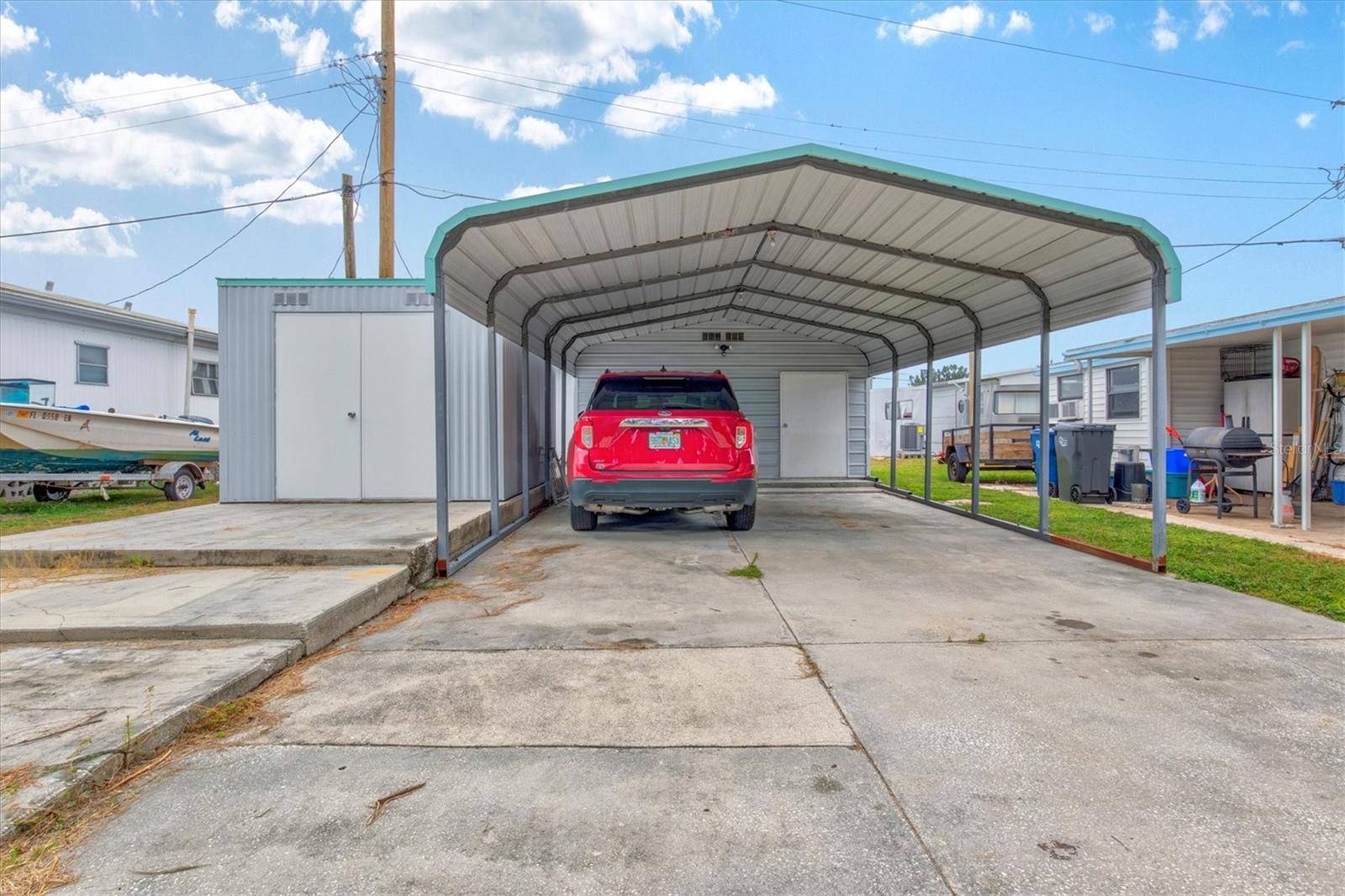 This adorable and charming home, situated on a rare front-to-back double lot, offers the perfect combination of comfort, flexibility, and fun! Located in the welcoming community of Sunny Shores, this property stands out for its affordability and freedom — with no HOA, no lot rent, no age restrictions, no rental restrictions and no deed restrictions. The home has been completely remodeled and is ready for immediate move-in, featuring 2 bedrooms and 2 bath, plus an additional bonus space that could easily serve as a third bedroom, office, or flex room. Bright, inviting interiors create a cozy atmosphere you’ll love coming home to. Outside, the second lot offers even more possibilities — it includes a spacious workshop/storage building and an oversized carport, perfect for your cars, boats, or recreational toys. You could even subdivide and sell the extra lot for added value! Whether you’re seeking a year-round residence, a seasonal getaway, or a savvy investment property, this home fits the bill. With no rental restrictions, nightly rentals are allowed, giving you full flexibility for income potential. Sunny shores stands out as it offers everyone affordability with no HOA, deed restrictions, or rental restrictions! Bring your furry friends without hesitation. Located just minutes from beautiful Gulf beaches, shopping, and dining, this home offers the best of Florida living — relaxed, affordable, and full of possibilities.