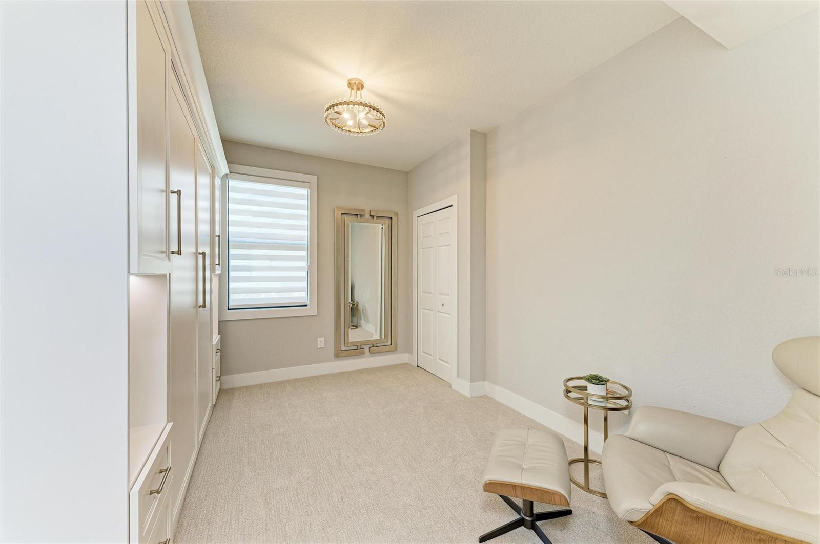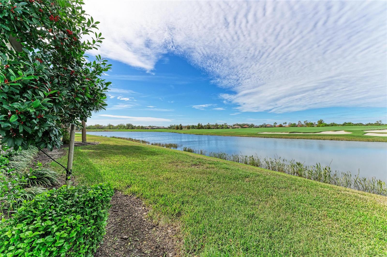 Welcome to 5916 Wake Forest Run #104, a first-floor residence in the gated, maintenance-free community of Lakewood National Golf Club in Lakewood Ranch. This impeccably designed home offers 1,786 square feet of sophisticated living space with three bedrooms, two full baths and a two-car garage. Crafted with precision and curated with high-end finishes, the residence surpasses model-home quality with its refined aesthetic and custom interior enhancements. The open-concept kitchen is a standout, featuring natural gas cooking, stainless steel appliances and quartz countertops with a waterfall-edge island. Custom-built pantry shelving, new cabinet hardware, and dramatic lighting create a culinary space that is functional and striking. The entry, dining and living areas showcase shiplap detailing, while the dining room includes a custom feature wall with built-in lighting, grass cloth wallpaper and integrated storage. The spacious primary bedroom accommodates a king-sized bed and includes dual closets, a Murphy bed that converts to a desk and custom shades. The en-suite bath offers a large step-in shower, coastal grass cloth wallpaper, upgraded vanity mirrors and new fixtures. Two additional bedrooms include custom closets and newer carpet, with one offering a built-in queen Murphy bed with cabinetry and additional storage. The guest bath is equipped with a bidet and a shower-over-tub configuration. Additional interior highlights include newer front-load washer and dryer, a folding counter with overhead storage, and consistent designer lighting and fixtures throughout. The garage features an upgraded epoxy floor, a Kinetico Premier water softener and a tankless water heater. The west-facing lanai is a showpiece, featuring a tongue-and-groove wood ceiling, dual ceiling fans, a custom-painted floor, and unobstructed views of the 18th hole on the Arnold Palmer-designed Commander Course. Enjoy sunsets, morning coffee, or a glass of wine while overlooking one of Florida’s acclaimed golf courses. Recognized by Golf Advisor as Florida’s top-ranked course and listed No. 1 in multiple national categories, the Commander Course elevates the home’s lifestyle appeal for golf enthusiasts and investors alike. Enjoy maintenance-free living at Lakewood National Golf Club with extraordinary amenities that include a zero-entry heated pool with cascading waterfalls and lap lanes, poolside tiki bar and café, fitness center with group exercise classes, an on-site full-service spa, eight lighted Har-Tru tennis courts, bocce, pickleball, several satellite pools, and a stunning 28,000-square-foot clubhouse which offers fine and casual dining, an expansive bar and lounge, men’s and ladies lounges and locker rooms, conference and meeting space, a full-time lifestyle director who keeps residents’ social life fun and active with trivia night, karaoke night, live concerts on the green, extravagant holiday parties, wine-tasting dinners and more. Lakewood National Golf Club hosts the annual Korn Ferry Tour’s LECOM Suncoast Classic. Lakewood National offers a vibrant, amenity-rich lifestyle, making this residence ideal as a primary home, seasonal retreat or potential income-producing asset. Schedule your private showing today.