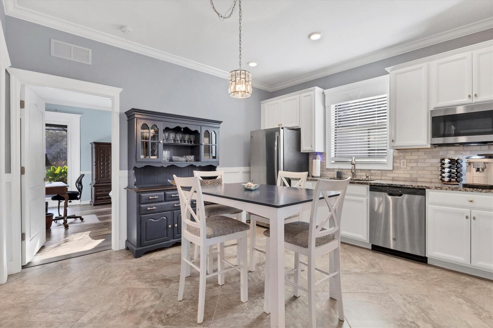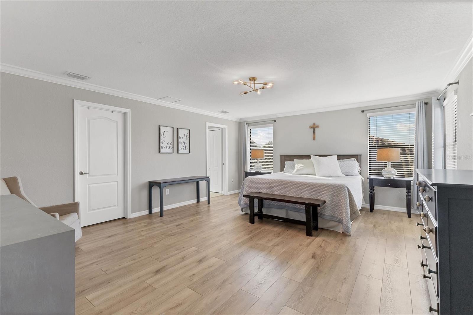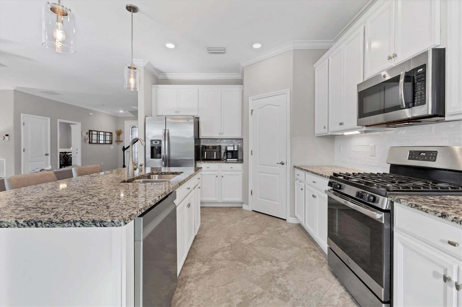 Welcome to this expansive and versatile over 3,900-square-foot residence in the highly desirable, solar-powered community of Polo Run. Thoughtfully designed for modern living, this six-bedroom, four-and-a-half-bath Lennar Next Gen® Liberation model offers a completely private multigeneration suite perfect for in-laws, college-aged children, or anyone seeking independence. As you approach the home, the paver driveway and lush tropical landscaping maintained by the HOA create a warm and welcoming first impression. Step inside to an inviting open-concept living area that seamlessly connects the formal dining room, great room and a bright eat-in kitchen. The kitchen boasts white cabinetry, a stylish shiplap island, granite countertops, stainless steel appliances and a spacious walk-in pantry. Sliding doors from the great room lead to the oversized, covered lanai, perfect for dining, entertaining, or simply enjoying peaceful preserve views with no neighbors in sight. Upstairs, a generous multipurpose loft anchors the second floor, surrounded by five bedrooms. The owner’s suite offers a relaxing retreat with a large walk-in closet and spa-like en-suite bath featuring dual sinks, a soaking tub and a walk-in shower. Four additional bedrooms provide endless flexibility for guest rooms, offices, fitness space or playrooms. The second floor also includes two full baths and a conveniently placed laundry room. A standout feature of this home is the Lennar Next Gen® model design, offering a completely private multigenerational suite with its own separate entrance, single garage, living room, kitchenette, bedroom, full bath, walk-in closet, washer and dryer, and sophisticated upgrades like crown molding, window molding, chair rail and wainscoting. Both the main home and the Next Gen® suite enjoy direct access to the lanai, where a large, covered area with built-in bar invites year-round outdoor living. Additional highlights include solar panels for energy efficiency, hurricane shutters, and a tankless water heater for added comfort and peace of mind. Residents of Polo Run enjoy a vibrant, maintenance-free lifestyle with resort-style amenities, including a clubhouse, resort pool, fitness center, bocce ball, tennis, pickleball and basketball courts. The community also features a dog park, playground and an active social calendar filled with classes, events and activities. With convenient proximity to shopping, dining, A-rated schools and quick access to I-75, this home offers the perfect blend of luxury, location and sustainability. Don’t miss your opportunity to live beautifully and independently in one of Lakewood Ranch’s premier communities!