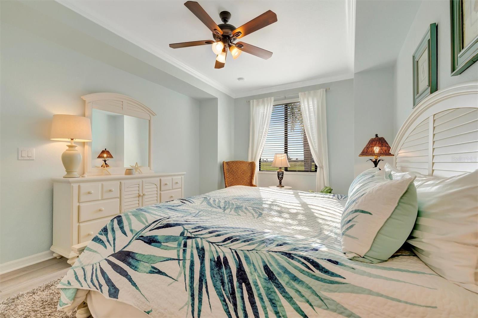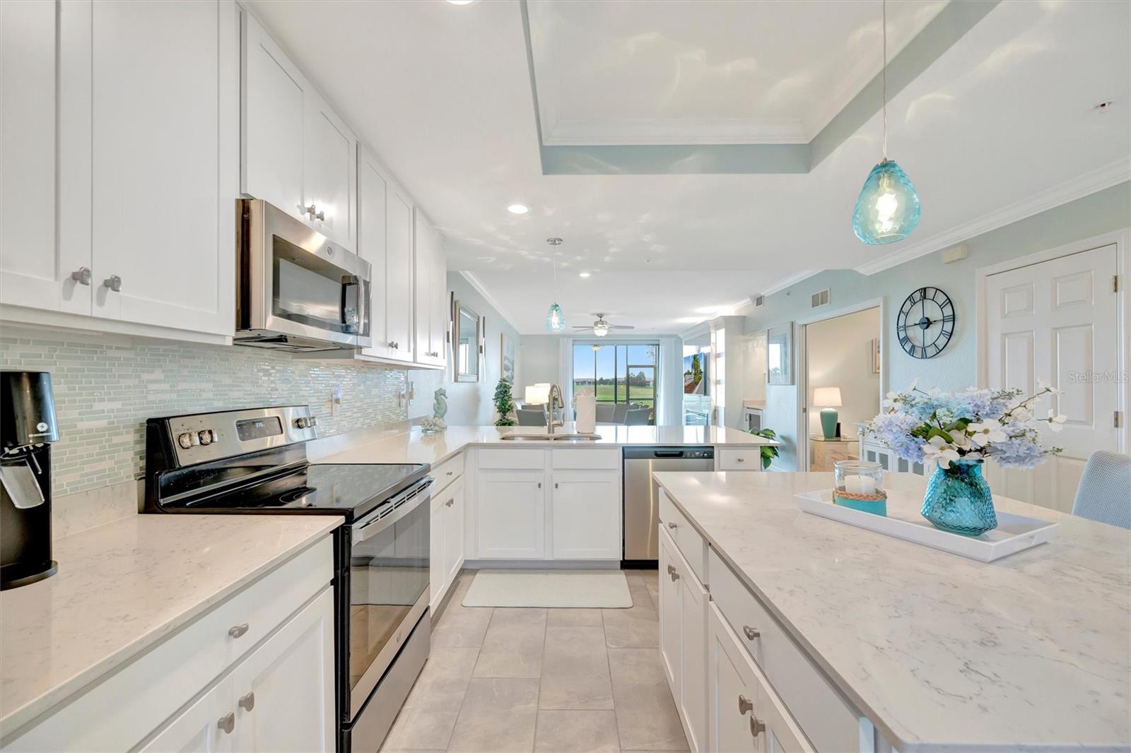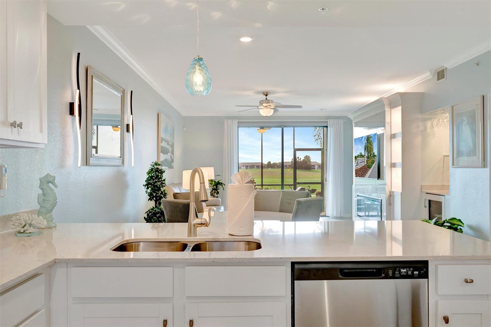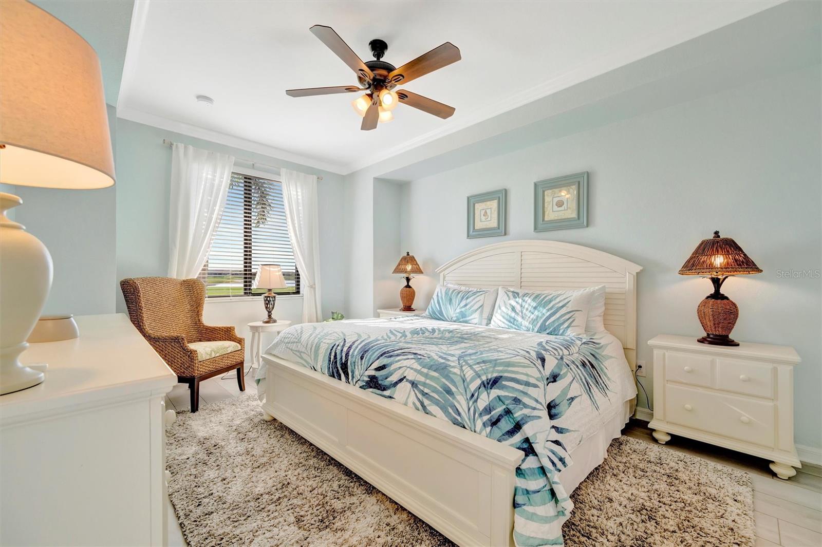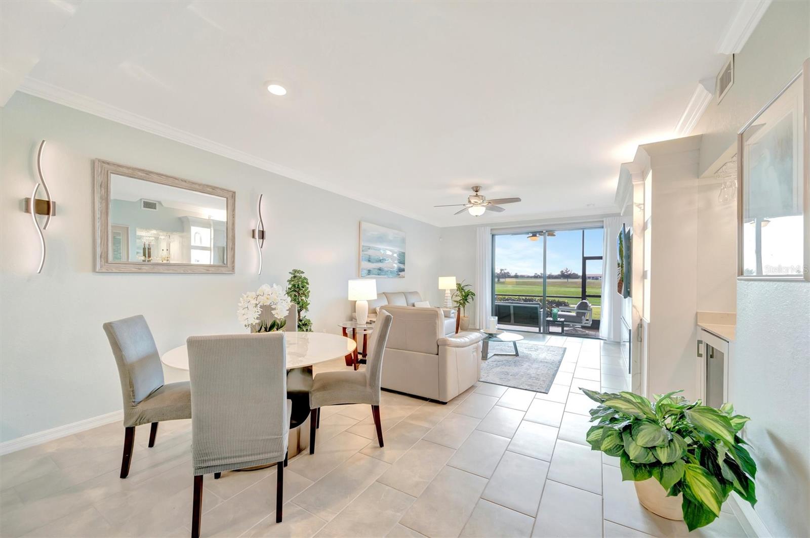 This exquisite home in the prestigious Lakewood National Golf community is a true gem, featuring a wealth of luxurious upgrades that enhance its charm and functionality. Step inside to find stunning luxury vinyl plank flooring that flows seamlessly through the spacious bedrooms, and the den,which can also be used as another bedroom. In the master bathroom, indulge in a spa-like experience with elegant glass shower doors that add a touch of sophistication. Thoughtfully designed custom closets throughout the home offer ample storage, while the striking custom media wall, complete with a cozy electric fireplace, creates an inviting focal point in the living area. Entertain guests effortlessly in the wet bar area, which comes equipped with a specialty refrigerator, perfect for keeping your favorite drinks cool. The kitchen dazzles with custom lighting that illuminates the space beautifully, complemented by fresh, custom paint throughout the home that creates a warm and welcoming ambiance. Enjoy the convenience of motorized shades that provide privacy and control for the large sliders in the kitchen and living area. Finally, the garage features a sleek epoxy-coated floor, adding to the home's overall appeal. Nestled on the 10th hole of the picturesque Piper course, this property offers both luxury and an enviable location for golf enthusiasts,GOLF MEMBERSHIP Included.Enjoy tons of amenities which include;zero entry pool with two waterfalls,tiki bar,fitness center,full service spa,pickleball,tennis,bocce ball and a gorgeous 28,000-square foot clubhouse!